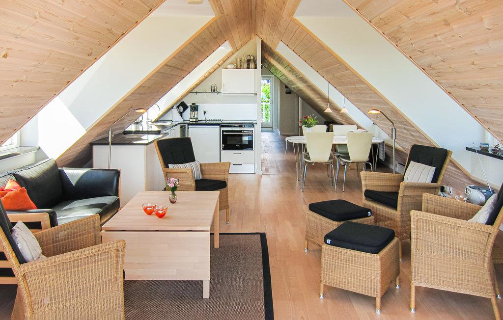 Lejligheden er moderne, rummelig og smagfuldt indrettet. Den store force er havudsigten, som kan ses fra seks kvistvinduer og det store gavlvindue. Læn jer tilbage i havemøblerne på altanen, mens I nyder udsigten til havet.