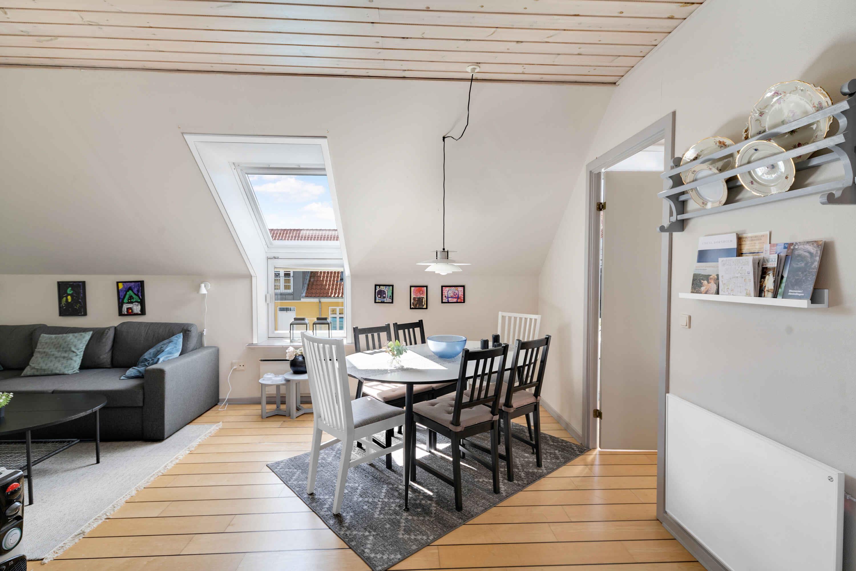Denne charmerende ferielejlighed i Gudhjem er det perfekte sted at tilbringe jeres næste ferie på Bornholm. En flot ferielejlighed i Købmandsgården, hvor I får en høj beliggenhed i hjertet af Gudhjem samt adgang til en fælles udendørspool. I kan se frem til gode faciliteter og en fin rumdeling med to soveværelser og en sovesofa i opholdsrummet. Det ene soveværelse har en dobbeltseng, det andet 2 enkeltsenge og i opholdsrummet venter der som sagt en sovesofa for to. Indretningen byder på hyggelige detaljer, der skaber en afslappende atmosfære i hele lejligheden. I alt plads til 6 personer. Hertil har lejligheden 1 badeværelse. Lejligheden ligger på 1. sal med egen delvist overdækkede træterrasse, hvor der står havemøbler og grill. Der er også adgang til en hyggelig fællesterrasse, hvor I får en ekstra flot udsigt over hav og by. Glæd jer til nogle fantastiske ferieminder. Spis en lækker frokost på røgeriet, besøg det traditionsrige glasværksted eller nyd en stor vaffelis på havnen. I kan også gå en tur op ad de stejle gader og se de smukke, gamle huse. Inden I forlader byen, skal I ikke snyde jer selv for en højtbelagt skive 'Sol over Gudhjem'. Under jeres ophold har I heller ikke langt til Allinge, Svaneke og Hammershus, ligesom I kan tage på en udflugt til Christiansø. Der er også masser af muligheder for vandreture og cykelture i området, og I kan udforske de smukke klippeformationer og skove, der omgiver Gudhjem. Denne charmerende lejlighed er det perfekte udgangspunkt for at udforske dejlige Bornholm og tilbringe en skøn og afslappende ferie ved vandet. Med andre ord en herlig base til jeres Bornholm-ferie, helt centralt i smukke Gudhjem. Obs, udlejes ikke til erhversmæssigt brug.