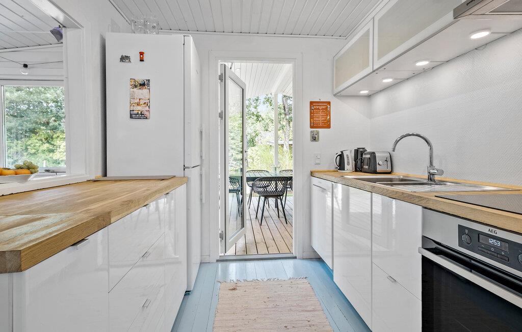 Velkommen til dette dejlige hus, der ligger tæt på Gudmindrup Strand, og hvor I får godt med plads til en ferie med en større flok. Boligen er nemlig opdelt i to bygninger, så I får mulighed for masser af sociale hyggestunder og for at trække jer lidt, når I har lyst til det. Indretningen fremtræder lyst og venligt med gode møbler og faciliteter, der gør det nemt at slappe af og hygge jer med hver jeres feriegøremål. Nogen kan lave god mad i køkkenet, mens andre hygger med en bog i stuen eller puslespil ved spisebordet.