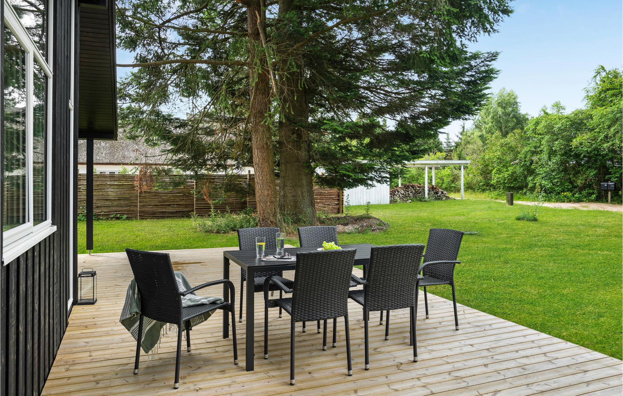 I kan drikke morgenkaffen på den smukke træterrasse til lyden af fuglesang. Her kan I senere sætte jer til rette og nyde aftenstemningen efter en dag med nye indtryk og minder.