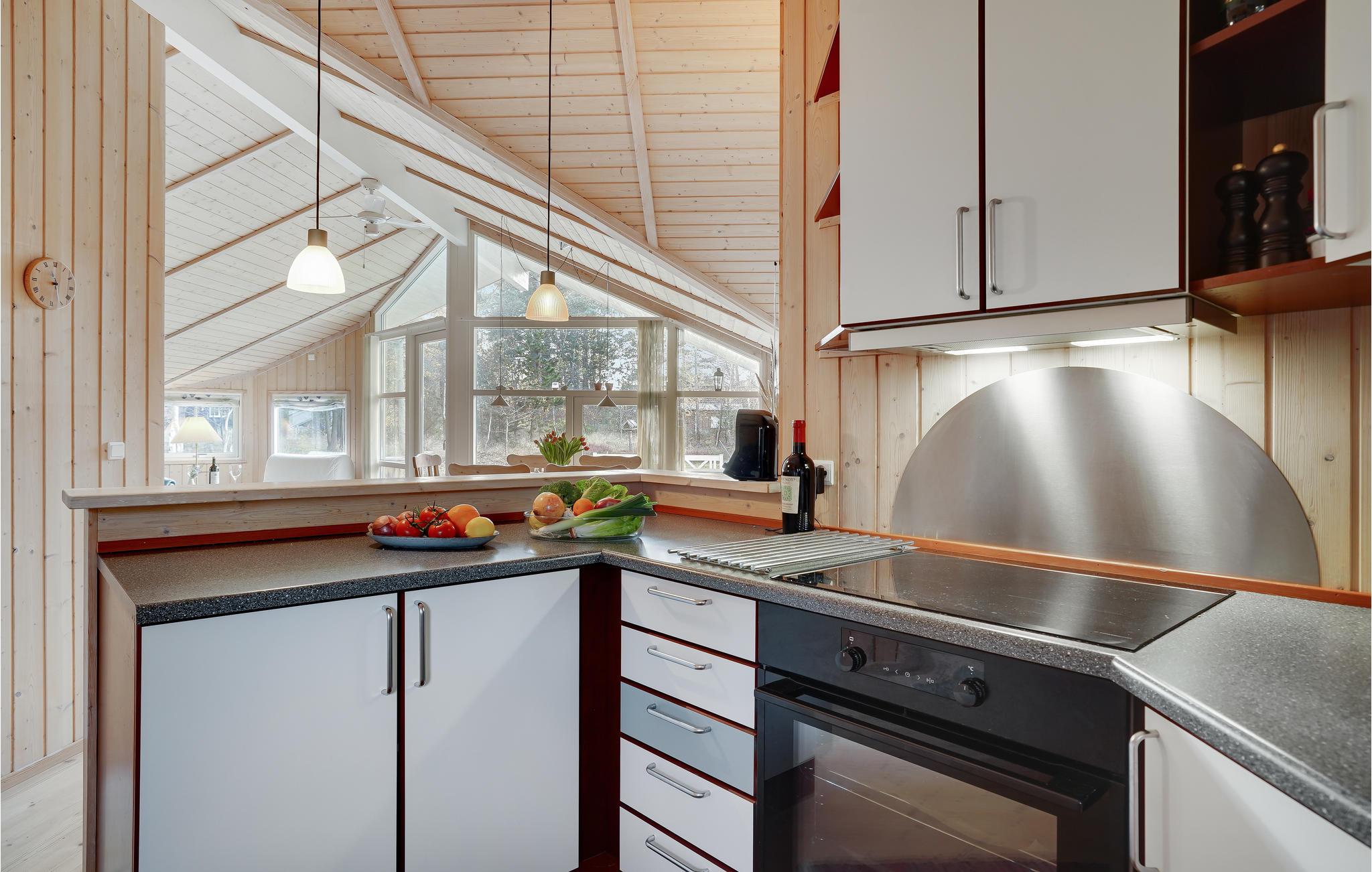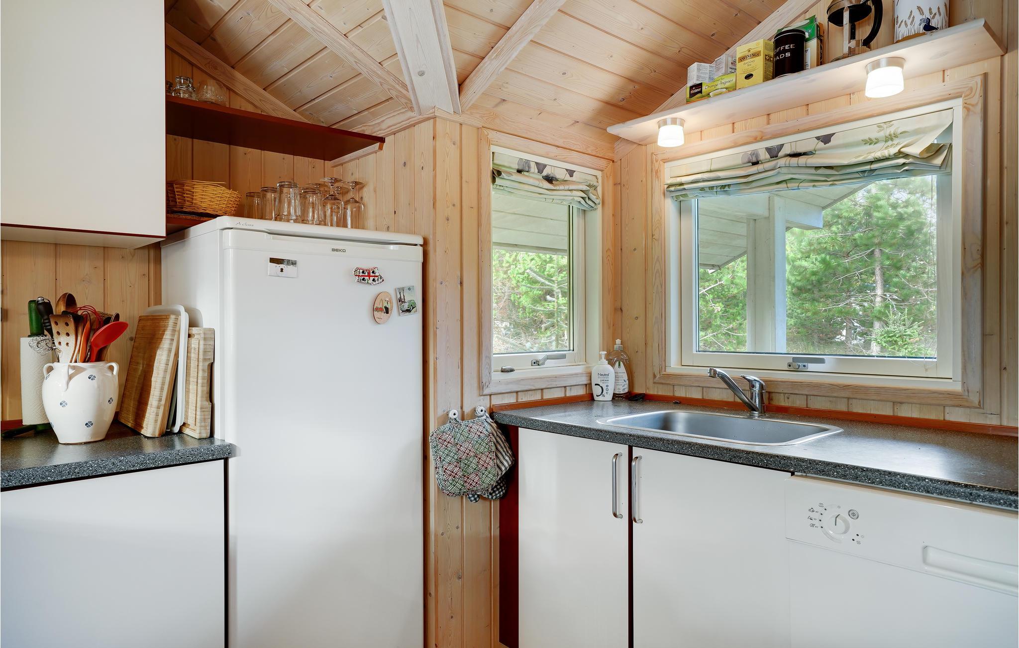 Dette sommerhus venter dig med en lys atmosfære med store vinduer, masser af træ og komfort. Saml familien i stuen til store aftener med brætspil og ild i pejsen.