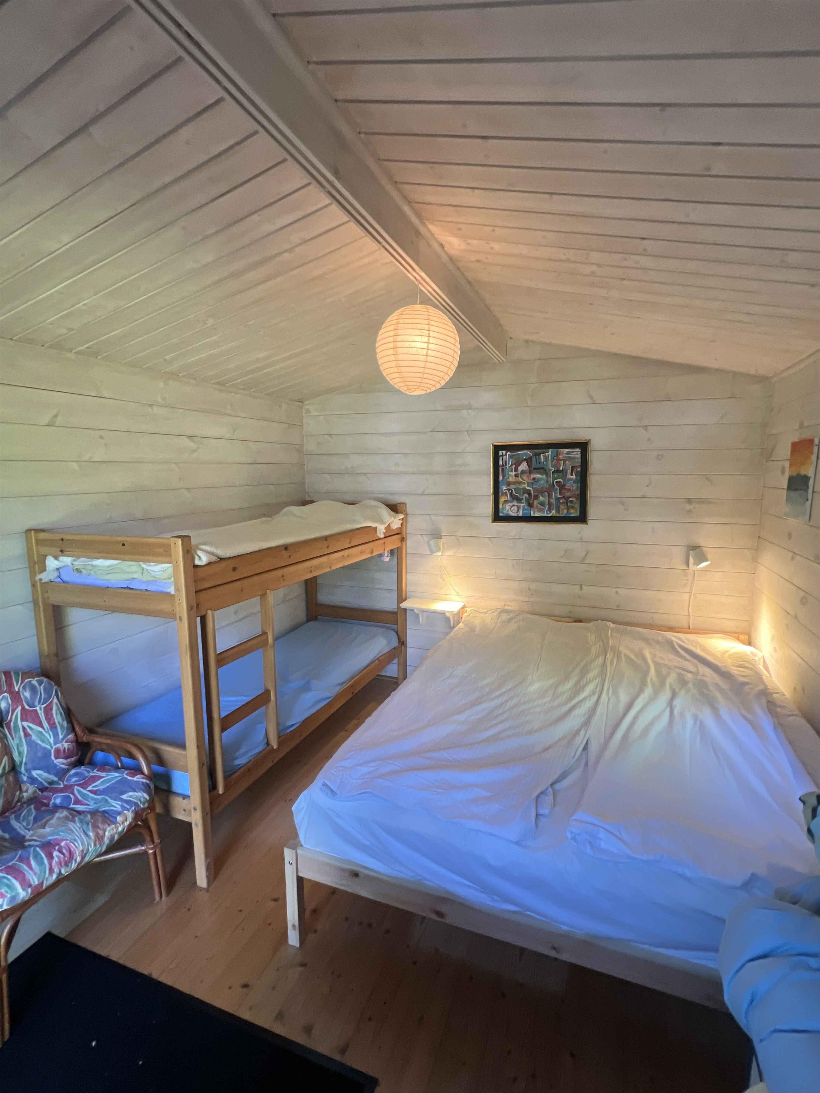 Hyggeligt nyrenoveret sommerhus på stor privat grund. 10 minutters gåtur til privat del af en af Danmarks bedste strande. Sommerhuset består af en hovedbygning med et soveværelse og bad, med to store terrasser (en overdækket). Derudover er der to hytter med et soveværelse hver. Der er i alt tre dobbeltsenge (nye 2025)(king, queen, queen) og en køjeseng. Så man kan komfortabelt være 8, incl. 2 er børn der vil sove i køjeseng. Veludstyret køkken med alt der skal bruges til at lave mad. (Kaffe, The, spisekammer m. krydderier). Udendørs møbler og solsenge. Diverse legetøj: Bolde, Badminton, kroket, Sandlegetøj, vandpistoler. Der er også en trækvogn til at bære sandlegetøj håndklæder mm. til stranden. Området byder på mange opleveleser: Smuk natur, Jættestuer, Havnebyen, Nykøbing sj. Sommerland Sjælland, Odshærred golfklub mm. Gudmindrup Strand er en af Sjællands bedste spots for Kitesurfing. 3 min i bil til indkøb (Rema Lumsås, SuperBrugsen Højby)