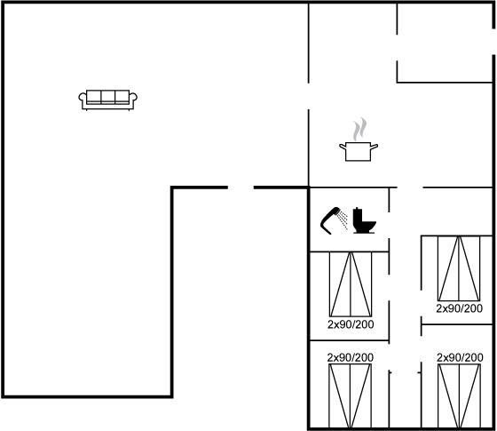 Der er i alt 4 soveværelser. Sovepladserne fordeler sig på: 8 sovepladser i dobbeltsenge. Derudover er der 1 stk. barneseng.