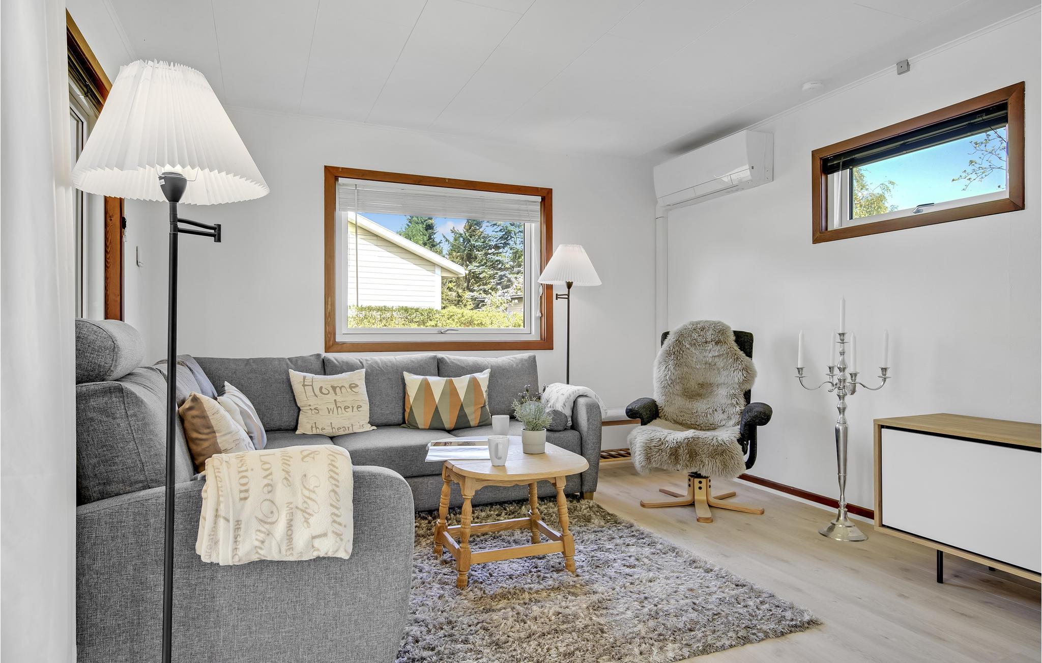 Tilbring en dejlig ferie i dette indbydende sommerhus, der er komfortabelt indrettet og skaber ideelle rammer for et ophold, som I vil huske med glæde i lang tid. Store vinduer slipper meget dagslys ind i huset og giver jer en vidunderlig udsigt over naturen.