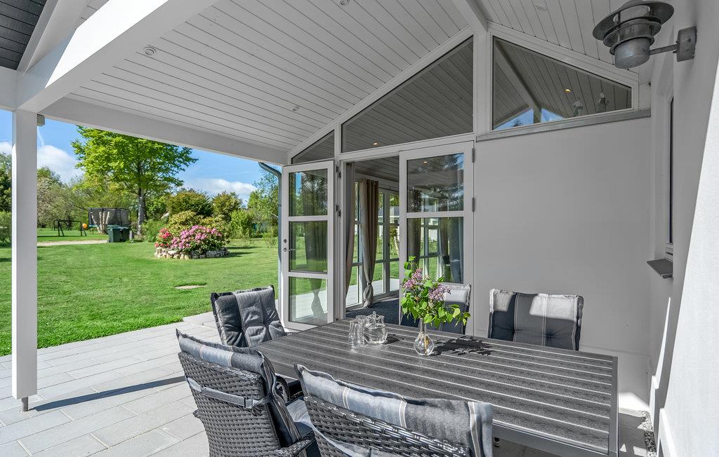 Slap af på den delvist overdækkede terrasse i komfortable havemøbler, nyd solen i liggestolene og tilbered lækre feriemåltider på grillen.