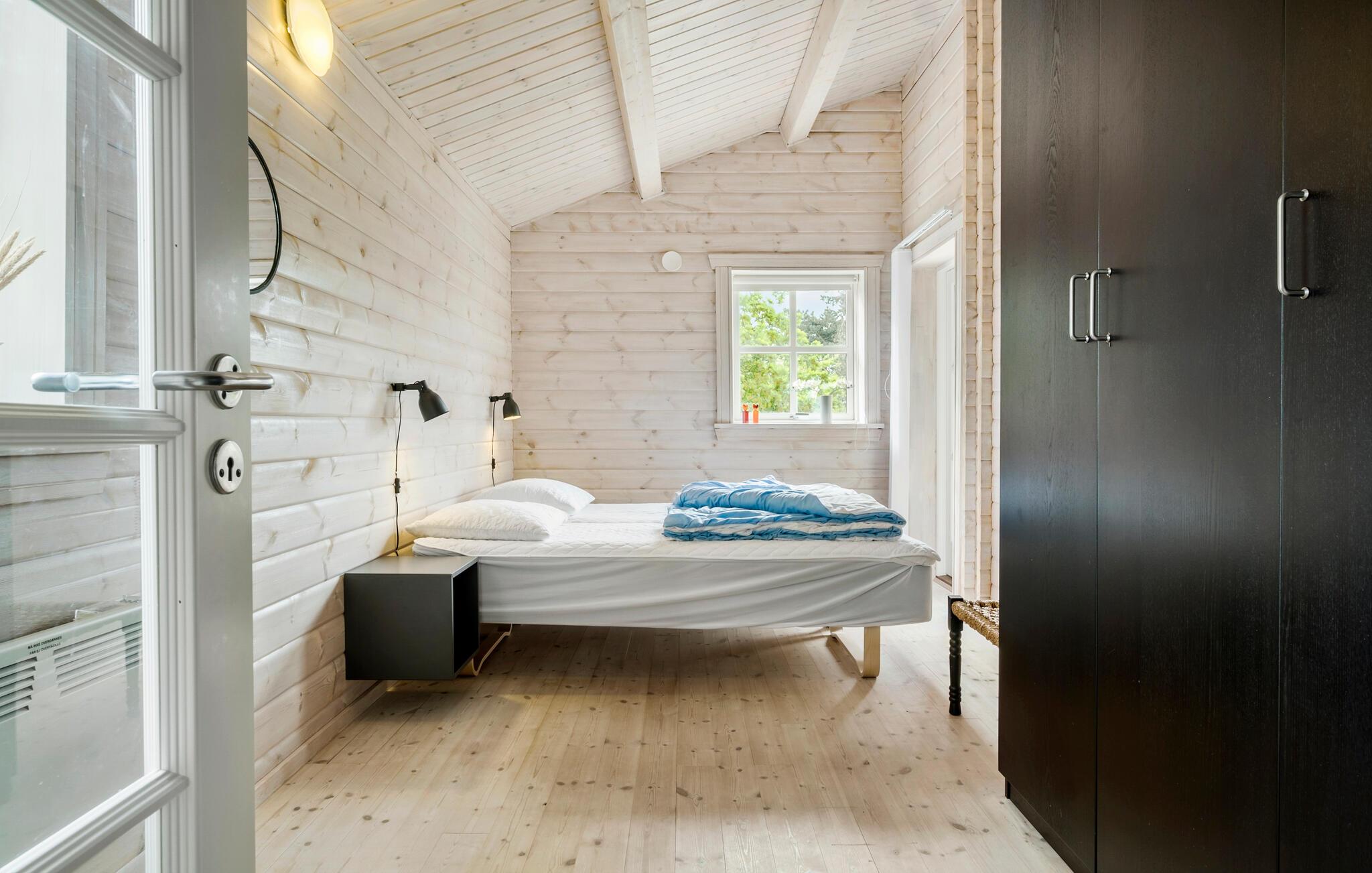 Gør jer klar til en herlig ferie tæt på Sejerø Bugt og den smukke natur i dette familievenlige træhus.