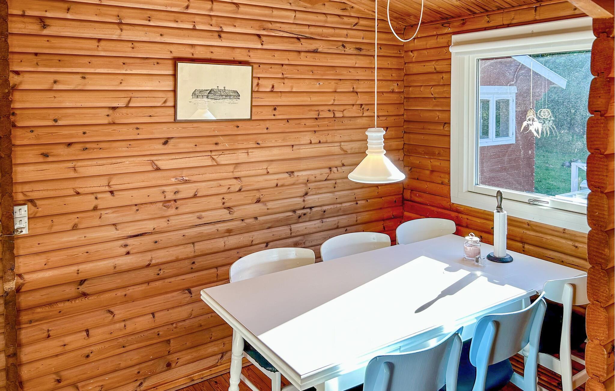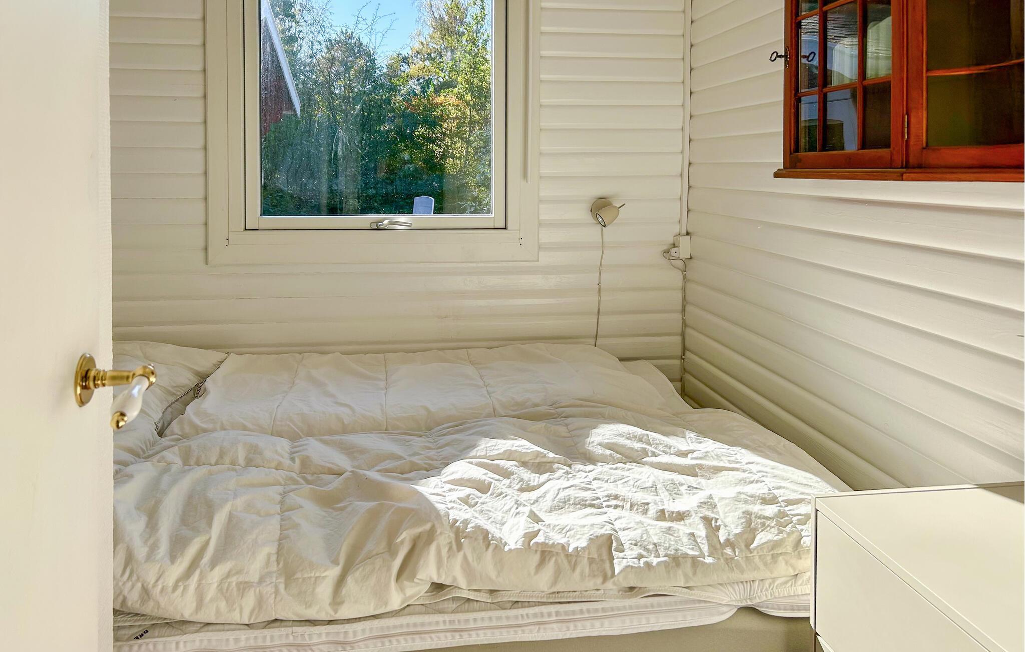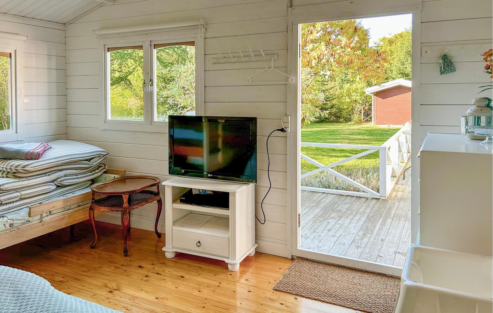 Omgivet af træer og natur tilbyder dette feriehus de ideelle rammer for familier, der søger fred, samhørighed og nærhed til havet. Bliv budt velkommen af ??den varme atmosfære i interiøret. Det lyse træ på vægge og loft skaber en hyggelig atmosfære, mens store vinduer åbner ud mod haven. Sæt jer godt til rette i den komfortable sofa foran brændeovnen eller nyd måltiderne sammen ved spisebordet med udsigt over de grønne områder. Det kompakte køkken giver jer mulighed for at tilberede enkle feriemåltider.