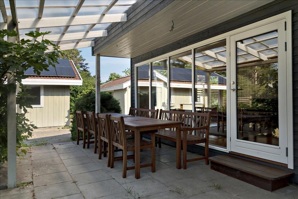 Den store naturgrund byder på en grøn græsplæne, perfekt til havespil og afslapning under åben himmel. Hovedhuset har en stor træterrasse, hvor du kan nyde måltider i det fri eller lade dagens sidste solstråler varme dig. Ved annekset findes en hyggelig, overdækket terrasse, hvor du kan trække dig tilbage med en kop kaffe, selv når vejret er lidt køligere. Til bilen er der en praktisk carport, så du altid kan parkere i skyggen på varme sommerdage.