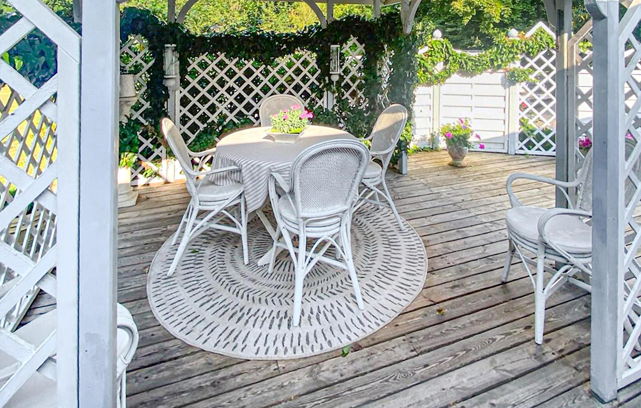 Læn jer tilbage i en af de komfortable stole på terrassen og nyd en stille stund i de ugenerte rammer. Her er det skønt bare at sætte sig med en kop kaffe efter dagens eventyr.