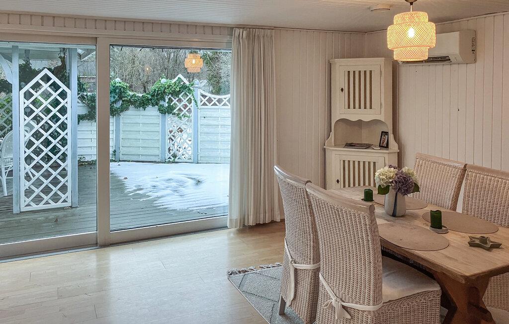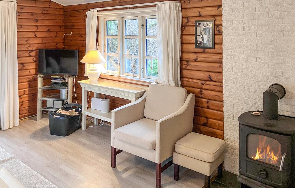 Bliv budt velkommen af ??den indbydende atmosfære i interiøret. Find jer godt til rette i den varme og imødekommende opholdsstue på sofaen og lænestolene og nyd afslappende aftener, mens ilden knitrer hyggeligt i brændeovnen. Brug spisebordet til fælles måltider, samtaler eller planlægning af jeres udflugter og tilbered lækre retter i det kompakte køkken.