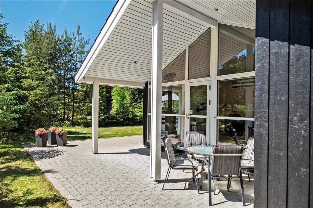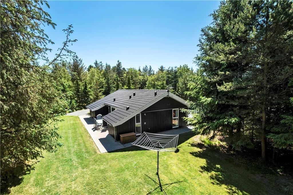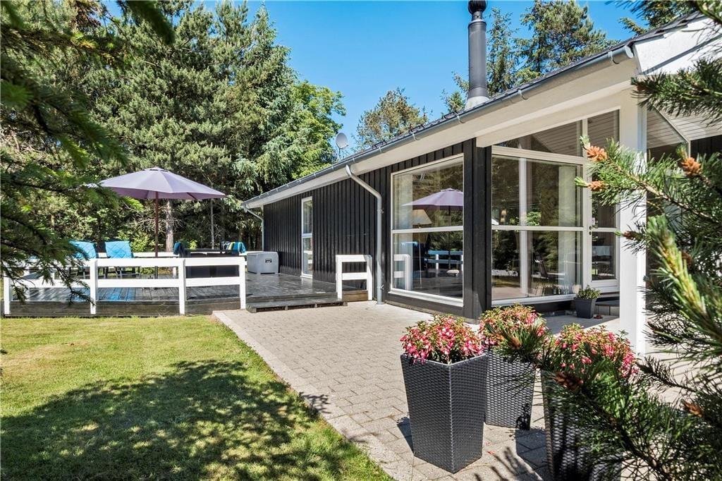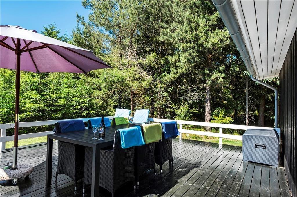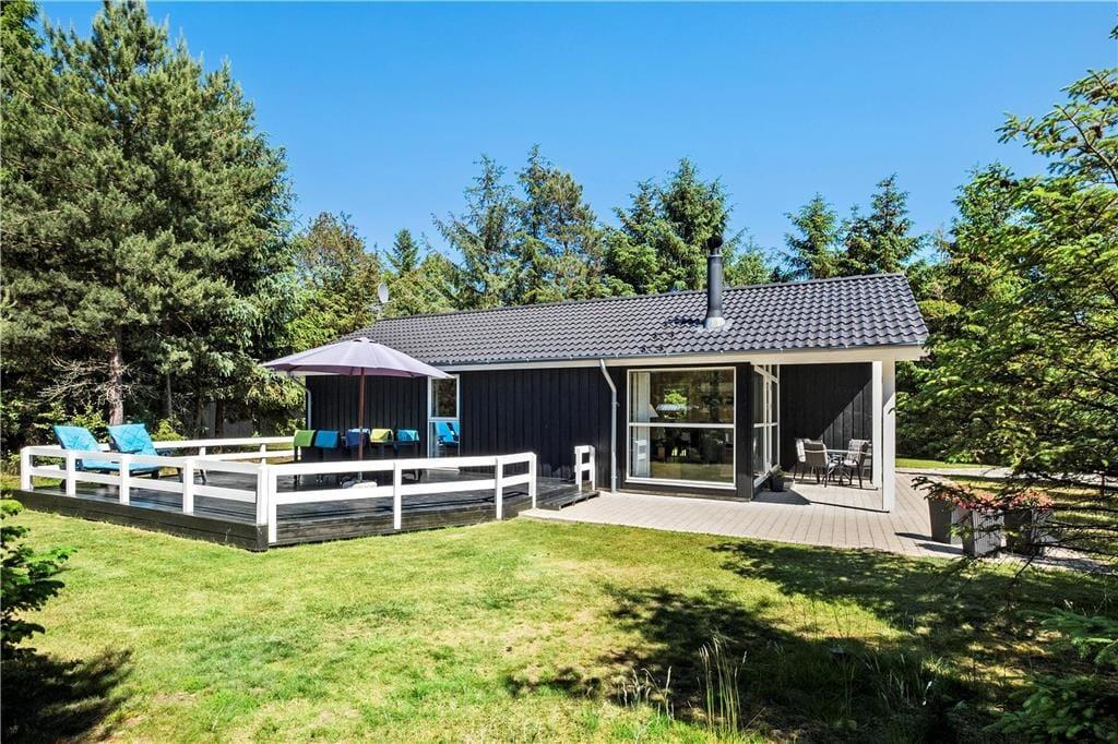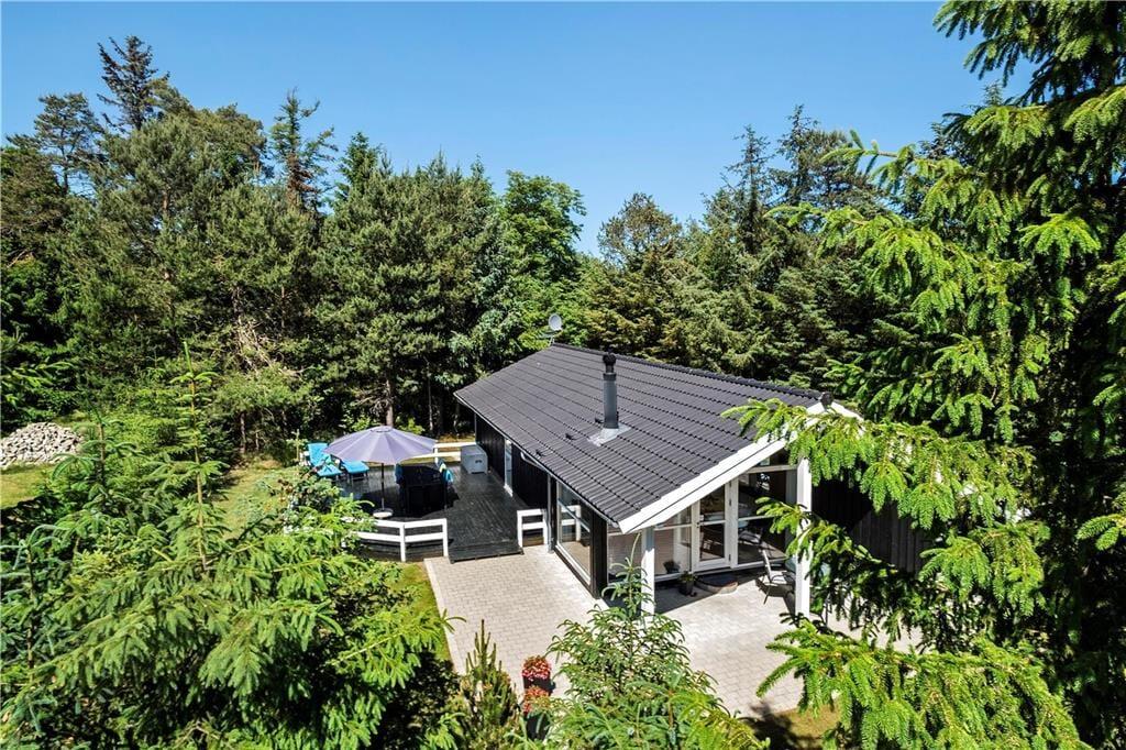 Huset ligger på en naturgrund og omgivet af høje træer, men uden at lukke af for solens stråler. Grunden bliver passet og plejet, så den fremstår så pæn som muligt, men stadig på naturens præmisser. Sådan skal det være i et rigtigt sommerhus! På husets 3 store terrasser er der rig mulighed for at slappe helt af og nyde solen og ferien.