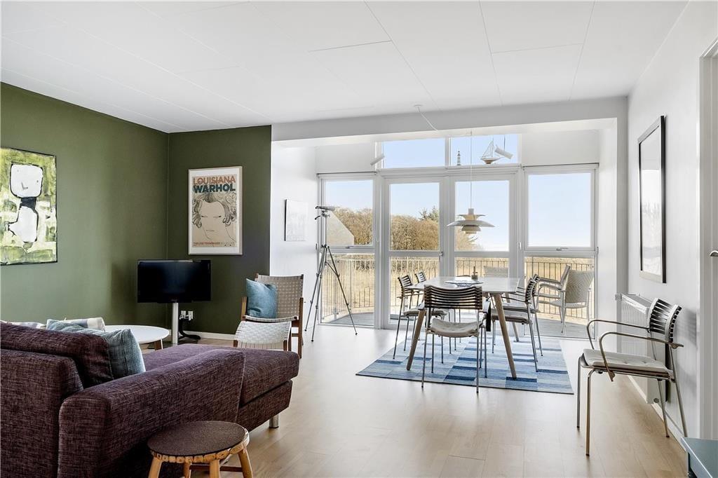Ikke bare ude på de to altaner, men også inde fra lejligheden kan I nyde udsigten til det bølgende hav. Det er et smukt bagtæppe for ferielivet, uanset om efterårsblæsten rusker op i havet eller om sommersolen glimter i det blikstille vand. Kan I løsrive blikket et øjeblik fra det smukke syn, er selve lejligheden bestemt også værd at kigge nærmere på. Den blev nemlig renoveret på vellykket vis i 2010 og er indrettet med både stilfuldt og komfortabelt interiør. Lejlighedens største rum er stuen, der ligger i åben forbindelse med et rummeligt og moderne indrettet køkken. De to soveværelser har også en pæn størrelse og giver plads til i alt fire voksne overnattende. Endelig rummer ferieboligen også et pænt badeværelse med bruseniche og vaskemaskine.