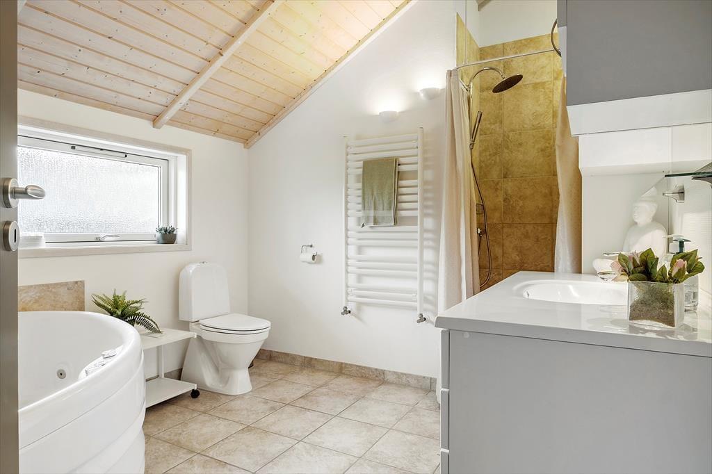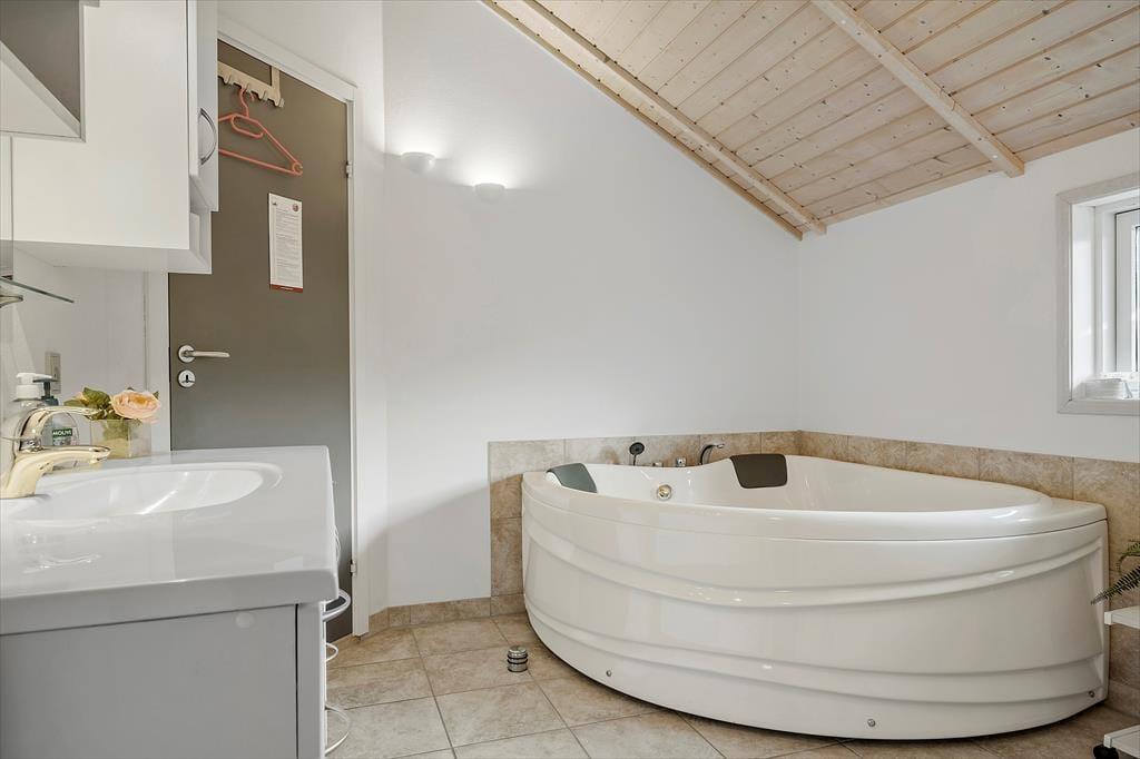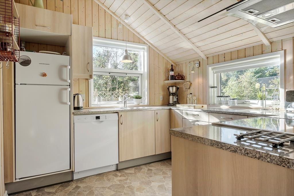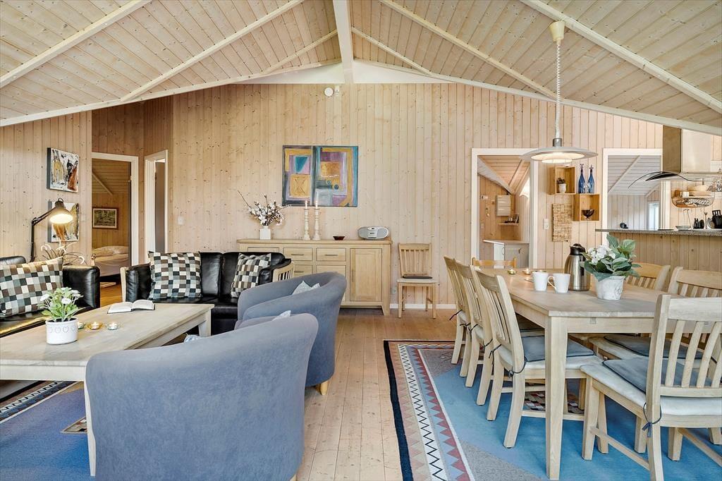 Sommerhusatmosfæren er i top inden døre, hvor I kan brede jer på 97 velindrettede kvadratmeter. Det centrale samlingspunkt i huset er opholdsafdelingen, der består af køkken og stue i åben forbindelse. Her er der loft til kip og store vinduespartier, som bidrager til den lyse og luftige rumfornemmelse, og med komfortable siddemøbler, spisebord, stort fladskærms-tv og en veludstyret køkkenafdeling har I alt, hvad I skal bruge for at hygge jer og nyde ferielivet. En afslapningsstund i spabadet, der står på badeværelset, er også perfekt, når I vil koble helt af. Som supplement til badeværelset ligger et gæstetoilet ved entréen, og derudover består planløsningen af tre gode soveværelser, der alle er udstyret med bløde dobbeltsenge – og ligesom i resten af huset er der for øvrigt også gulvvarme her. Får I brug for at friske feriegarderoben op, er der vaskemaskine i annekset. Kan I lide at fiske, vil I værdsætte anneksets fiskerensebord med koldt og varmt vand – plus at der er god plads til at hænge waders til tørre.