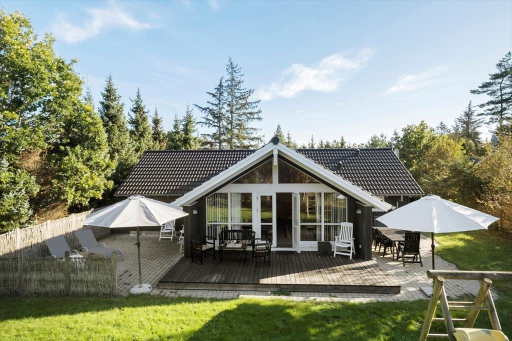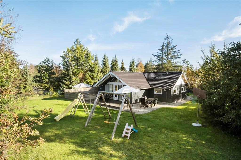 Velkommen til dette lyse, velholdte og særdeles indbydende sommerhus, der ligger i et lukket feriehusområde få hundrede meter fra Bisnap Strand.