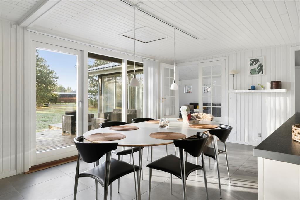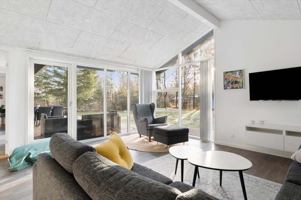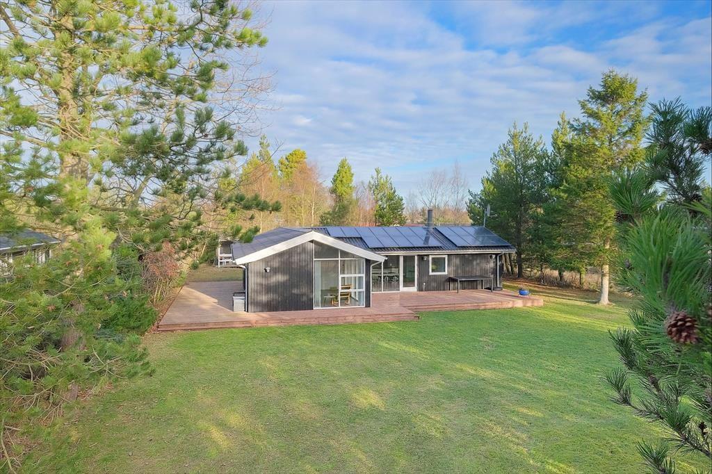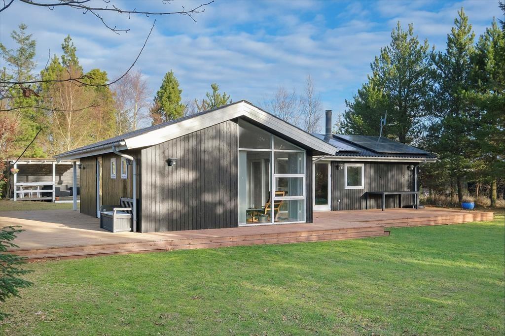 En grill samt liggestole og havemøbler er med til at forsøde udelivet på den store træterrasse, der breder sig rundt om huset. Når I ikke sidder her og slikker sol, er der god plads til leg og havespil på græsplænen, og som underholdning til børnene er der legestativ med gynger og rutsjebane på den 1052 m2 store grund.