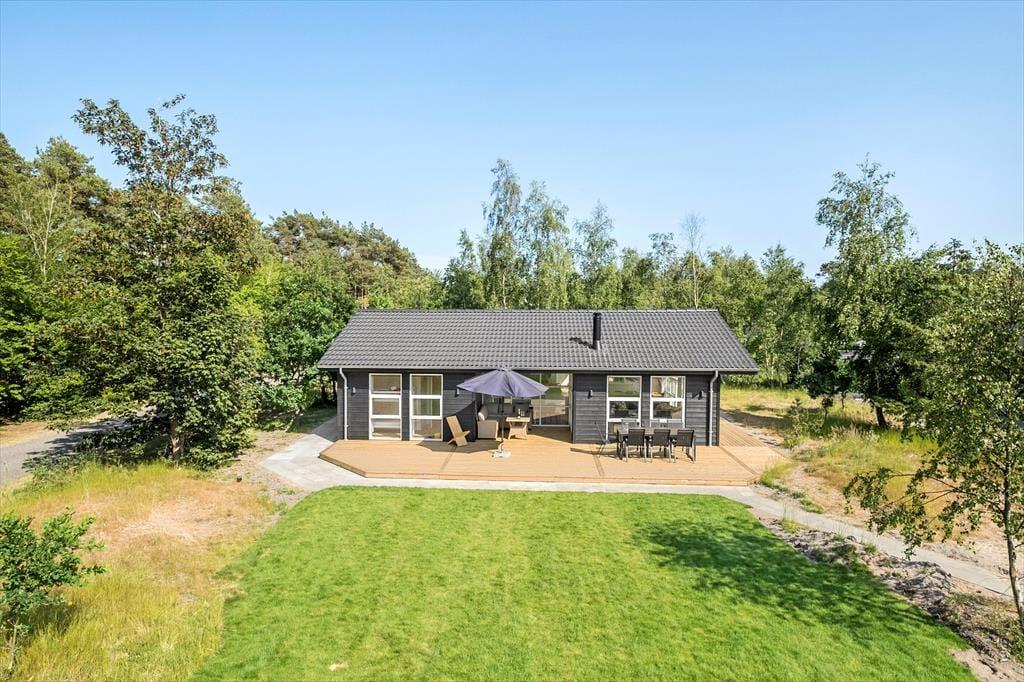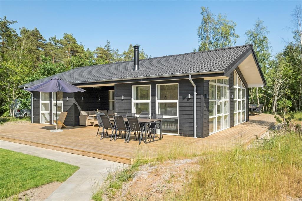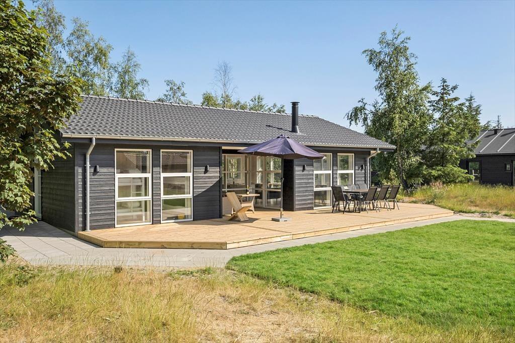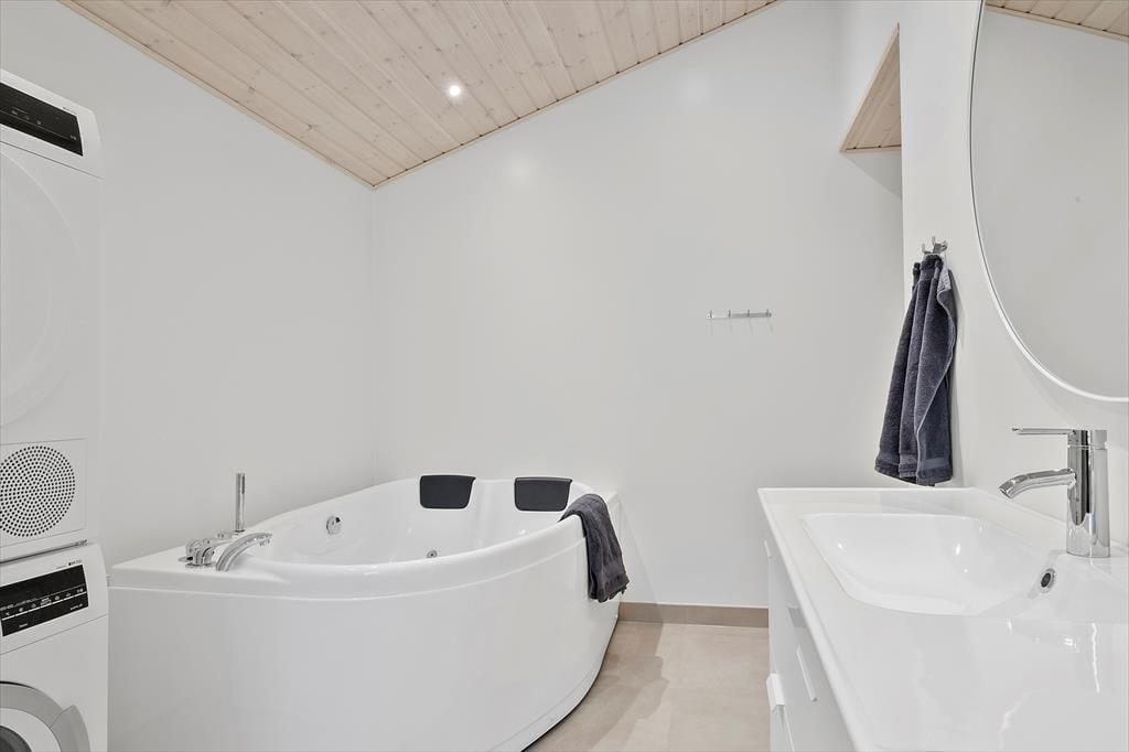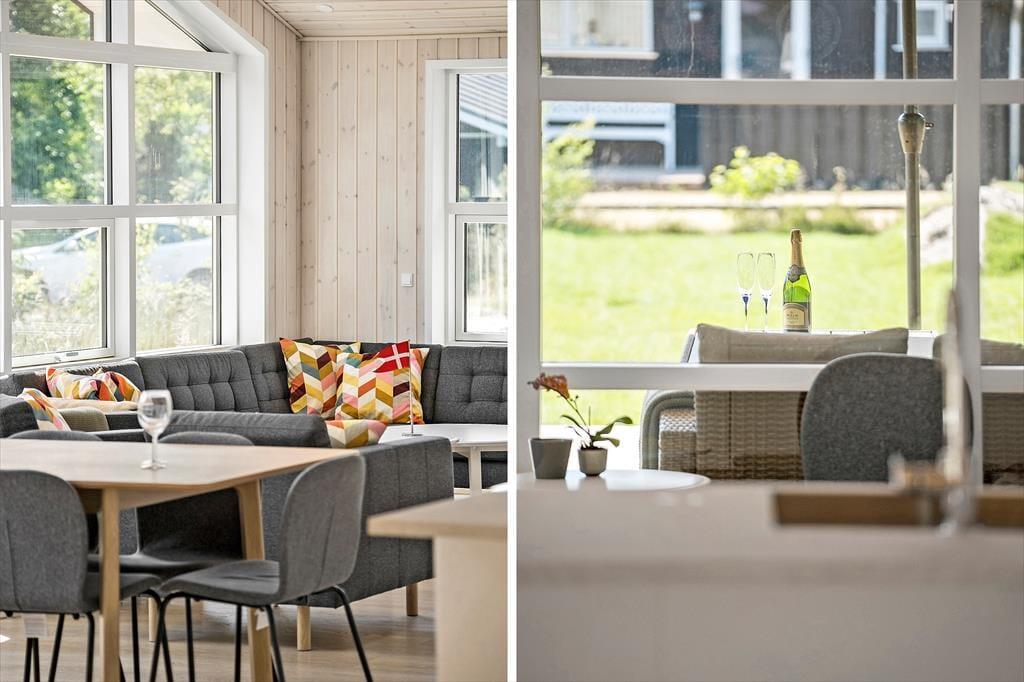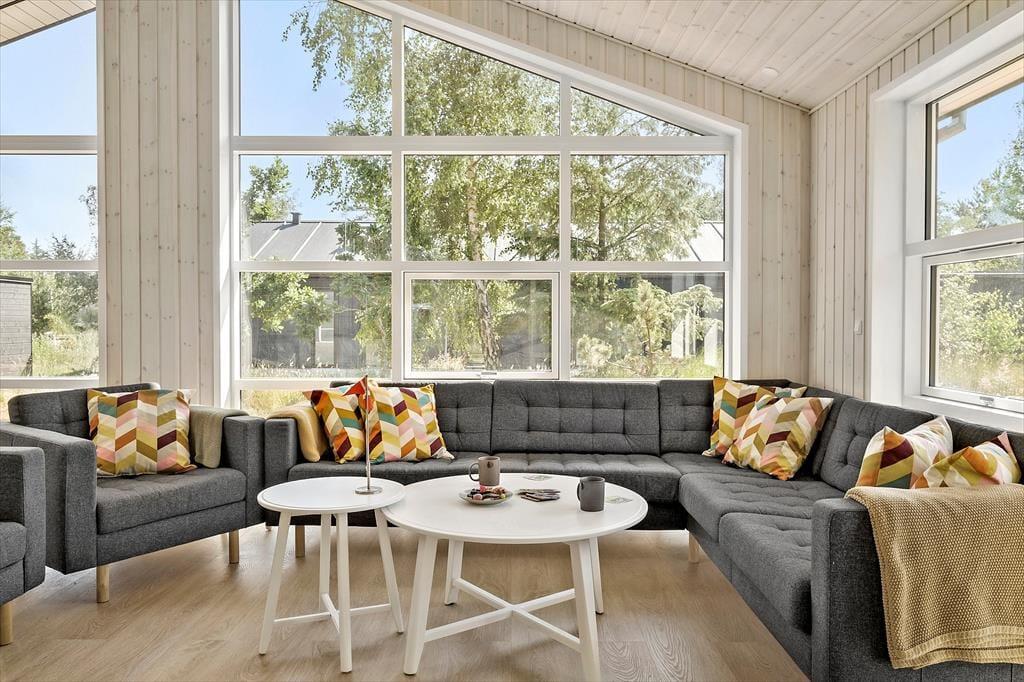 Hvis I er på udkig efter et moderne sommerhus til mange mennesker, har I fundet det helt rette, for med fem soveværelser, to badeværelser og i alt 159 m2 kan I være 14 personer samlet. Fire af værelserne har hver især to sengepladser, og på det femte står der to køjesenge. Herfra går der også en stige op til en hems med ekstra madrasser, så alt i alt kan rummet fungere som en hyggelig sovesal. Begge badeværelser er med bruseniche, og på det største får I også glæde af et spabad. Er I ikke i humør til wellness, men mere til sjov og ballade, kan I tage et slag pool eller lave bordtennisturnering for hele familien. Dagen kan også foregå i ro og mag nær brændeovnen i sommerhusets flotte og lyse stue, og når I er ved at blive sultne, kan I påbegynde madlavningen i det åbne køkken. Sammenlignet med almindelige sommerhuset er køkkenet særdeles rummeligt og veludstyret – blandt andet med to ovne, hvilket er dejligt, når huset er fuldt.