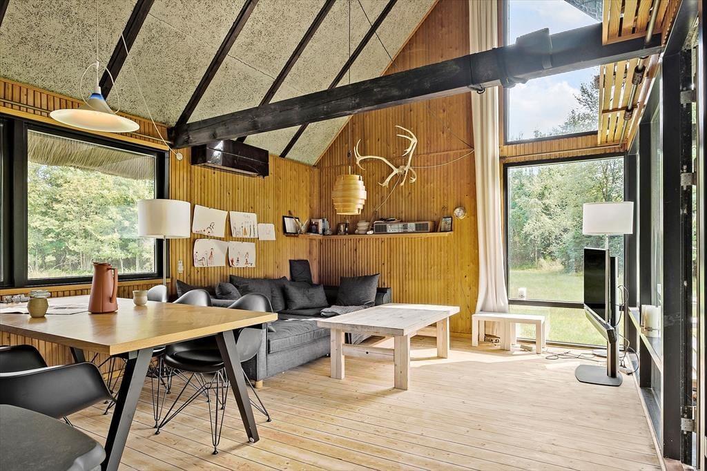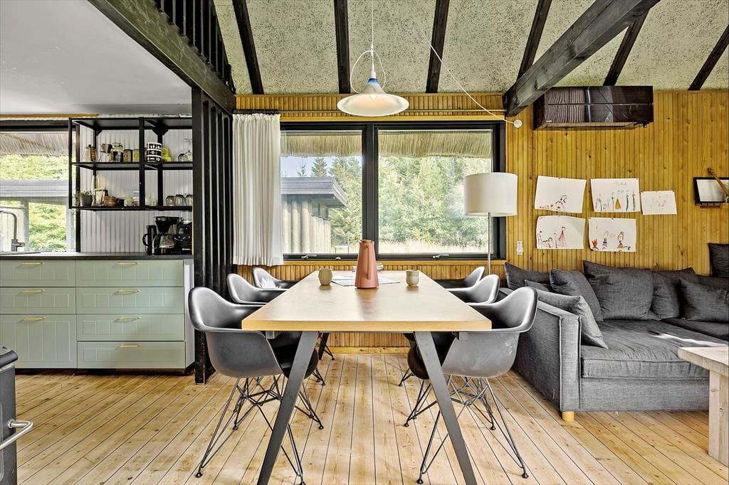 Indenfor mødes du af et lyst og indbydende sommerhusmiljø, hvor komfort og hyggestunder går hånd i hånd. De åbne opholdsrum skaber naturlige rammer for samvær, hvad enten det er ved spisebordet, i sofaen med en god film eller under leg for børnene. De store vinduer lukker dagslyset ind og giver samtidig udsyn til haven og de grønne omgivelser, hvilket skaber en tæt forbindelse mellem ude og inde. De velvalgte møbler og hyggelige detaljer giver en varm og indbydende atmosfære, hvor det er let at finde sin favoritplads. Sommerhuset på Koldkærvej 17 kombinerer enkel, hyggelig indretning med funktionelle rum, og det er tydeligt, at her er tænkt på alle sanser, så feriestemningen indtræffer med det samme.