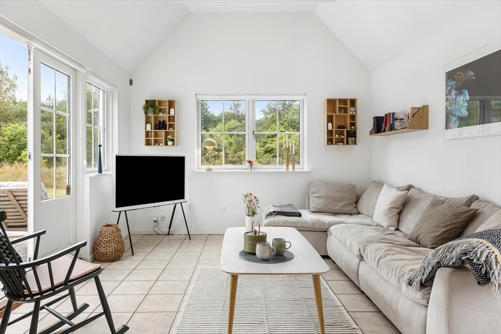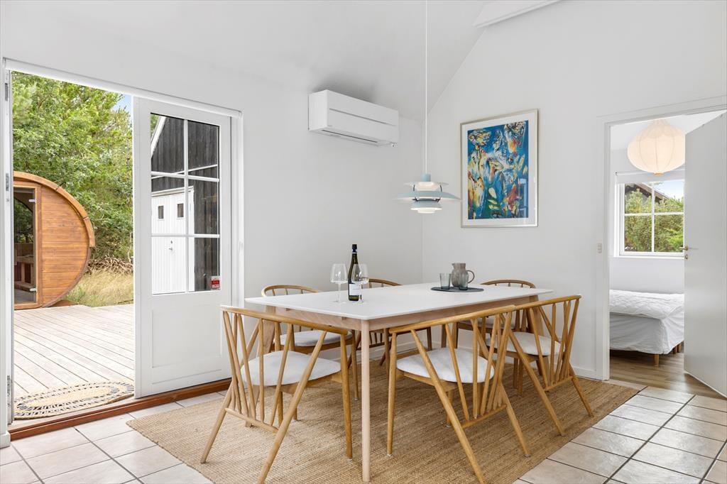 Inden døre mødes du af en lys og charmerende indretning, der straks skaber en afslappende atmosfære. Rummene er indrettet med et øje for hygge og komfort, så du nemt kan forestille dig at samles om måltiderne, sætte dig godt til rette i sofaen eller finde en stille stund med en bog. Sommerhuset er oplagt til flere generationer eller vennepar, som vil nyde hinandens selskab i rare rammer. Når ferien kalder på ren afslapning, kan du forkæle dig selv med en tur i spaen eller saunaen indenfor – og bagefter mærke den dejlige ro brede sig i kroppen. Alt i alt får du en base, hvor det er let at lægge hverdagen bag sig og lade ferieglæden fylde.