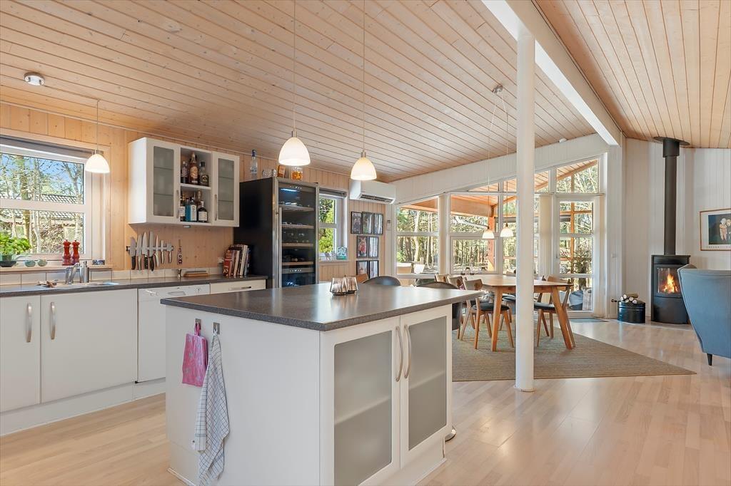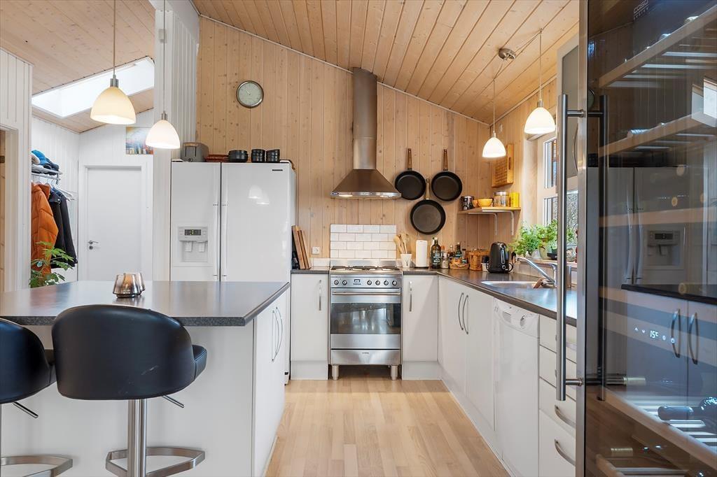 Sommerhus i Hals, Nordjylland, med plads til 6 voksne og 2 børn. Der er en hyggelig indretning med bl.a. brændeovn, og du finder desuden vaskemaskine, opvaskemaskine og tørretumbler i boligen.