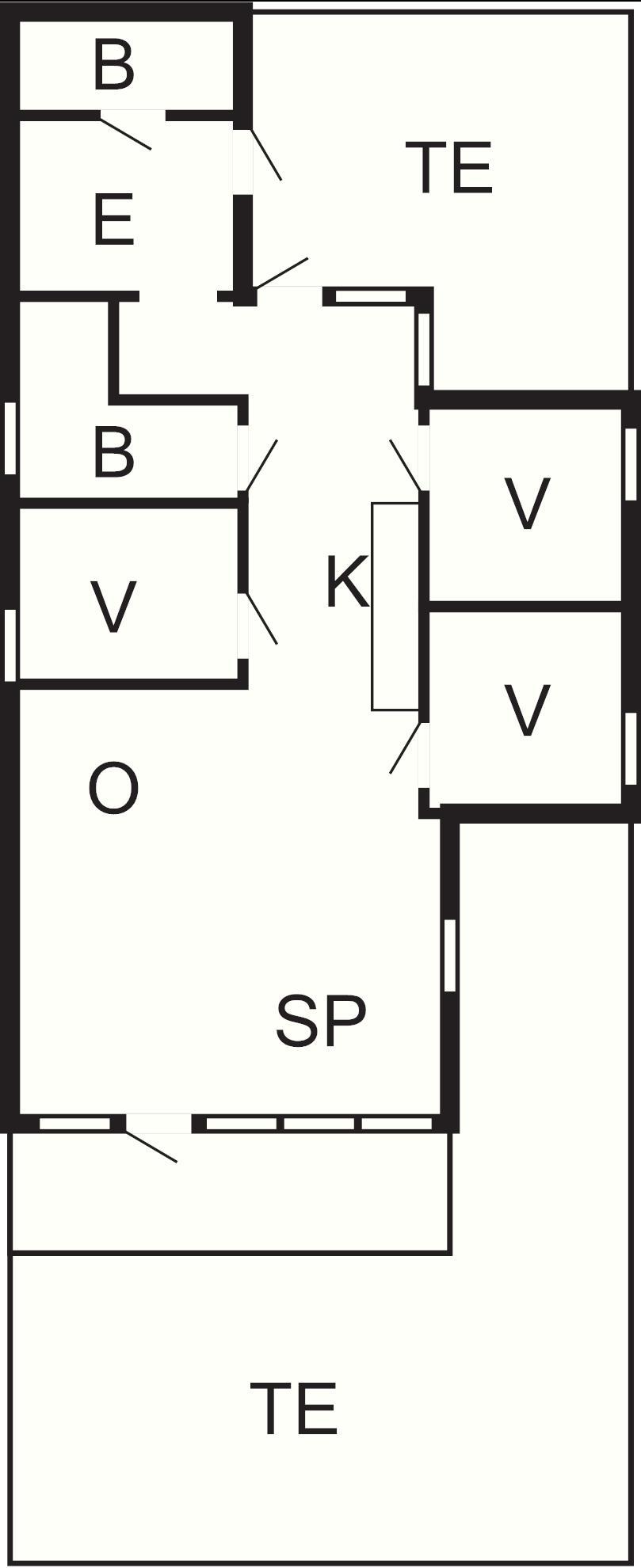 3 Soveværelser: (1DS)+(2S)+(2S), barneseng