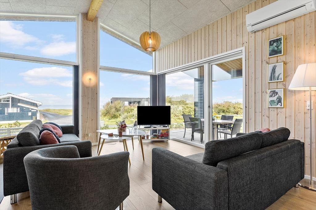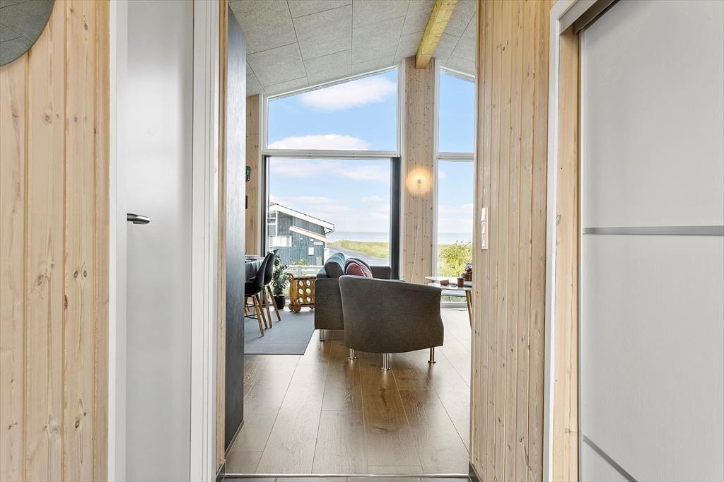Handbjerg er et herligt sted at holde ferie, for det lille og hyggelige sommerhusområde ligger smukt ud til Limfjorden og byder på både badestrand og marina. Og når du ovenikøbet holder til i dette moderne kvalitetshus, får du en gennemført komfortabel ramme om driverlivet – i lyse, stilfulde rum og med både vildmarksbad og udsigt til vandet.