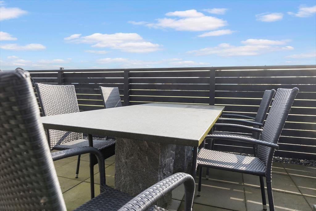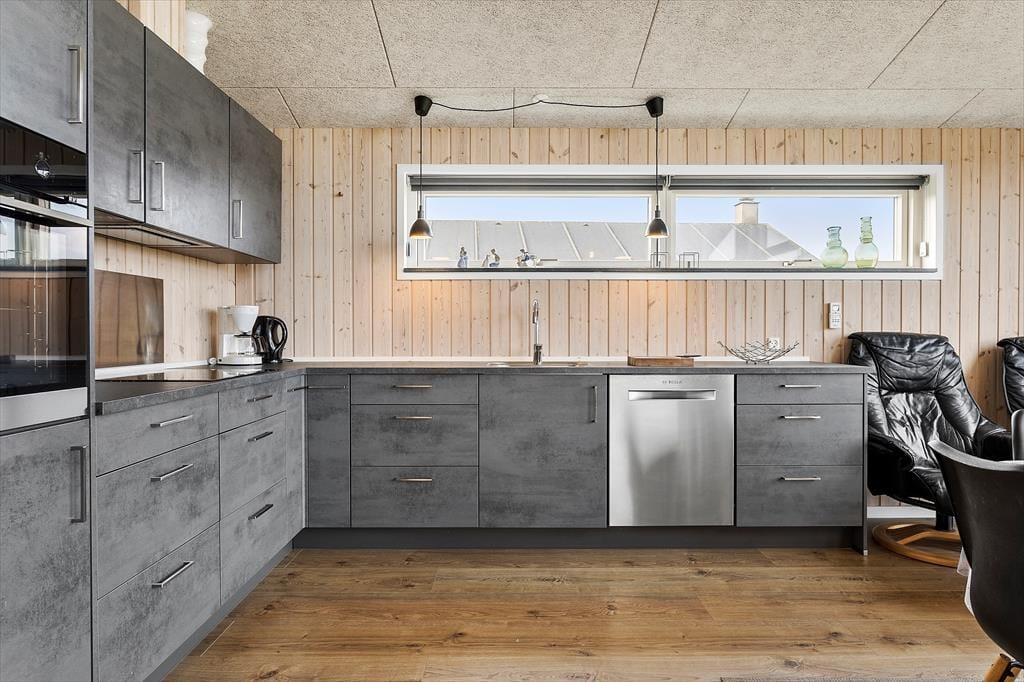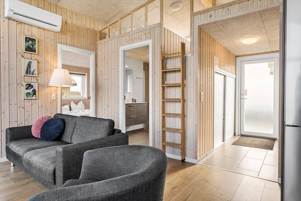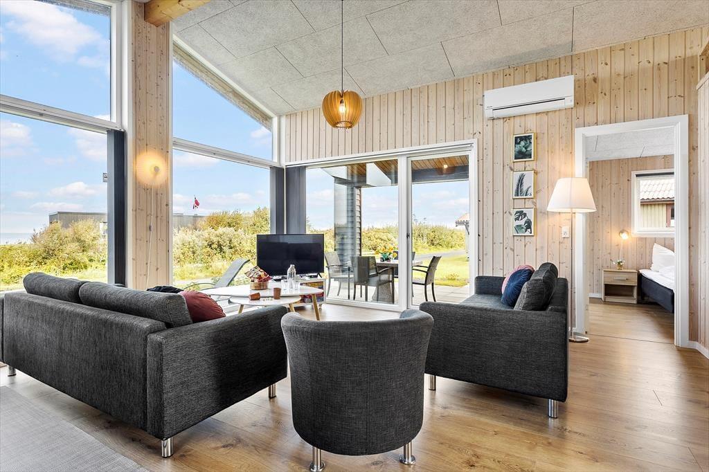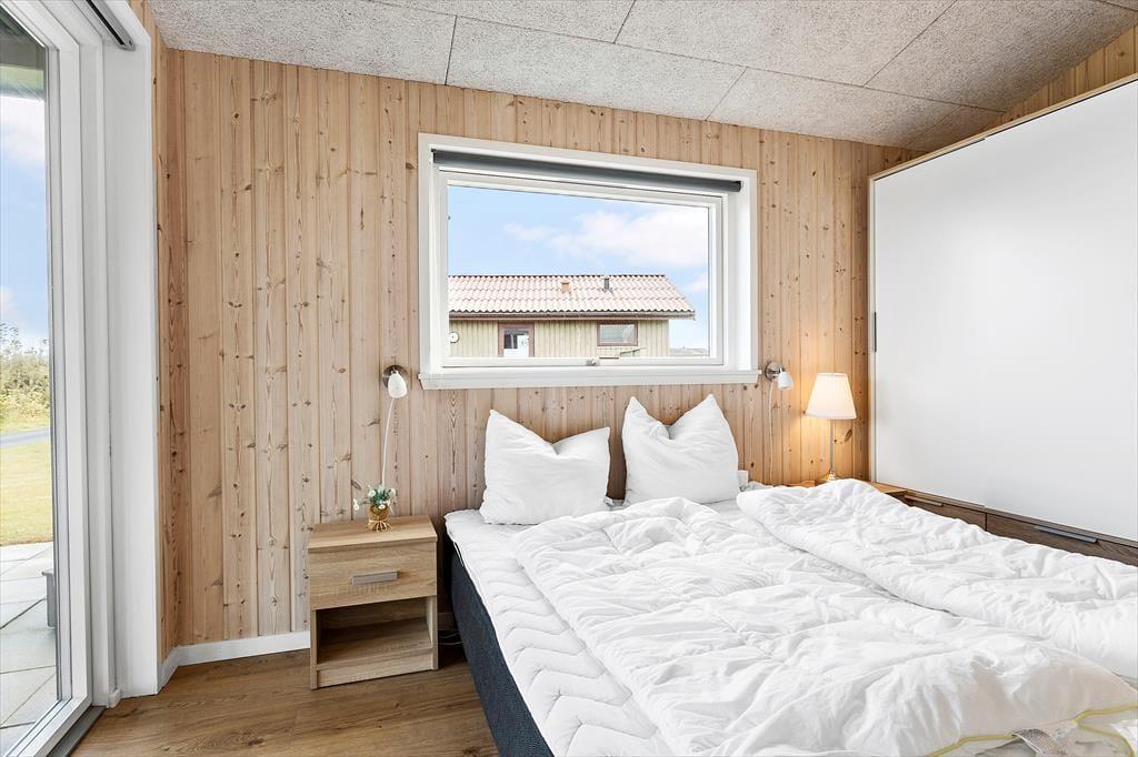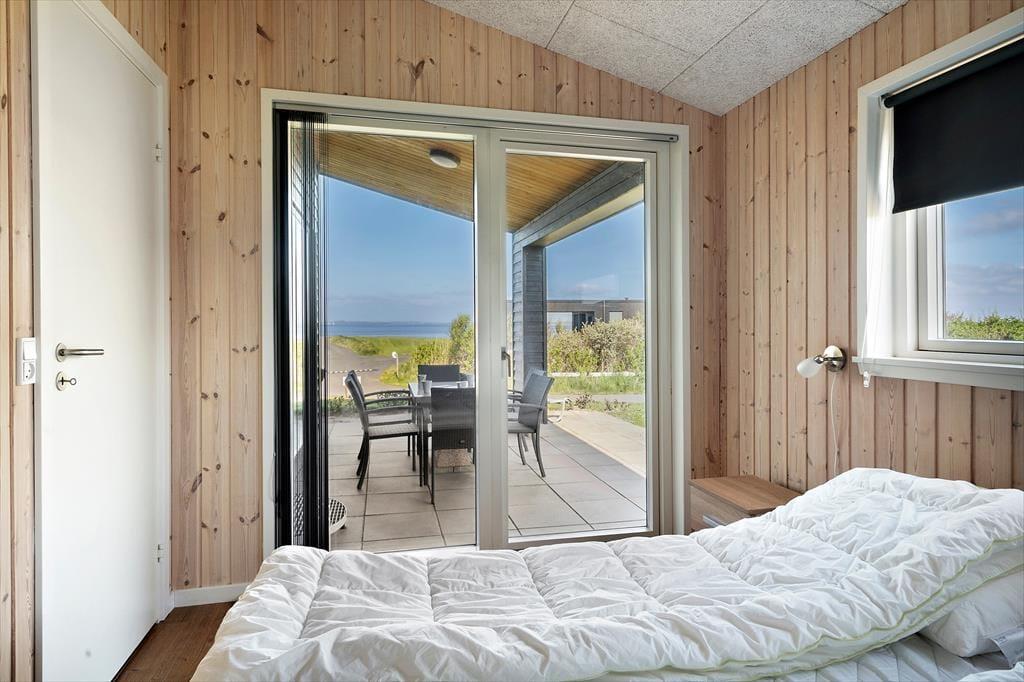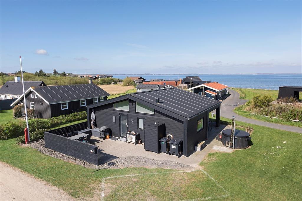 Inden bag den stilrene facade venter de lyse og indbydende rum på at byde dig velkommen. Sommerhuset er opført i 2021, og alt, lige fra akustikloftet og de store vinduespartier til det moderne møblement sørger for, at du og dine kære straks kan føle jer godt til rette. Fra stuens sofaafdeling og spiseplads kan I nyde den smukke udsigt til fjorden, og på det ene af de to soveværelser kan I vågne op til det smukke syn af bølgernes krusninger under de drivende skyer. Fra stuen fører en stige op til en hems, der også kan bruges til overnatning, så alt i alt er der sengepladser til seks personer.