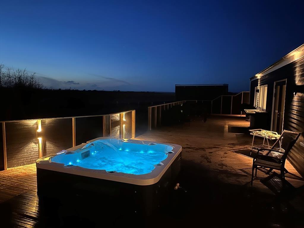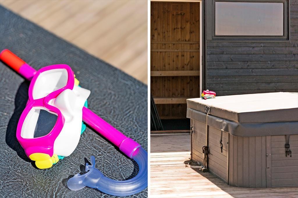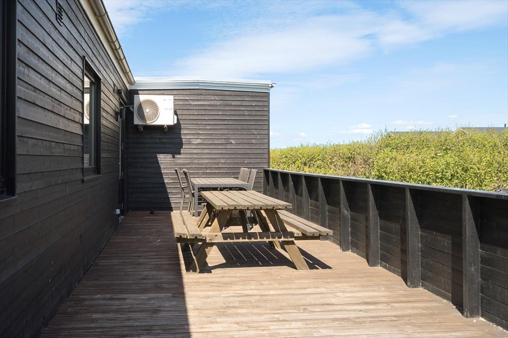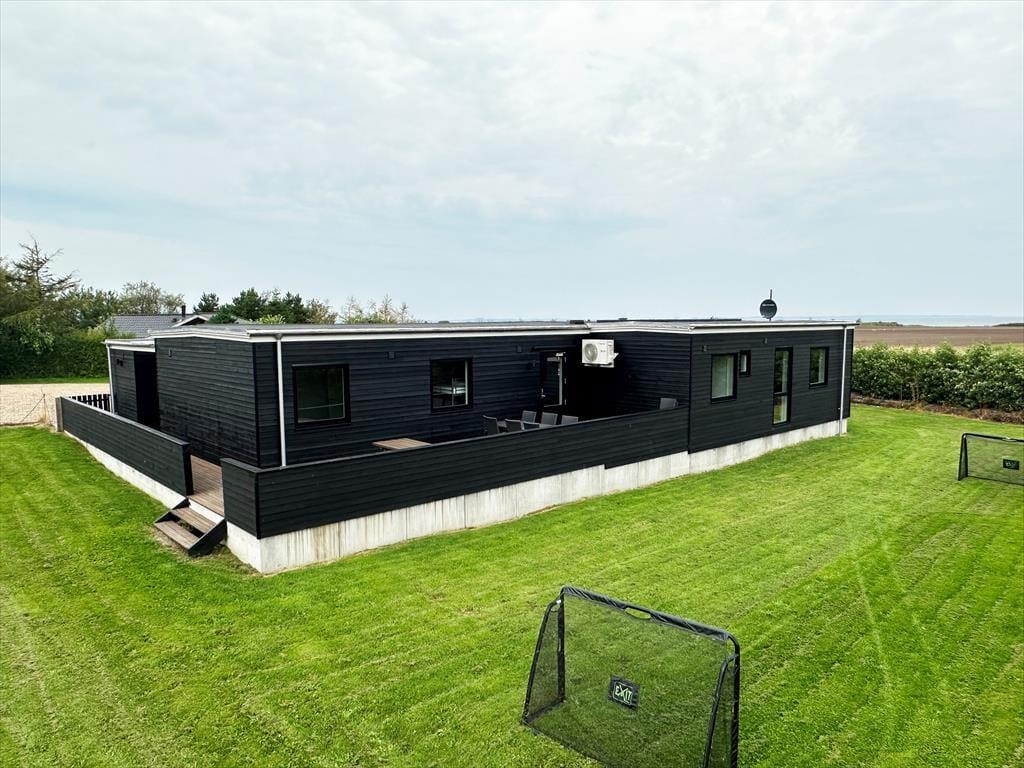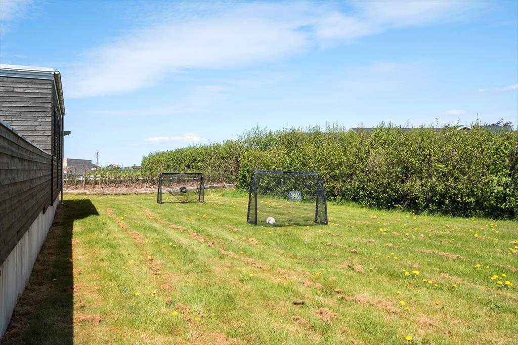 På husets store terrasse folder ferielivet sig ud med alt, hvad hjertet kan begære – og mere til. Her er god plads til at slappe af i solen med en bog, spille kort med børnene eller nyde lange, lune sommeraftener i godt selskab. Det lækre udendørs spabad er et af husets helt store højdepunkter. Forestil dig at sidde her under stjernerne med et glas bobler i hånden, mens vandet bruser blidt omkring dig – ren magi! Haven er rummelig og grøn, og her er rigelig plads til leg, boldspil og løbende hundepoter, for hele tre hunde er hjerteligt velkomne her. Med både åbne og mere afskærmede kroge på terrassen kan du altid finde et sted med læ – og når grillen tændes, spreder duften af sommer sig over hele haven.