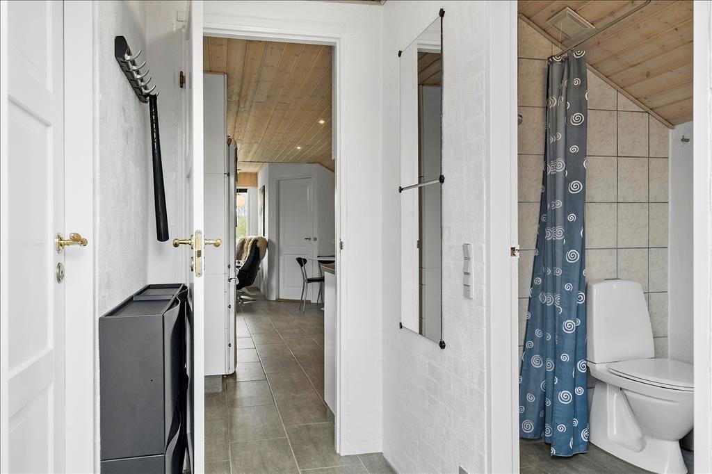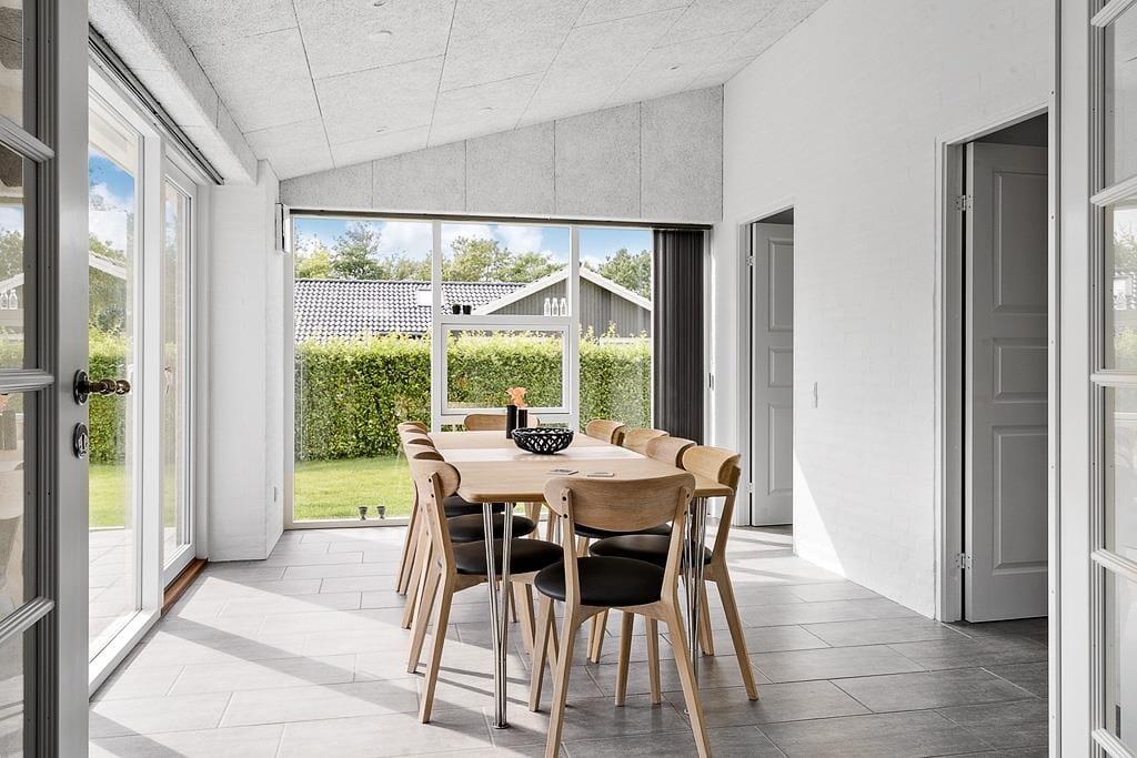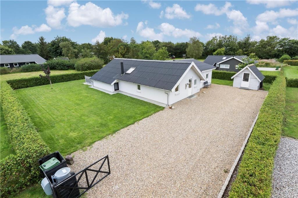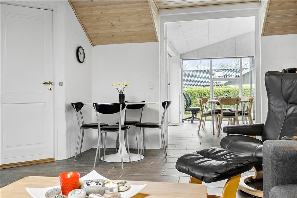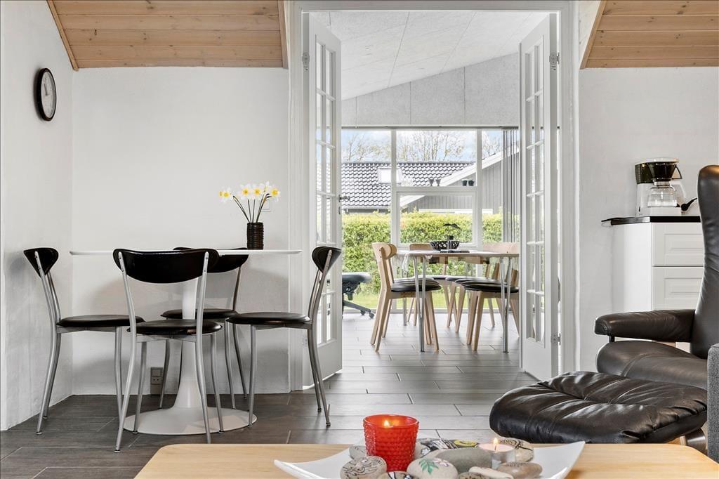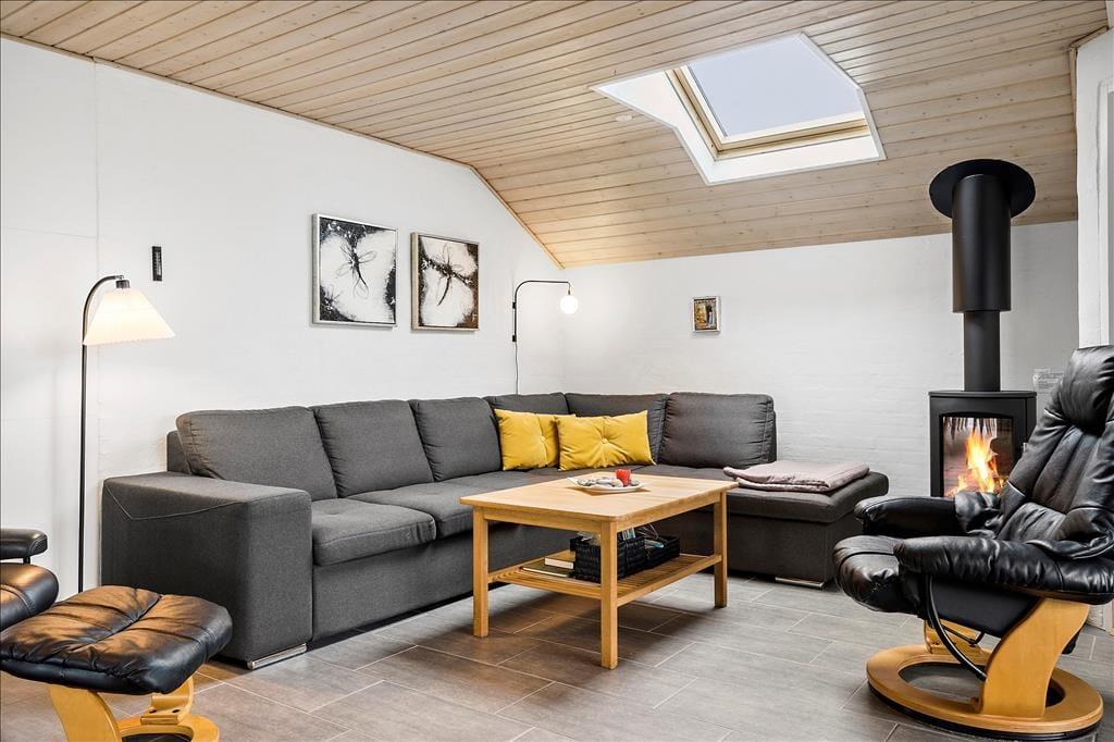 Det murede sommerhus er blevet vedligeholdt og moderniseret løbende – blandt andet er køkkenet fra 2010, og i 2019 blev planløsningen udvidet med en ny, flot tilbygning. Alle rum fremstår pæne og velindrettede, og planløsningen er gennemtænkt, så I har god plads til at folde ferielivet ud. Når I vil hygge jer sammen, kan det foregå i den hyggelige opholdsstue, der har brændeovn, fladskærms-tv med Chromecast, flere bløde siddepladser og åben forbindelse til det førnævnte køkken. Dobbeltdøre åbner op til en skøn spisestue, hvor I kan samles til lækre middage med udsigt til haven gennem de store vinduer. På de fem værelser kan I se frem til at sove længe i komfortable senge, og på det største af husets to badeværelser er der lagt op til wellness og afslapning takket være den lækre hjørnespa.