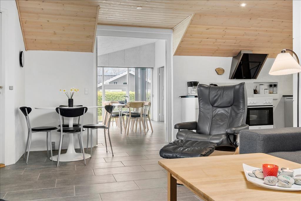 I får en dejlig ramme om ferien, når den foregår ved Handbjerg Strand i dette velindrettede sommerhus på 117 m2. Med så stort et hus kan I nemt og bekvemt være op til 10 personer inden døre, og ude kan I nyde livet på den solrige terrasse og i den grønne have.