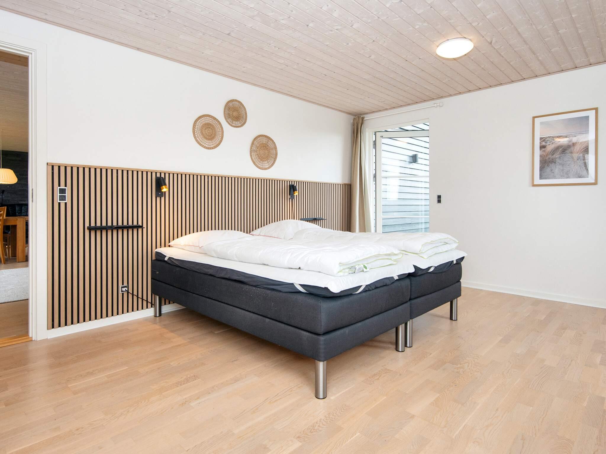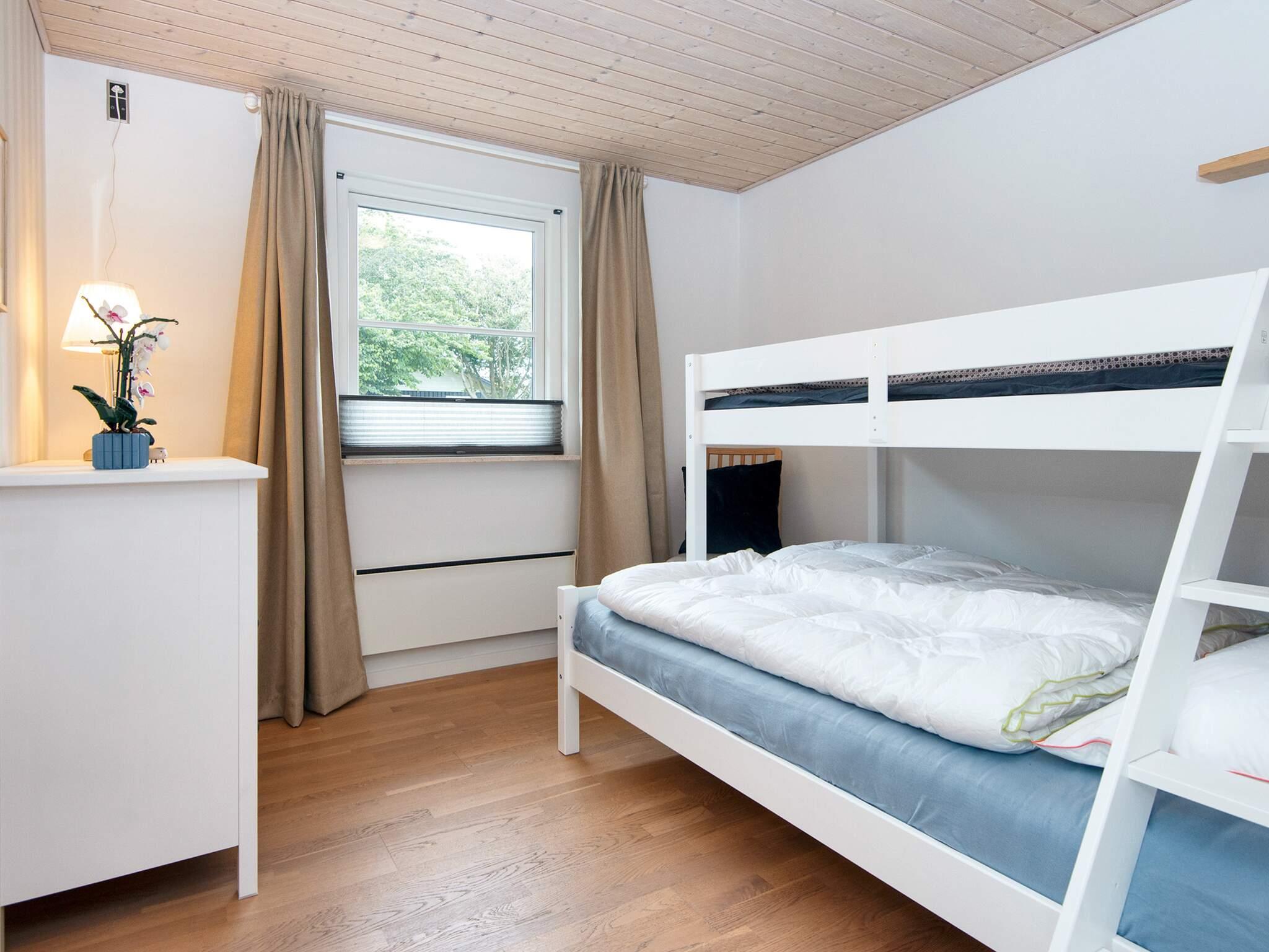 Sommerhuset har fire soveværelser heraf 2 værelser med dobbeltseng, hvoraf den ene er (140x200), 1 værelse med dobbeltseng (140x200) og 1 køje samt 1 værelse med 2 køjesenge.