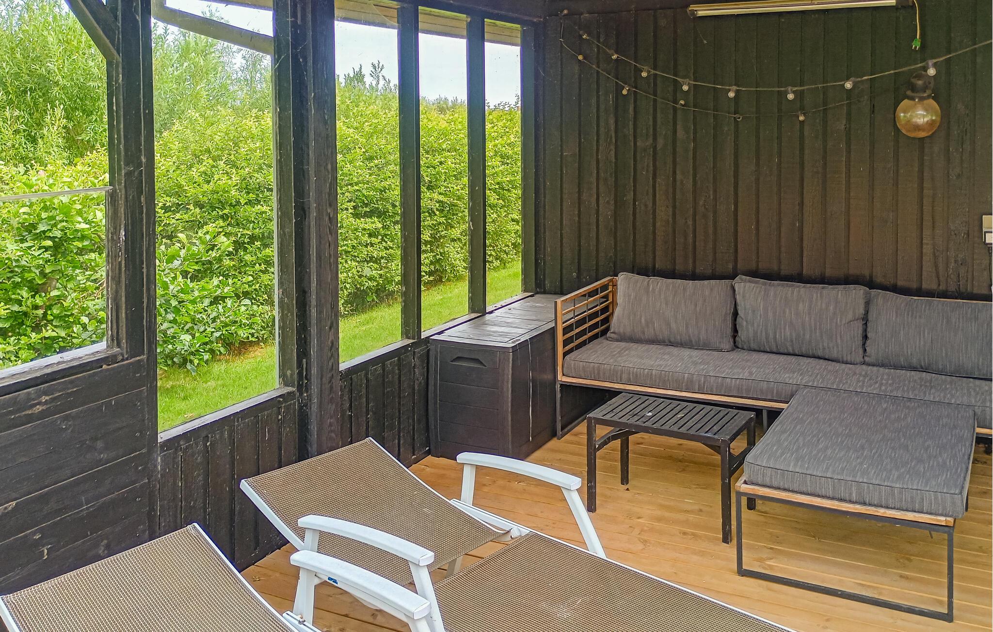 Den rummelige, overdækkede terrasse giver jer god mulighed for at nyde den friske luft uanset vejrliget. Læg jer til rette i hængekøjen, solbad på liggestolene eller nyd et måltid under åben himmel. Den velholdte have lægger op til en masse sjove aktiviteter og en pause i solen. De lune sommerdage rundes af med en velfortjent grillmiddag.