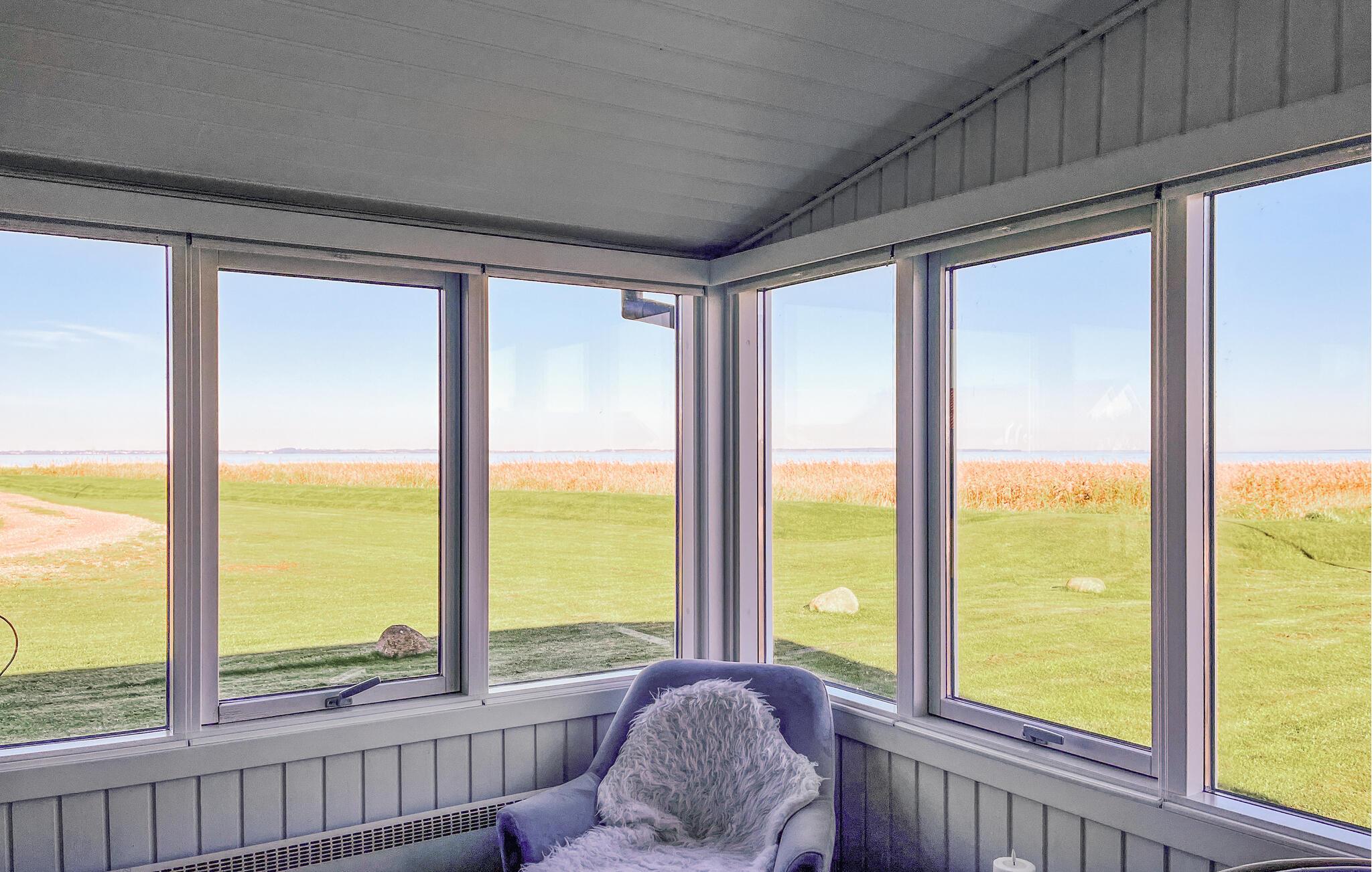 Hyggeligt feriehus med panoramaudsigt ved Handbjerg strand og fjorden, perfekt til afslapning og naturoplevelser.