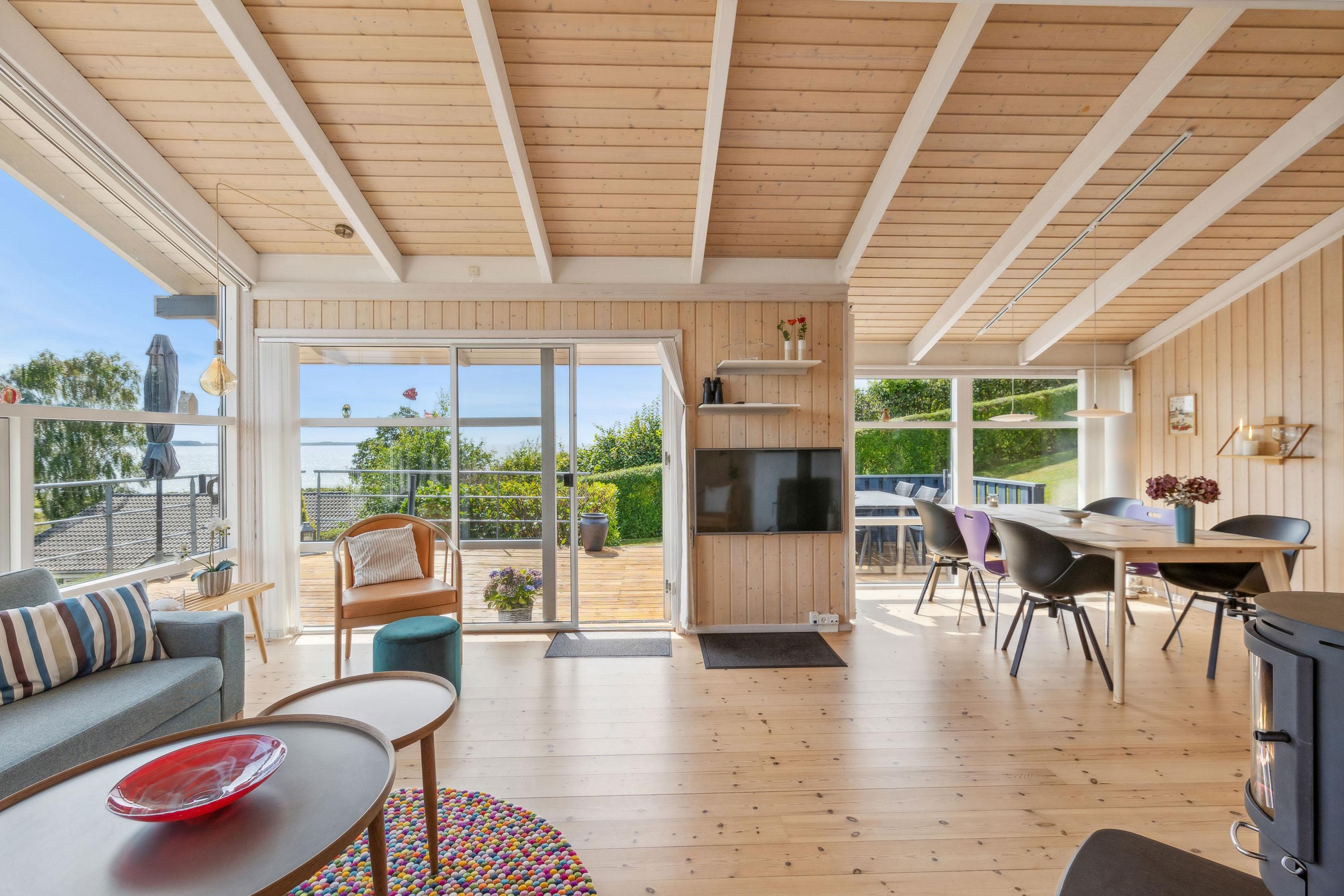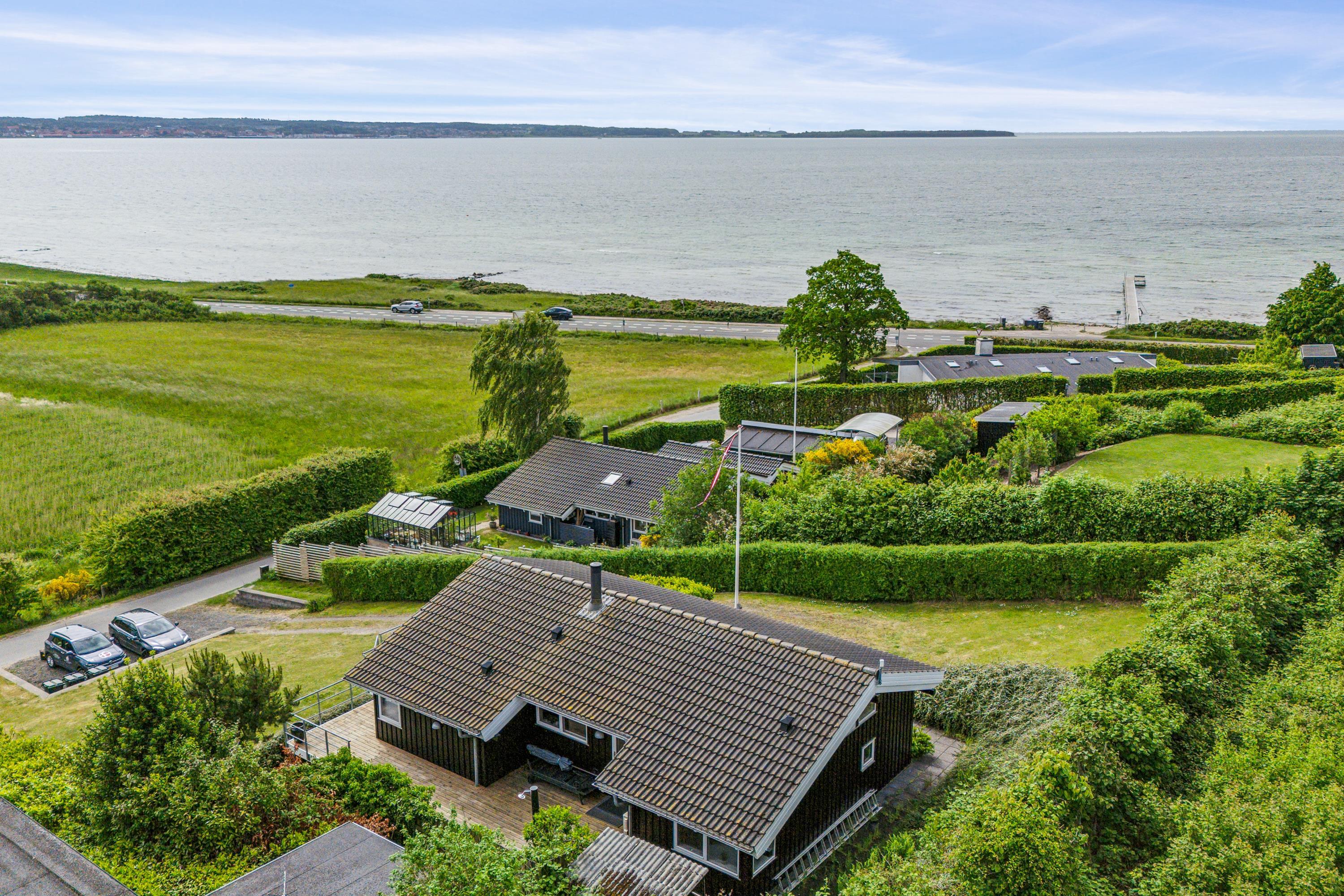 Højt beliggende og med den mest fantastiske udsigt over Ebeltoft Vig og Mols Bjerge, finder man dette yderst velholdte og velindrettede feriehus.Såvel fra grunden som fra huset har man den mest storslåede udsigt. Her finder man en flot og velindrettet stue med gode møbler, brændeovn og varmepumpe. Fra stuen er der udgang til den skønne terrasse med havemøbler. I forbindelse med stuen finder man det flotte og veludstyrede køkken med b.la. amerikansk køleskab og opvaskemaskine. Stort badeværelse med bruseniche, spa-bad og vaskemaskine samt adgang til sauna. Husets sengepladser fordeler sig i tre soveværelser; heraf to med dobbeltsenge samt et værelse med to enkeltsenge. Til de små feriegæster er der et puslebord samt en barnestol. TV foregår via chromecast.