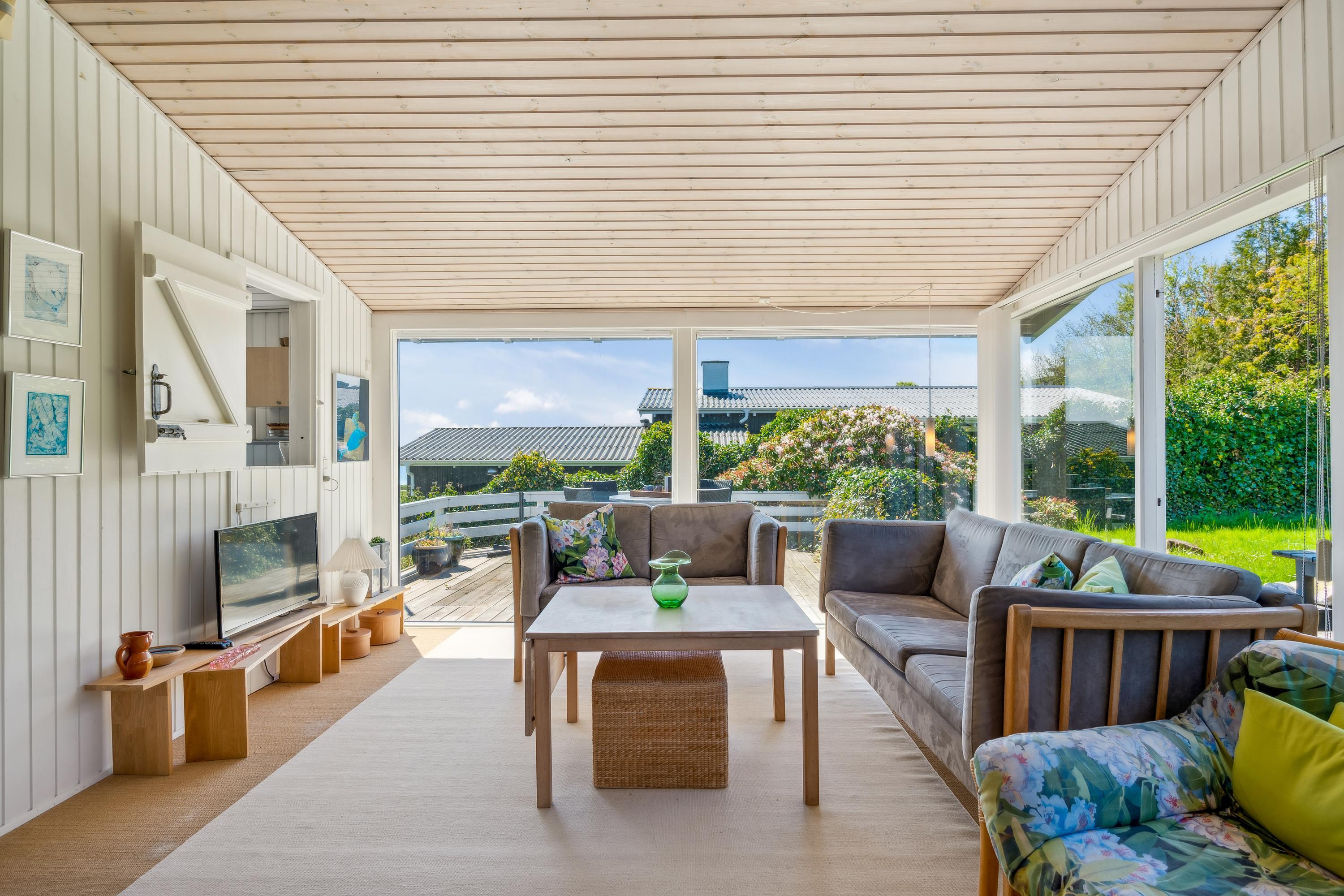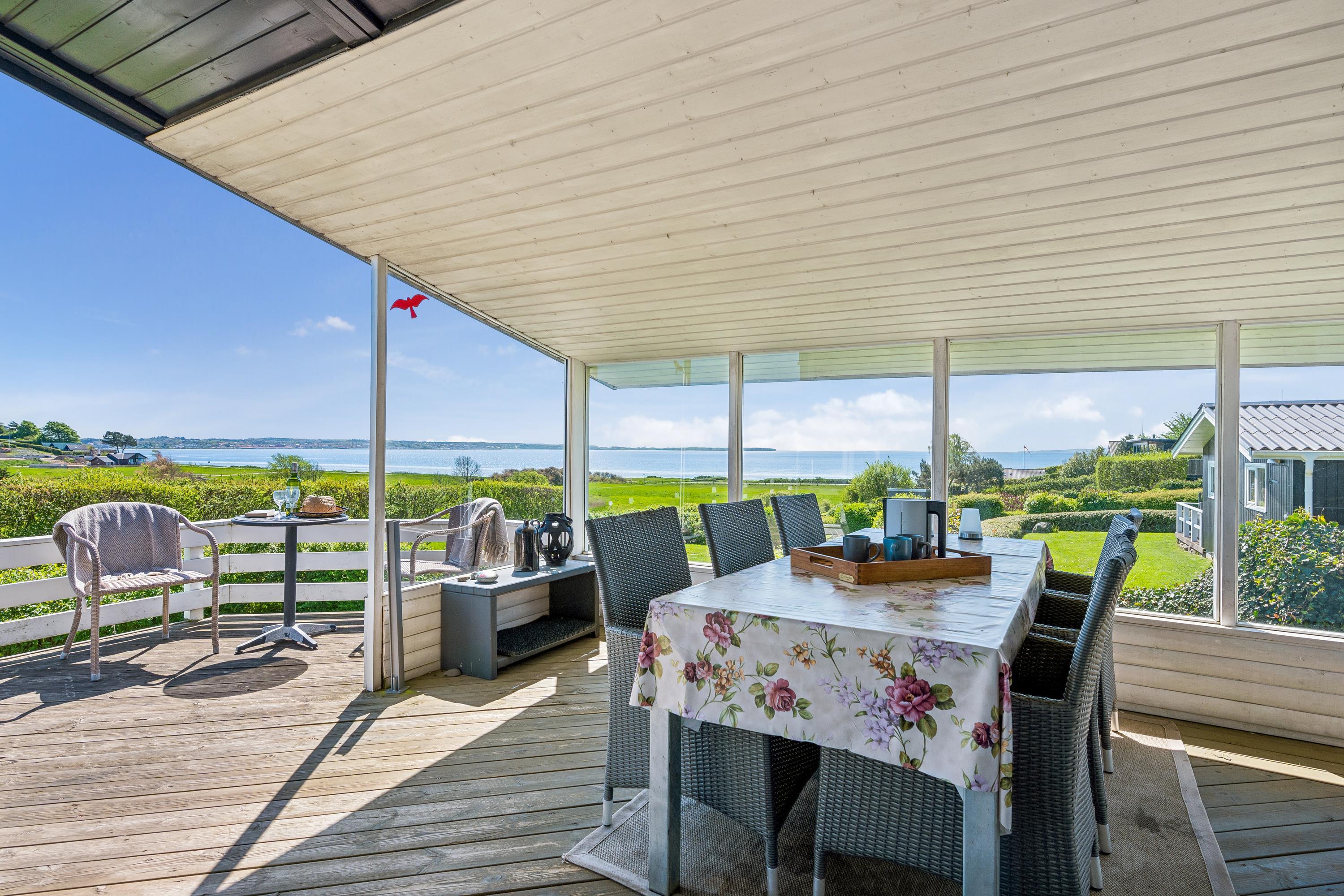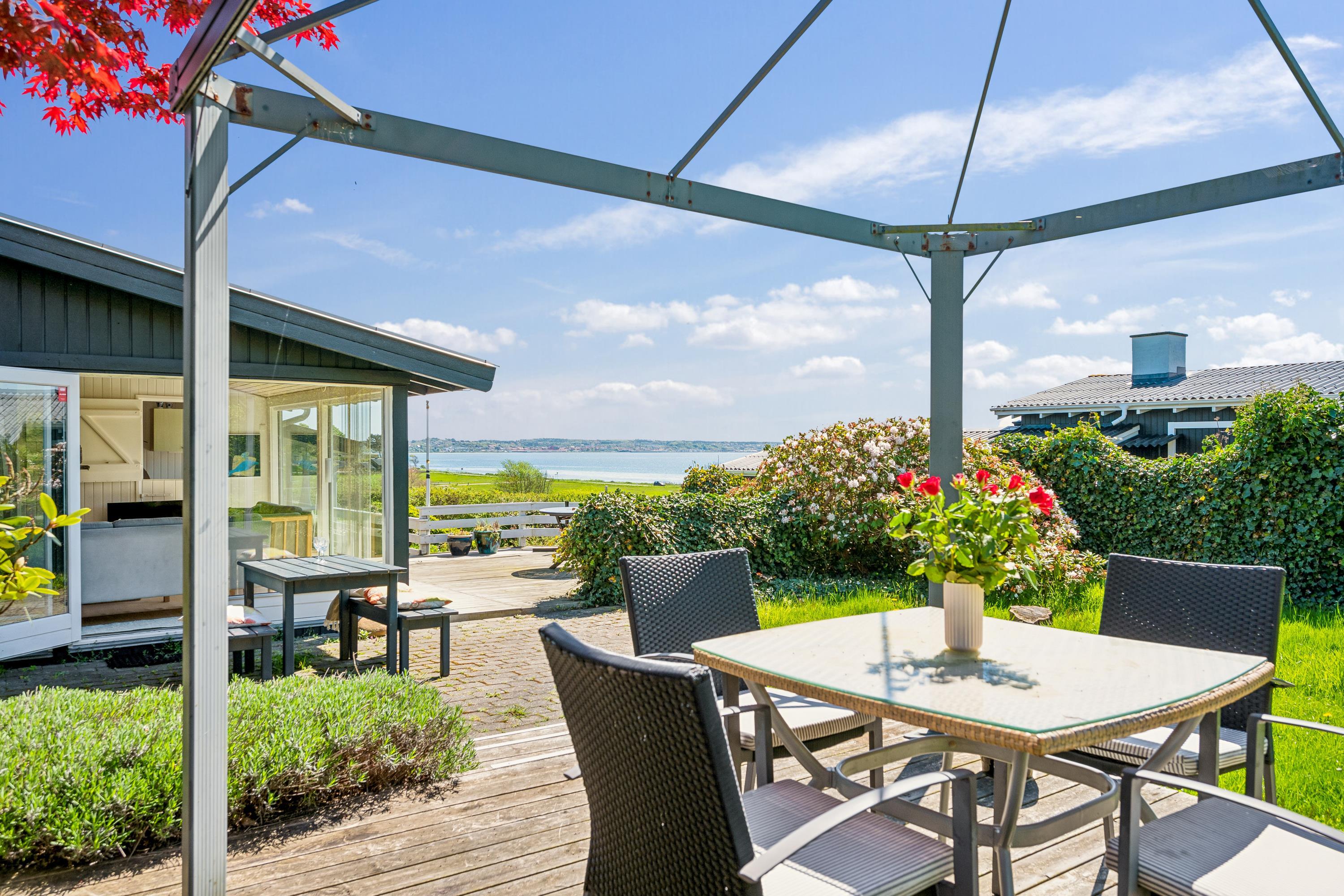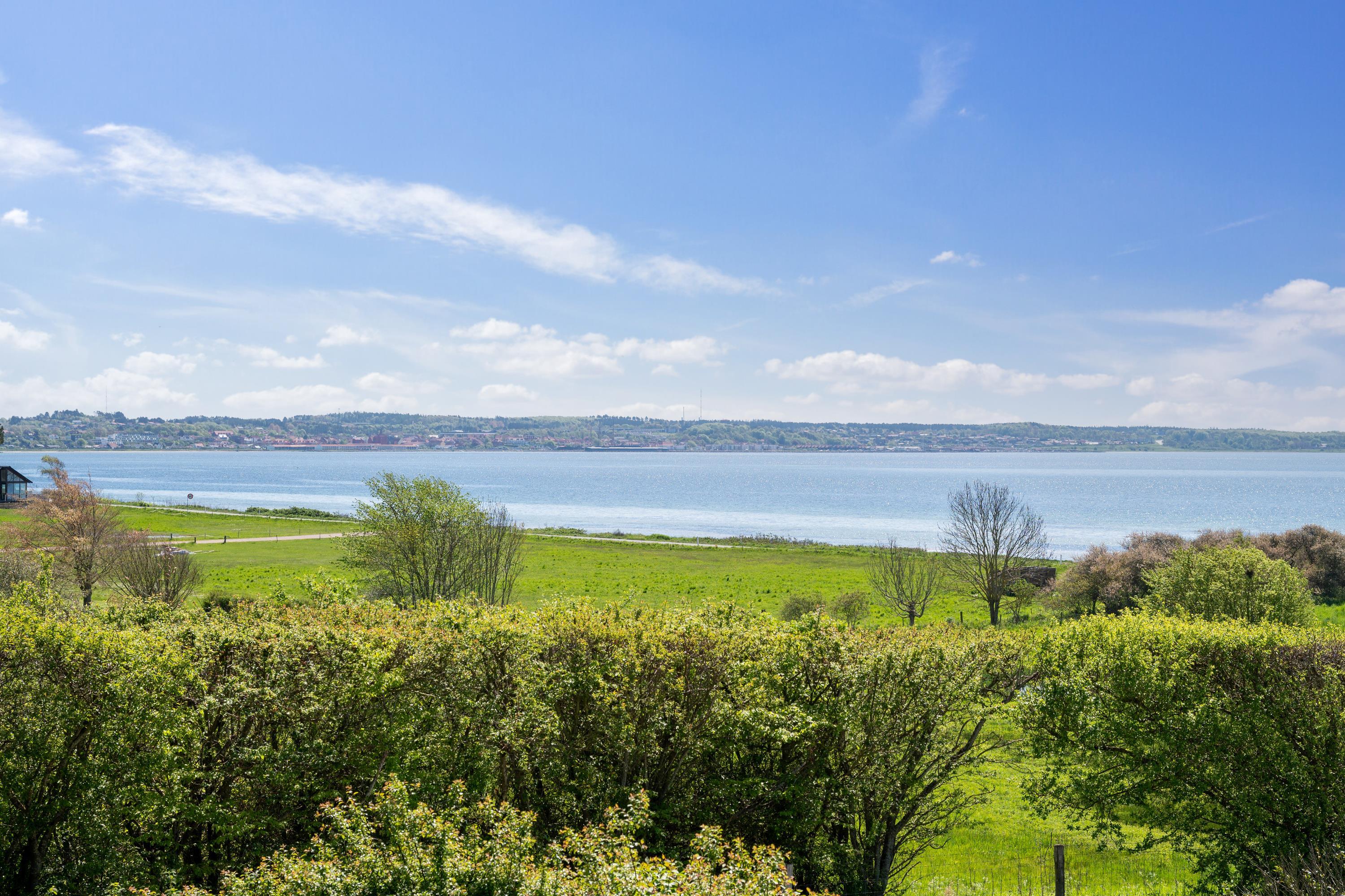 Nyd et højtbeliggende feriehus med fantastisk udsigt over vandet ved Handrup Strand og tæt på Mols Bjerge.