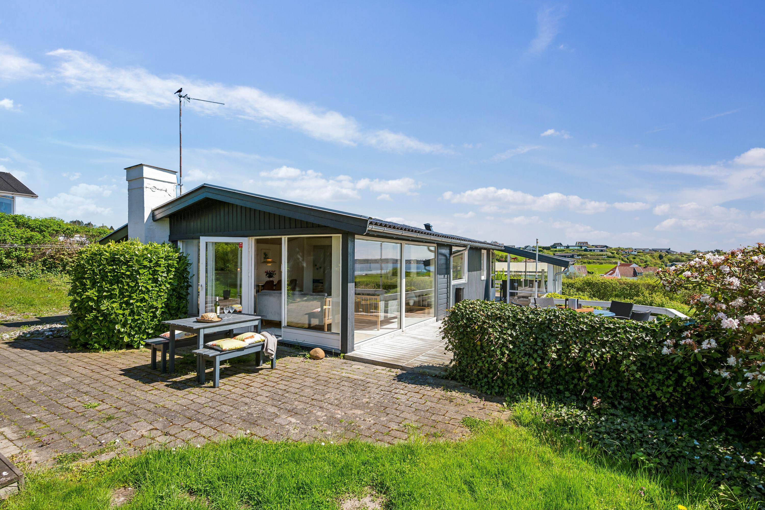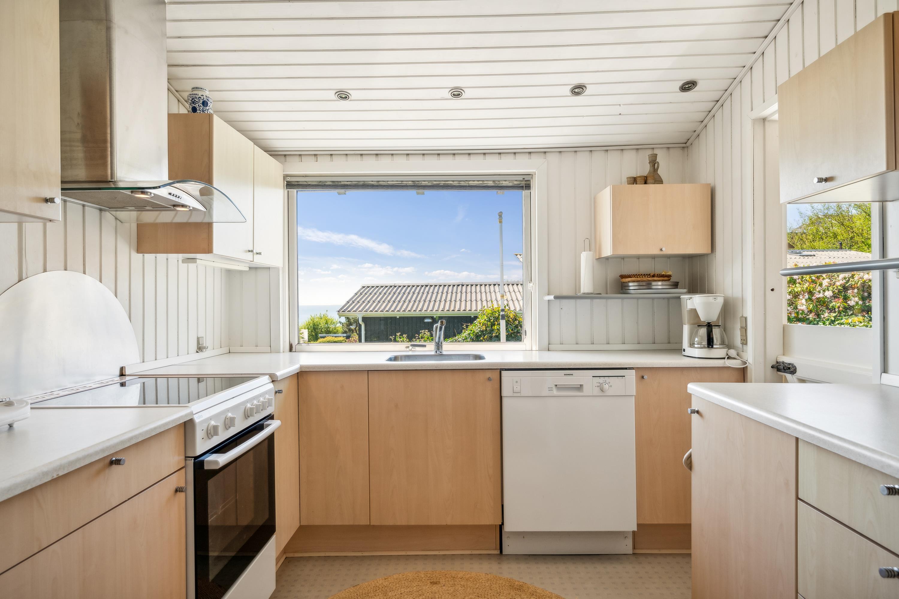 Med den mest fantastiske beliggenhed finder man dette skønne feriehus, som er højtbeliggende på en skrående grund. Såvel fra grunden som fra huset har man en storslået udsigt over vandet. Her finder man en skøn stue, hyggeligt møbleret med gode møbler, brændeovn og varmepumpe samt udgang til en af husets terrasser med havemøbler. Dejligt køkken med b.la. opvaskemaskine. Husets sovepladser finder man i tre gode værelser, heraf et værelse med en dobbeltseng, et værelse med en køjeseng og et værelse med to enkelt senge. To dejlige badeværelser, begge med bruseniche. Desuden er der et lille bryggers med vask og vaskemaskine. Hyggelig integreret havestue med spiseplads og hvorfra der er udgang til overdækket terrasse. Til de små feriegæster er der en høj barnestol, en barneseng og et babybadekar. Der chromecast samt stor Boxer tv pakke med tyske og nordiske kanaler. Ved huset er der flere dejlige terrassearealer med gode havemøbler og gasgrill.