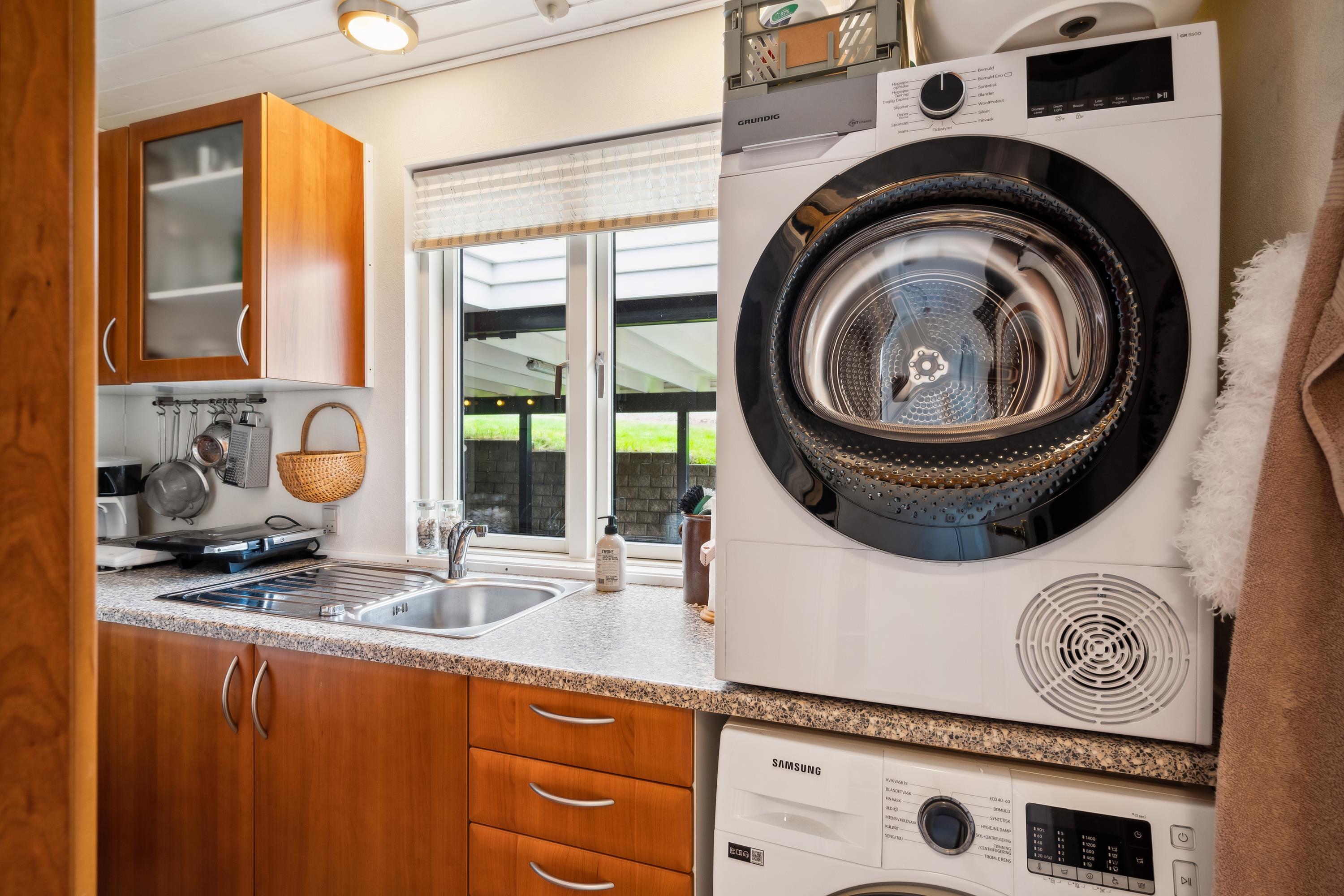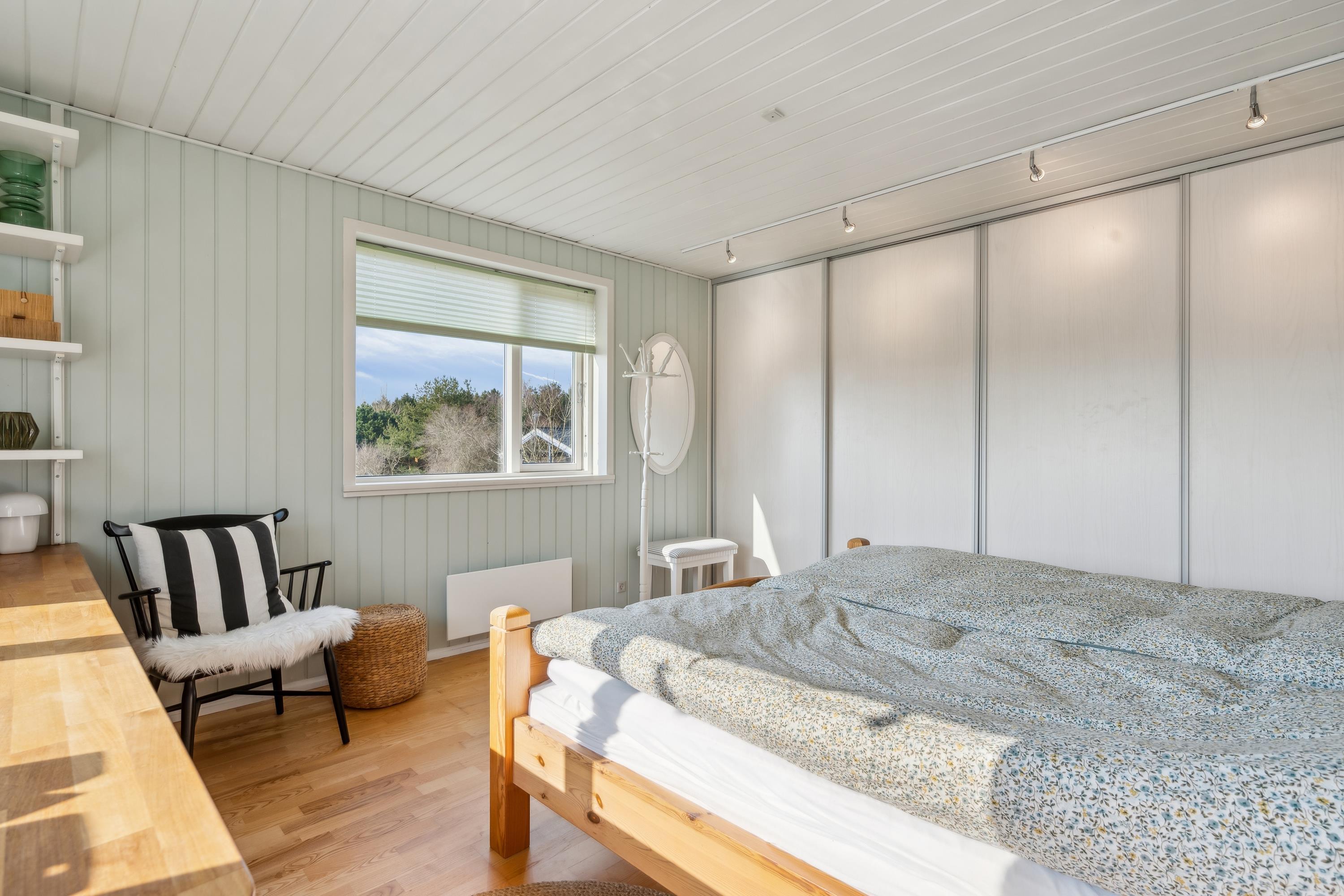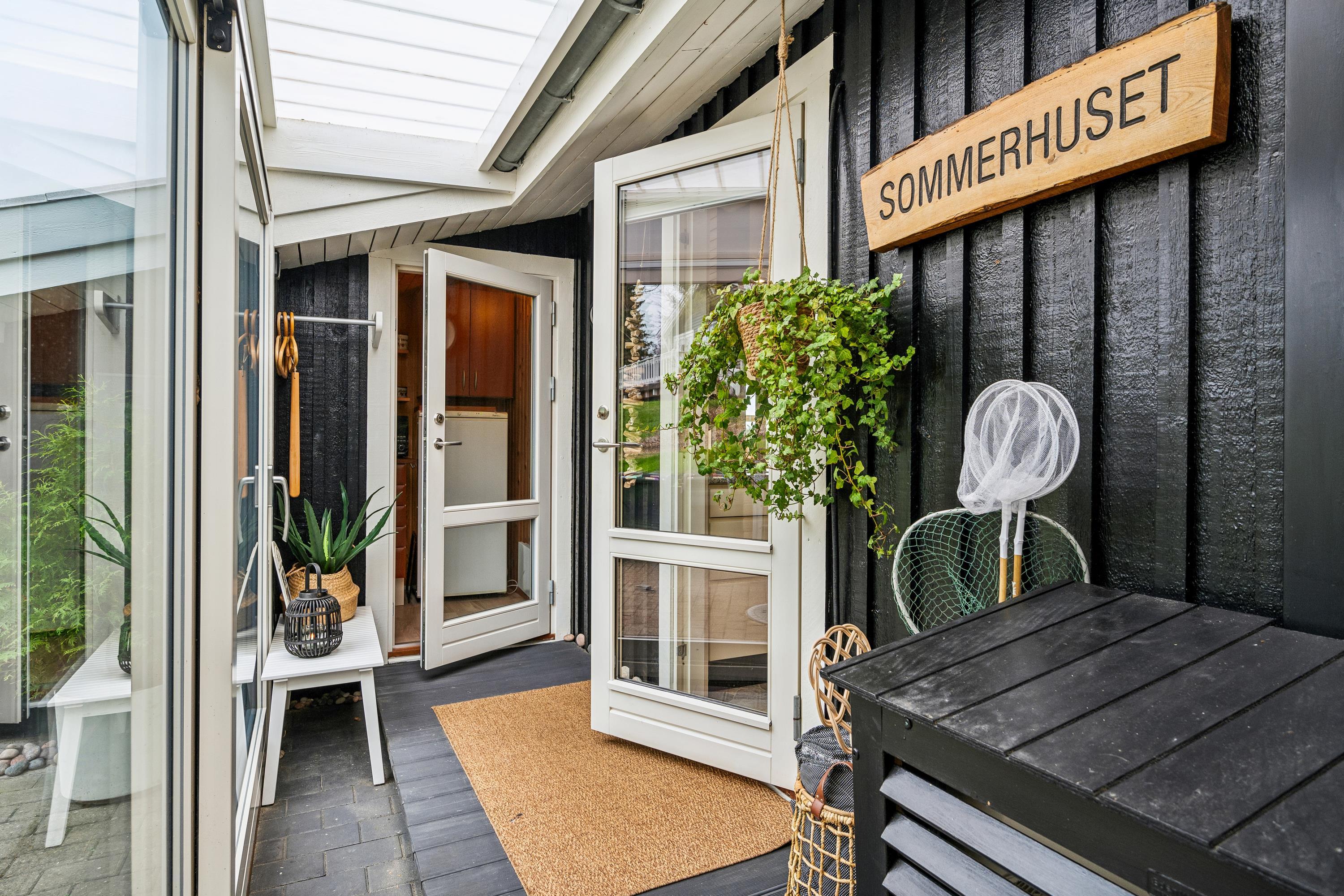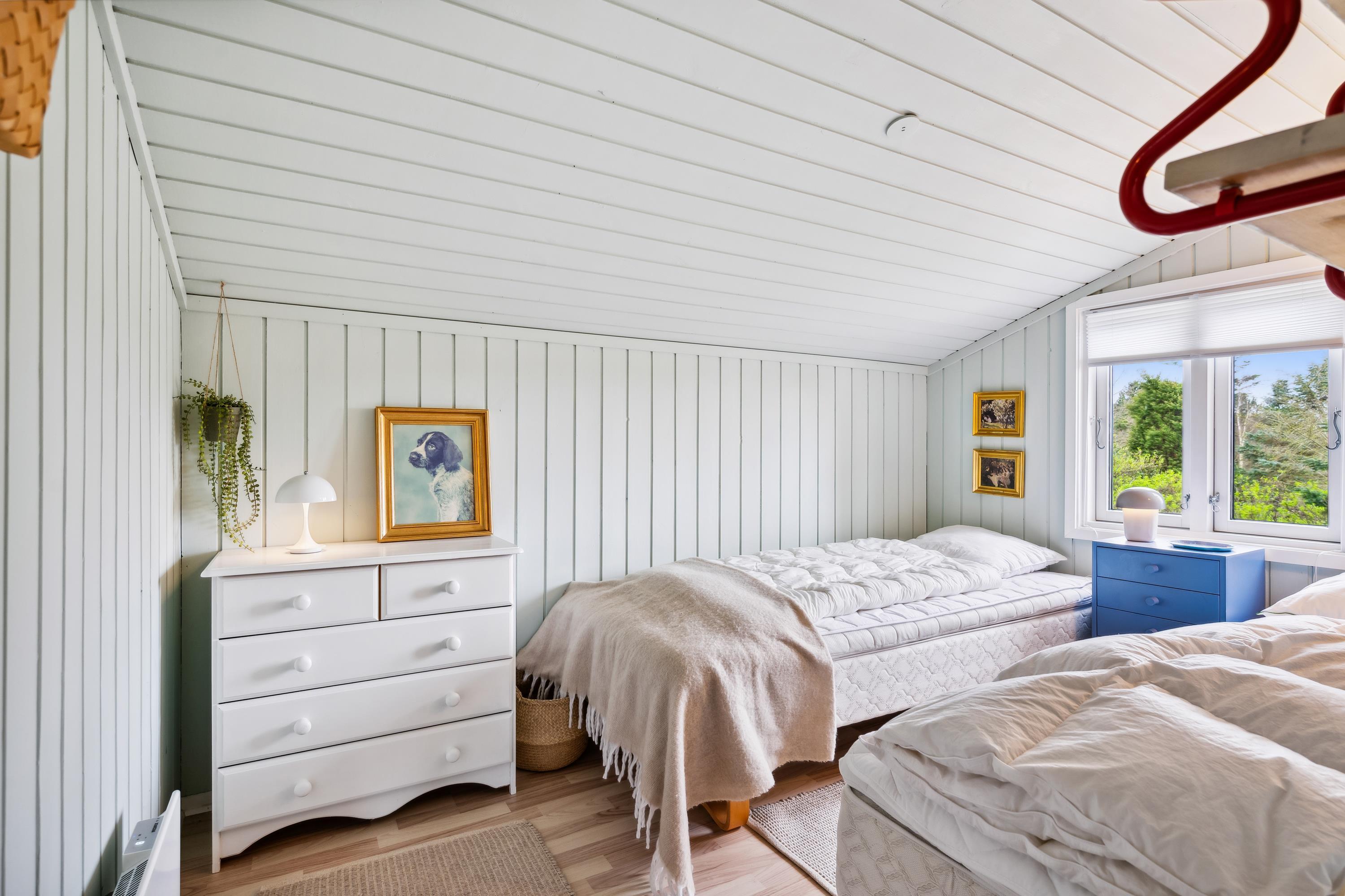 Til de små feriegæster er der babybadekar, høj stol, puslebord og barneseng til rådighed. Ved huset er der store terrassearealer med havemøbler og der findes også en udendørsbruser. Ved indgangspartiet er der en stor overdækket terrasse, hvor man kan trække om på en kølig aften og samtidig være ude. Udendørs er der også tænkt på de små feriegæster med en sandkasse. Huset er beliggende på en skrånende grund med stor græsplæne, velegnet til leg og udendørs hygge. Et "rigtigt" feriehus i hyggelige omgivelser og på en meget børnevenlig vej.
