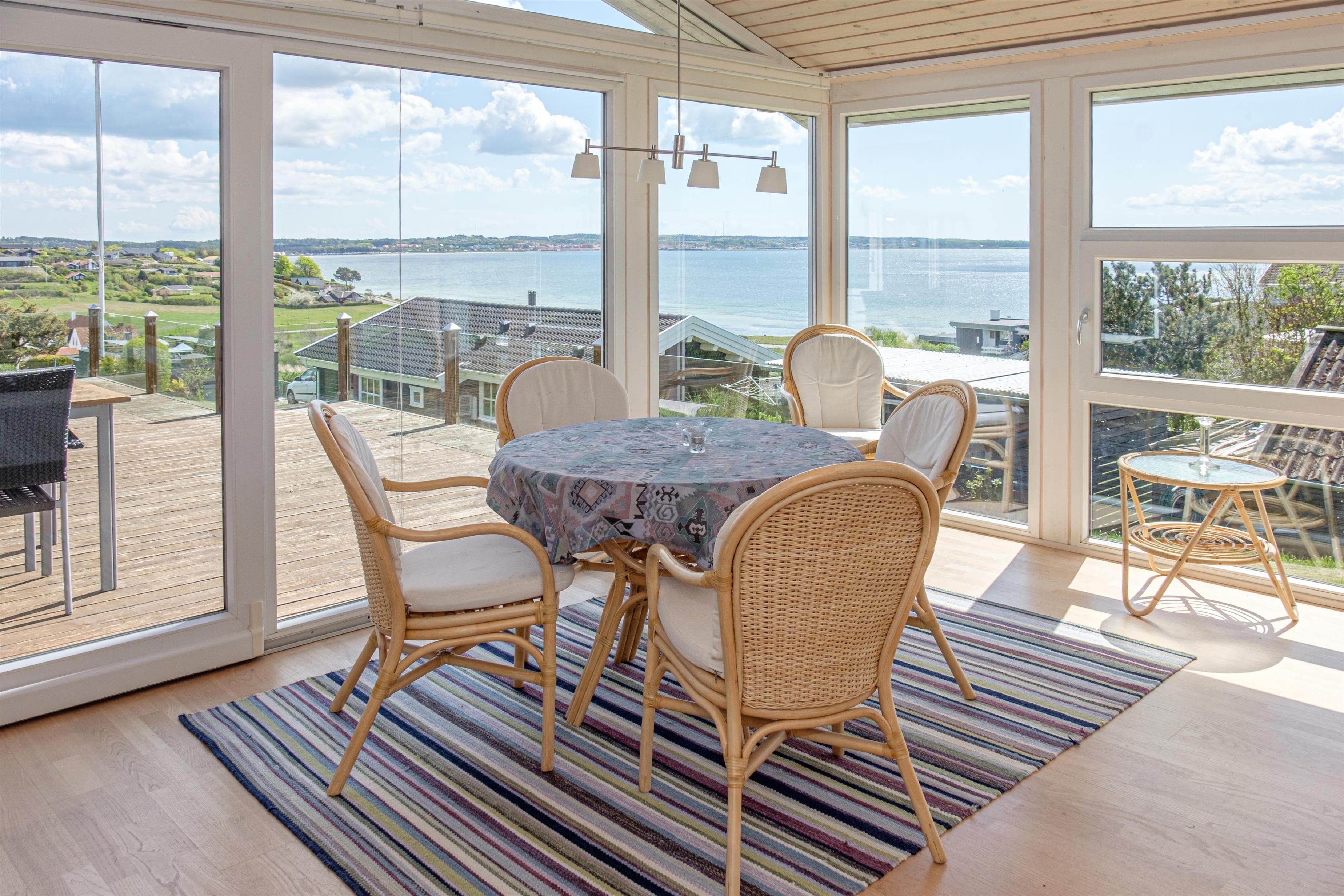 Højtbeliggende sommerhus med enestående panoramaudsigt over Ebeltoft Vig. Fra stort set alle rum i huset kan udsigten til Samsø, Tunø og Helgenæs nydes. Også fra terrassen, der strækker sig langs hele sydsiden af huset, kan havudsigten og solen nydes hele dagen. Huset er indrettet med stor vinkelstue, der har vinduespartier mod vandet. Det lyse og velindrettede køkken, der ligger i åben forbindelse med spisepladsen i stuen, er udstyret med opvaskemaskine og mikrobølgeovn. En mellemgang giver adgang til tre gode soveværelser: 2 med dobbeltseng og et med enkeltsenge. I forbindelse med soveværelserne er der et dejligt, stort, hvidt badeværelse fra 2011 med gulvvarme, brusebad, bidet og vaskemaskine. Der er fin badestrand langs hele vigen fra Ebeltoft til Femmøller Strand. Stranden er børnevenlig, og hvert forår bliver der sat en god badebro op. Langs hele kysten kan man benytte sig af den anlagte cykelsti. Cykelstien går til den charmerende handelsby Ebeltoft, der har masser af indkøbsmuligheder i de brostensbelagte gader. Eller man kan vælge en tur til Mols Bjerge Nationalpark, hvor mange fantastiske naturoplevelser venter. Velkommen til mange, dejlige fridage ved Ebeltoft Vig.