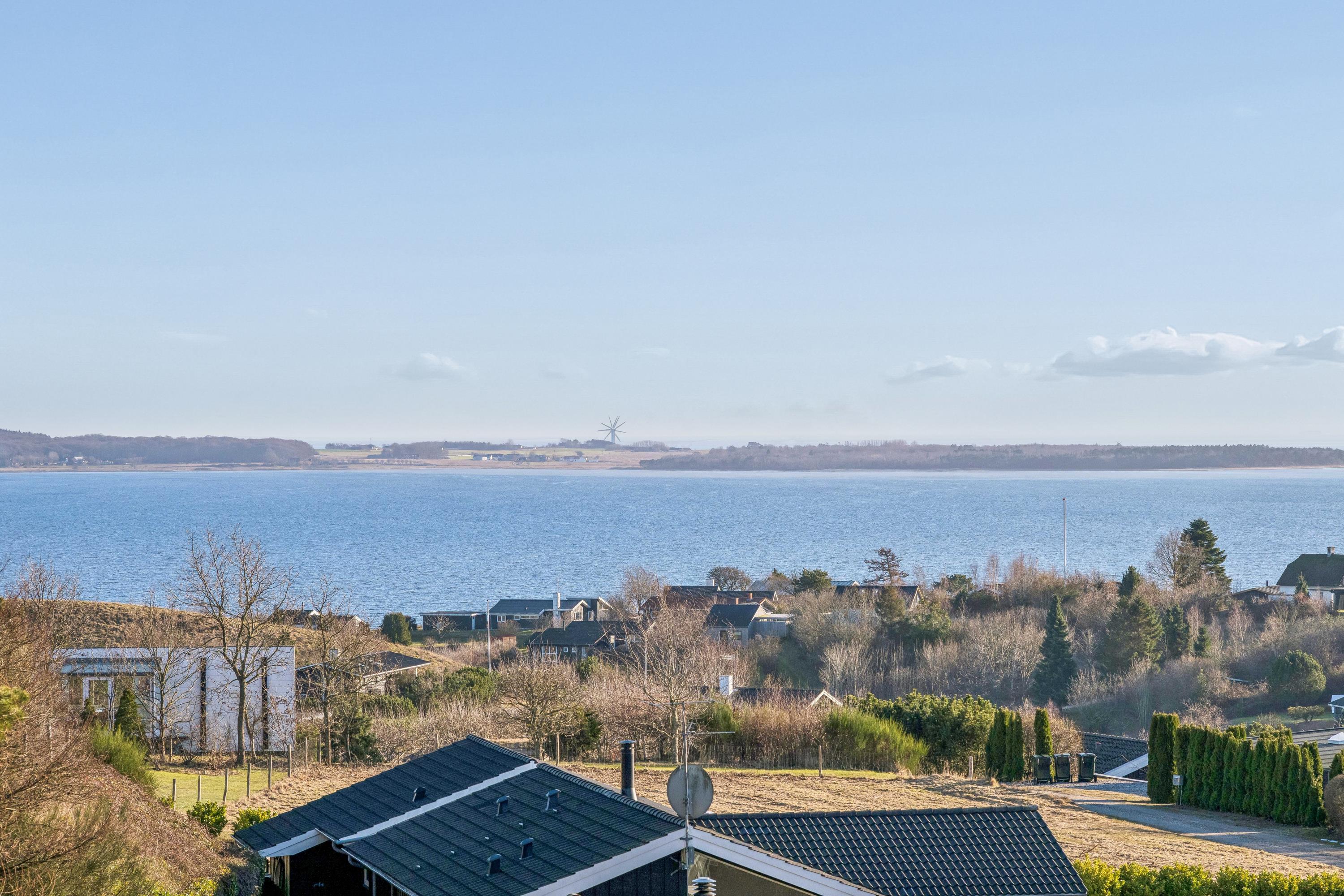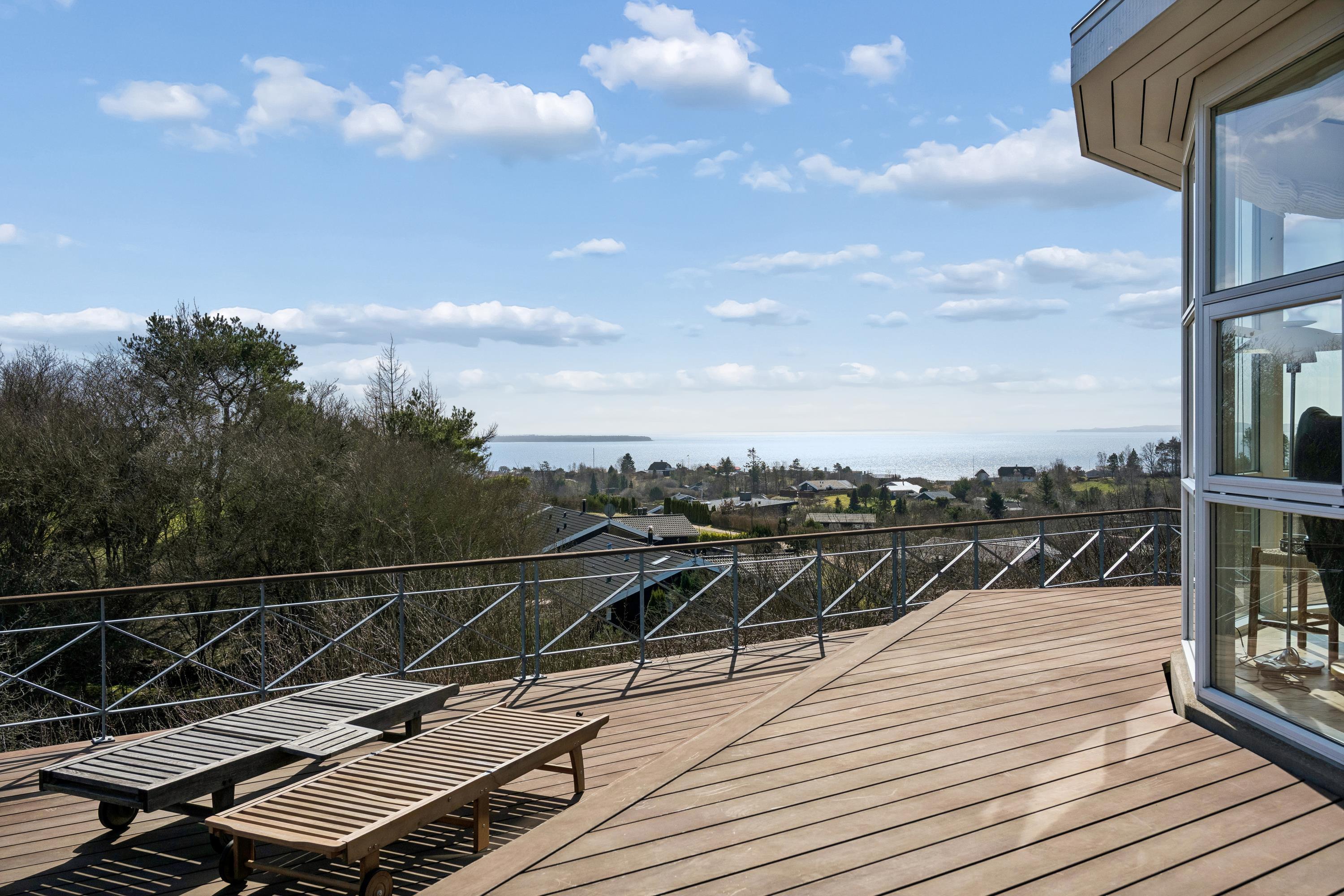 Blot 10 minutters kørsel fra Ebeltoft finder man dette hyggelige feriehus med fantastisk udsigt over Ebeltoft Vig. Huset ligger på en skrående grund og er bygget i forskudt plan, hvilket giver en åben og rummelig indretning.