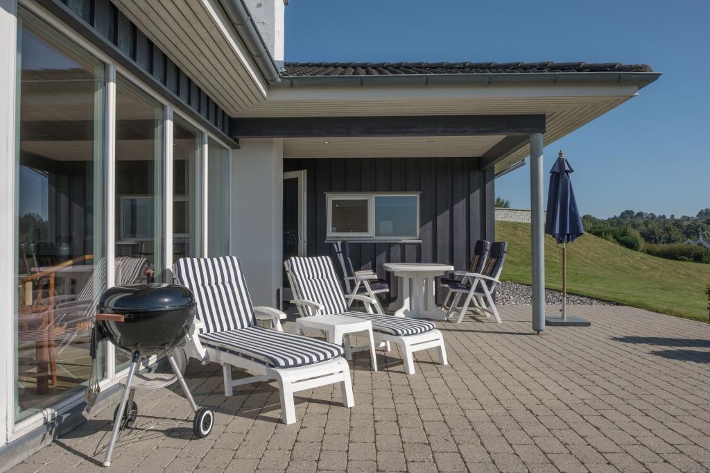 Med en enestående panoramaudsigt over Ebeltoft Vig til Samsø ligger dette lækre sommerhus på en kuperet grund med lav bevoksning. Huset er omgivet af åbne og overdækkede terrasser med havemøbler og grill. Smagfuld indretning med fuld havudsigt fra stuen samt brændeovn, Boxer-TV, DVD og internetforbindelse. Dejligt køkken med keramisk komfur, køle-/fryseskab, mikrobølgeovn og opvaskemaskine. Dejligt badeværelse med bruseniche og gulvvarme samt badekar med bobler og sauna. Gæstebad med bruseniche, vaskemaskine og tørretumbler. Husets sovepladser fordeler sig på 4 soveværelser: 3 med dobbeltseng og 1 med 2 enkeltsenge. Huset ligger ca. 250 meter fra Handrup Strand, der er kendetegnet som en børnevenlig strand med lavt vand. Bugten er desuden velegnet til wind- og kitesurfing.