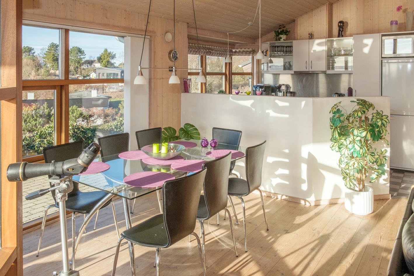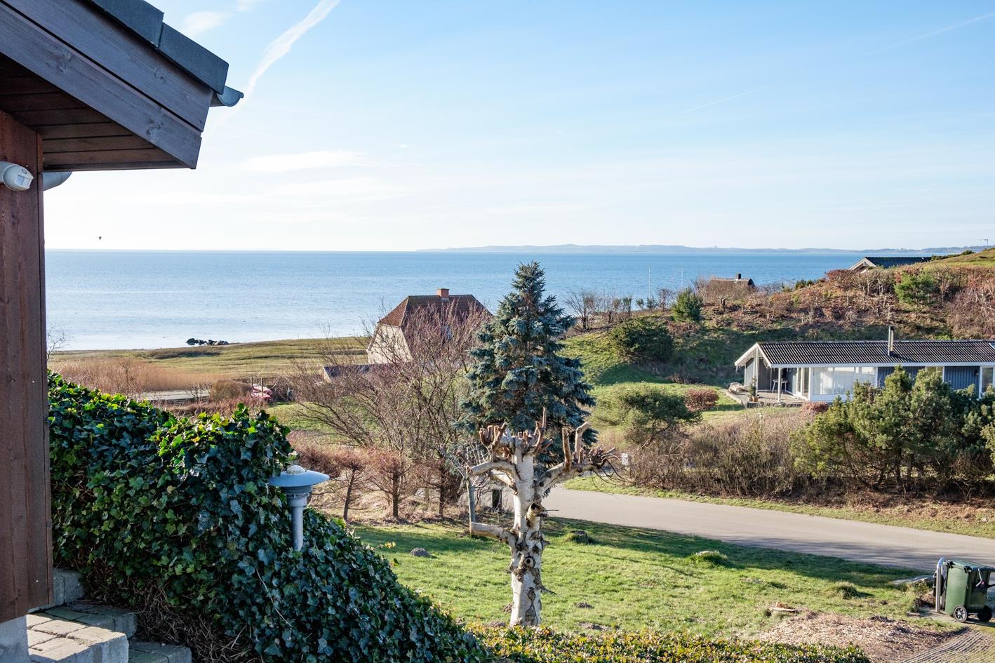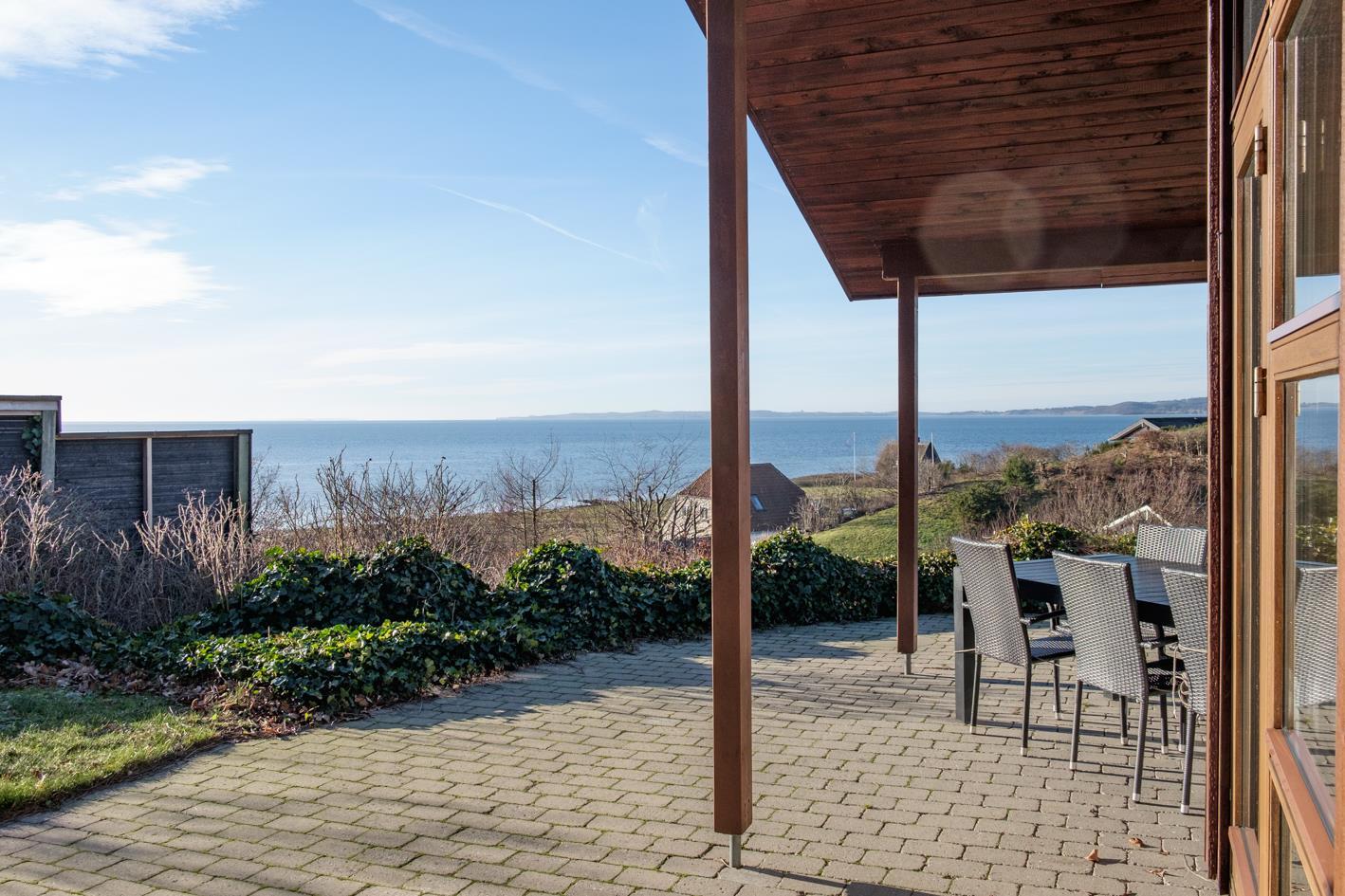 Med en enestående panoramaudsigt over Ebeltoft Vig til Helgenæs og Samsø ligger dette lækre sommerhus på en kuperet grund med lav bevoksning. Huset er omgivet af åbne og overdækkede terrasser med havemøbler og grill. Smagfuld indretning med fuld havudsigt fra stuen samt brændeovn, TV , stereoanlæg med CD og DVD. Dejligt køkken med keramisk komfur, køleskab med lille fryser, mikrobølgeovn/kombiovn og opvaskemaskine. Dejligt badeværelse med bruseniche og gulvvarme samt spa, sauna og vaskemaskine. Gæstetoilet. Husets sovepladser fordeler sig på 3 soveværelser: 2 med dobbeltseng og 1 med 2 køjesenge. Hems. Til de små feriegæster findes barneseng, barnestol og sandkasse.