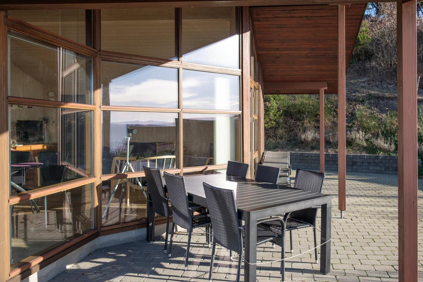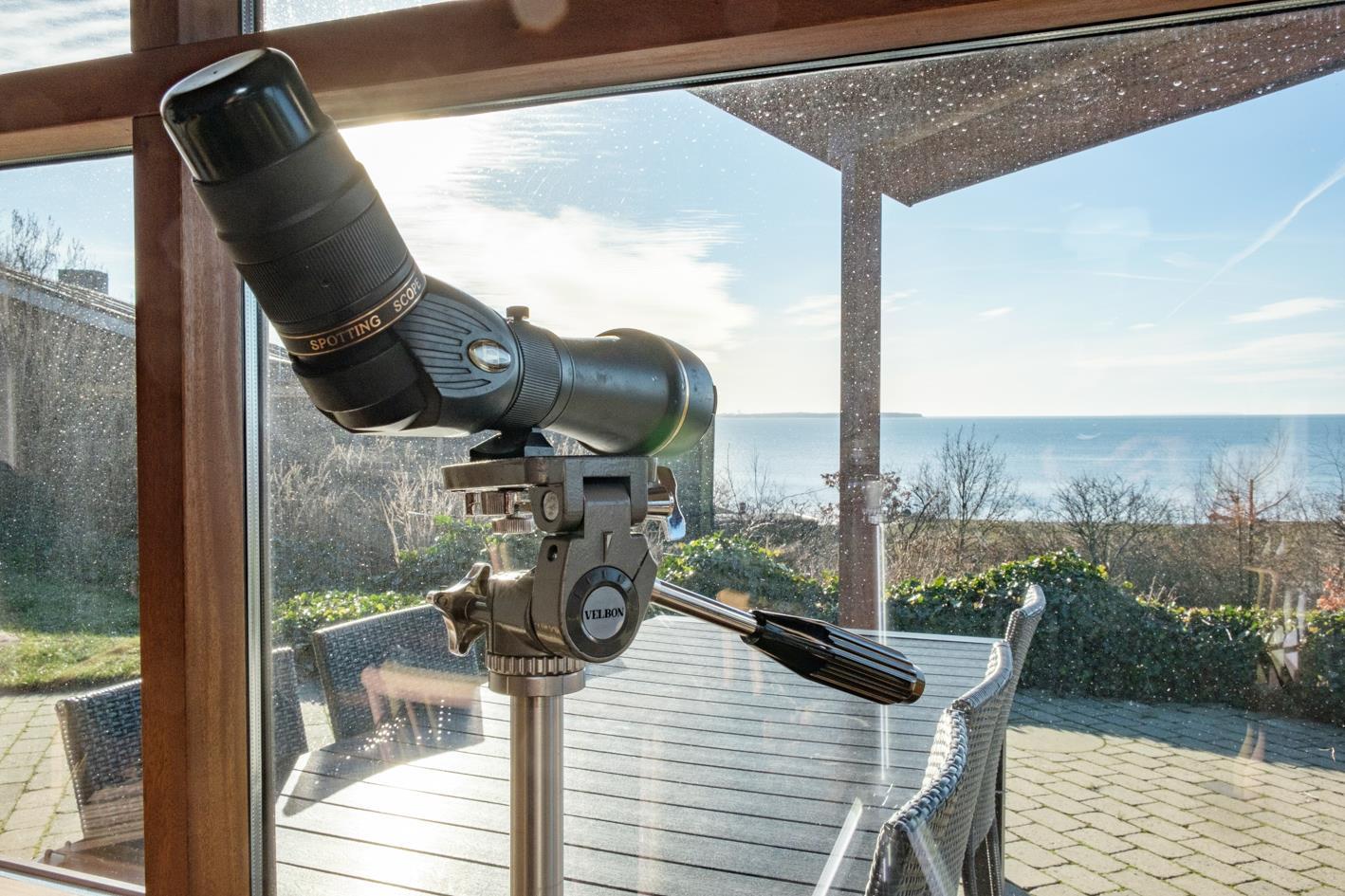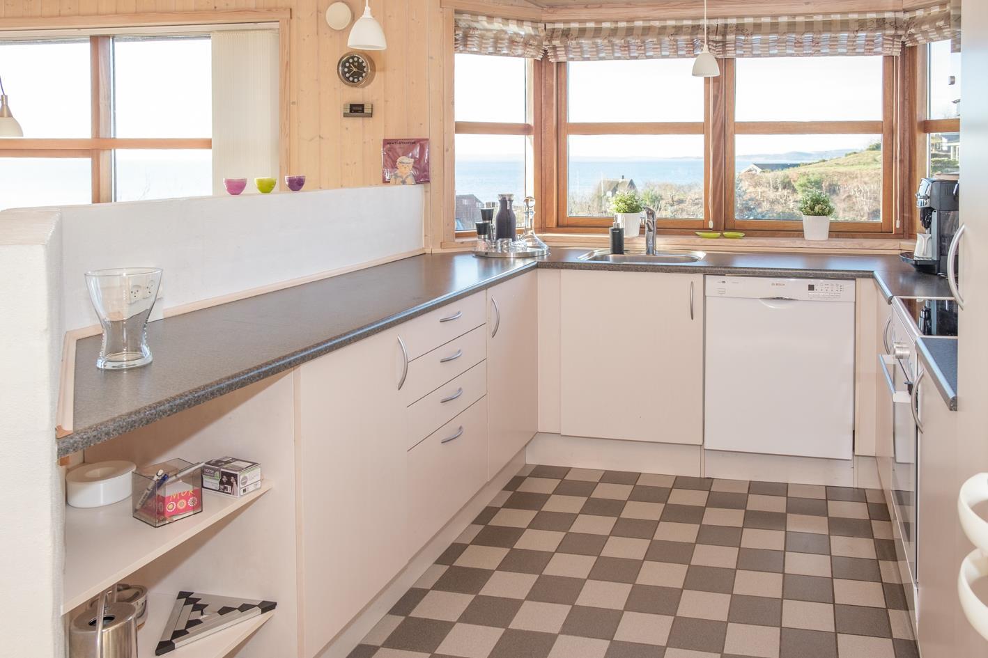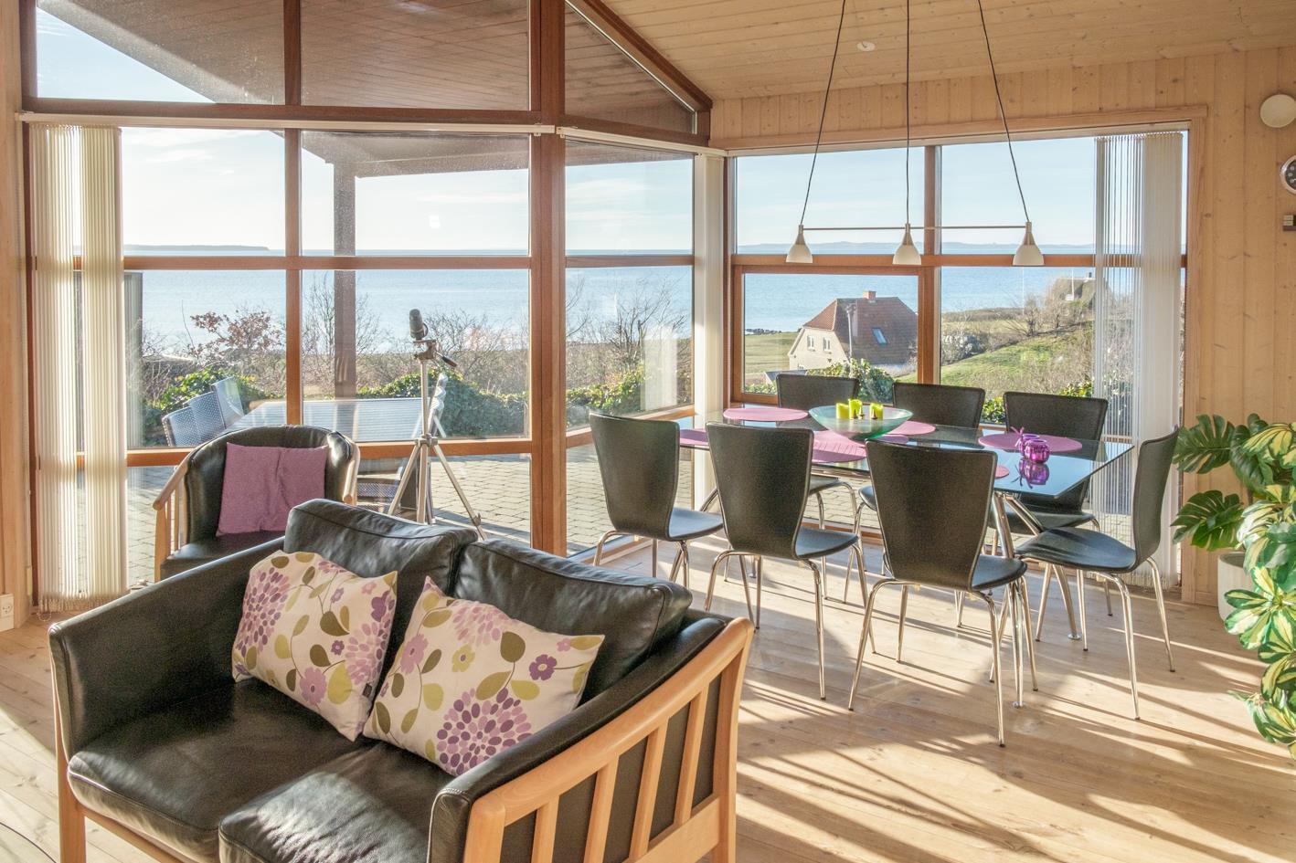 Med en enestående panoramaudsigt over Ebeltoft Vig til Helgenæs og Samsø ligger dette lækre sommerhus på en kuperet grund med lav bevoksning. Huset er omgivet af åbne og overdækkede terrasser med havemøbler og grill. Smagfuld indretning med fuld havudsigt fra stuen samt brændeovn, TV , stereoanlæg med CD og DVD. Dejligt køkken med keramisk komfur, køleskab med lille fryser, mikrobølgeovn/kombiovn og opvaskemaskine. Dejligt badeværelse med bruseniche og gulvvarme samt spa, sauna og vaskemaskine. Gæstetoilet. Husets sovepladser fordeler sig på 3 soveværelser: 2 med dobbeltseng og 1 med 2 køjesenge. Hems. Til de små feriegæster findes barneseng, barnestol og sandkasse.