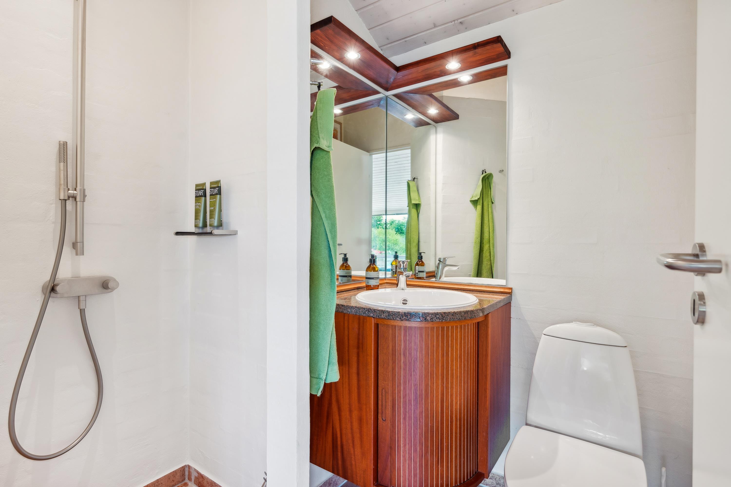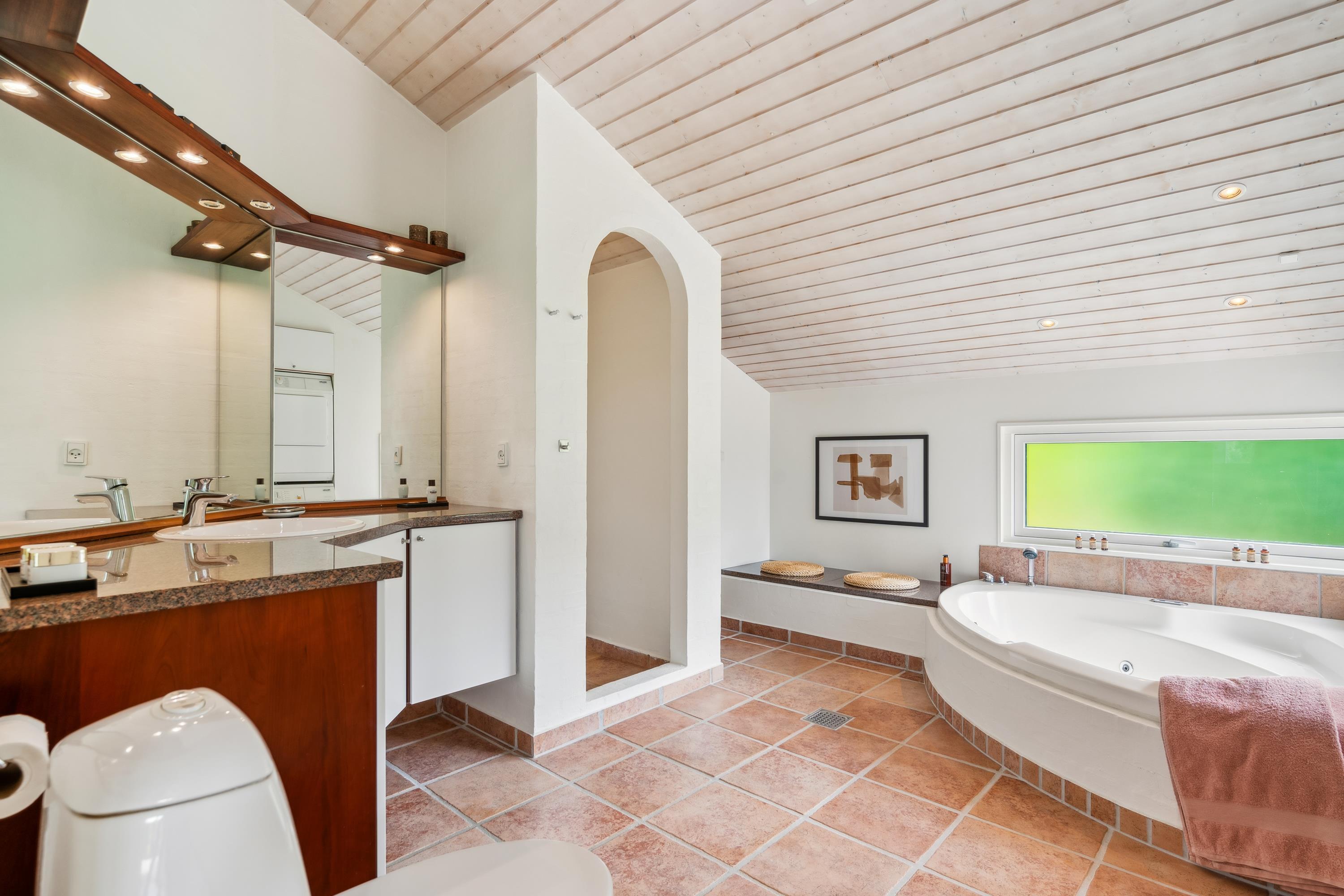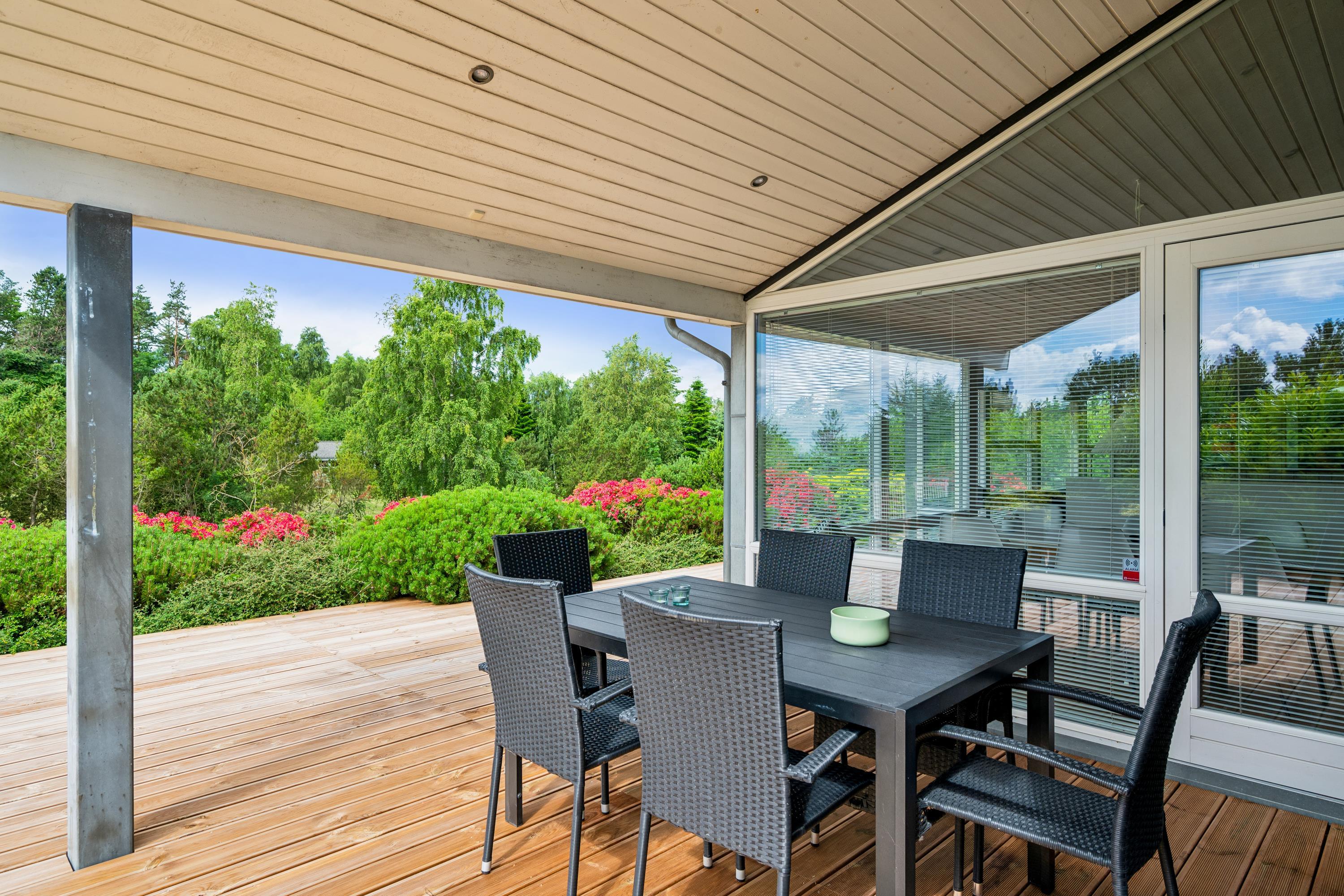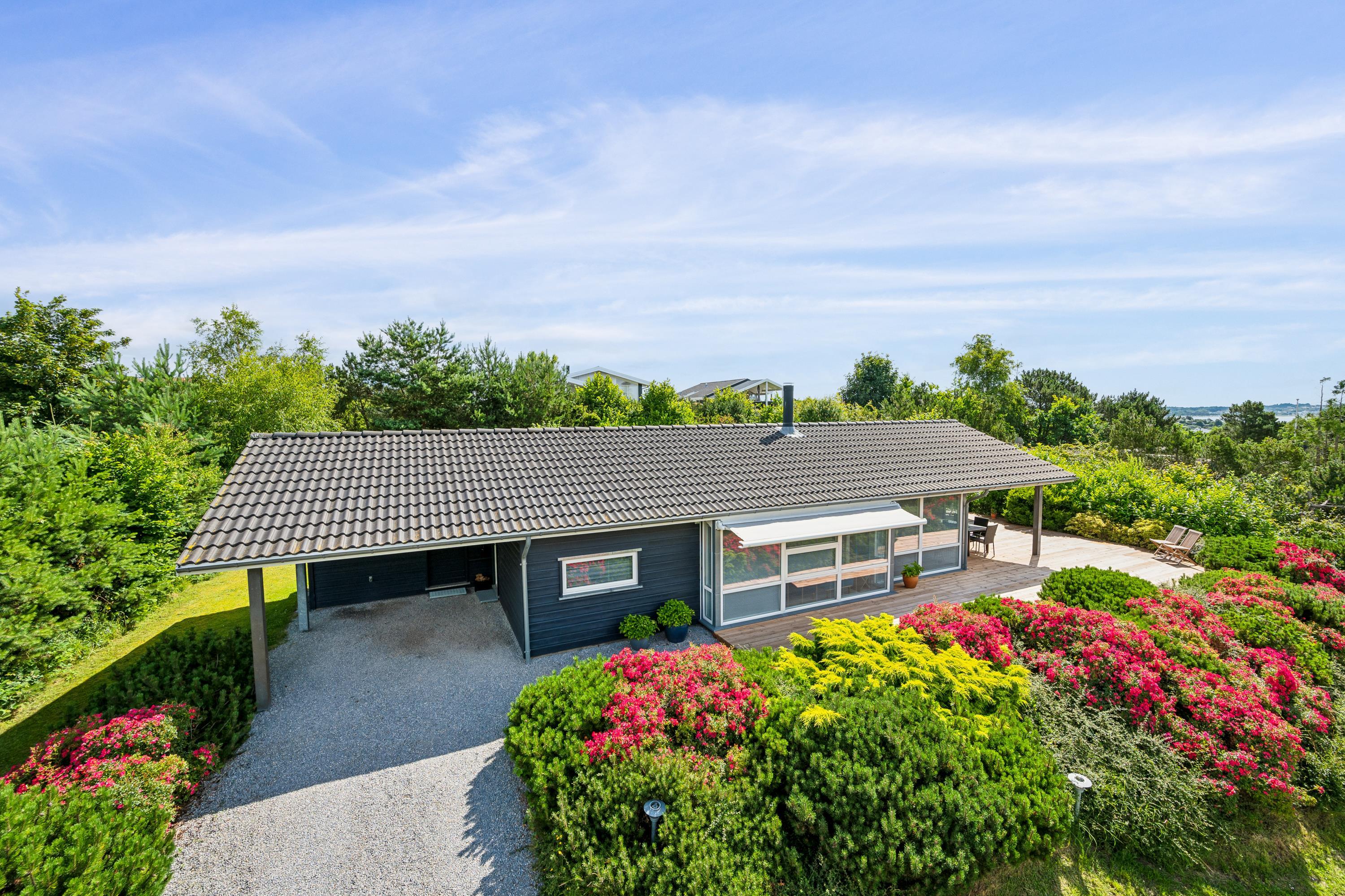 Højt beliggende med en fantastisk smuk udsigt over området, finder man dette flotte og velholdte feriehus. Her finder man en lys og hyggelig stue, smagfuld indrettet med gode møbler, varmepumpe og brændeovn, samt en skøn spiseafdeling med udgang til overdækket terrasse. I forbindelse med spiseafdelingen finder man det flotte køkken med b.la. opvaskemaskine og køkkenø. Stort flot badeværelse med spa-bad, bruseniche og gulvvarme, samt adgang til både vaskemaskine og tørretumbler. Der findes endnu et badeværelse med bruseniche og gulvvarme. Husets sovepladser fordeler sig i tre flotte værelser med dobbeltsenge. Der er masser af terrasseareal, havemøbler, liggestole og grill. TV foregår via chromecast og der kan lejes en box med tyske kanaler på vores kontor (hvis lager haves). Der er en Wii spillekonsol til rådighed. Til de små feriegæster er der en høj stol og en barneseng. Er man flere familier afsted så udlejer vi også nabohuset 15828