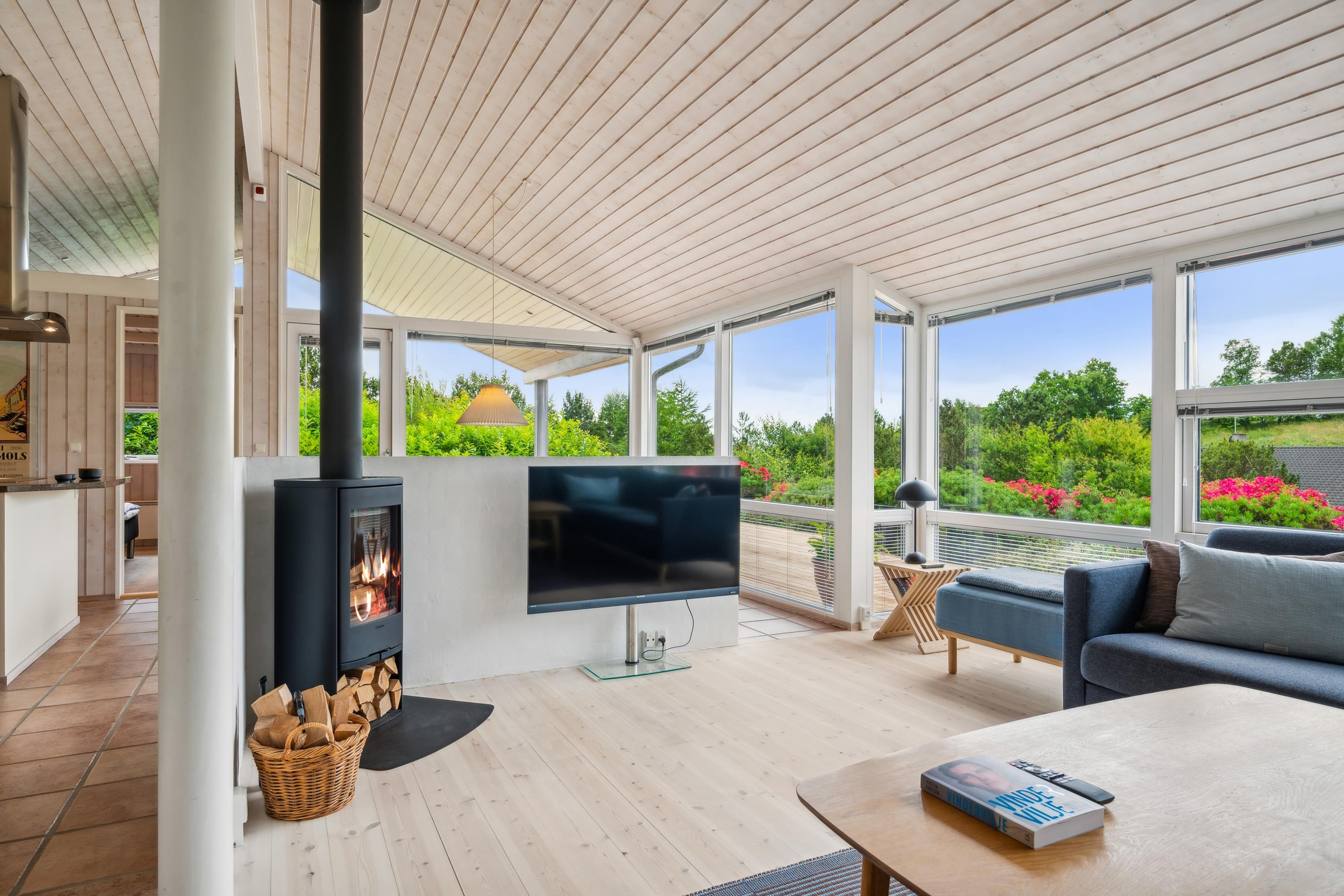 Flot feriehus med smuk udsigt, spa, brændeovn og tæt på Handrup Strand og Mols Bjerge.