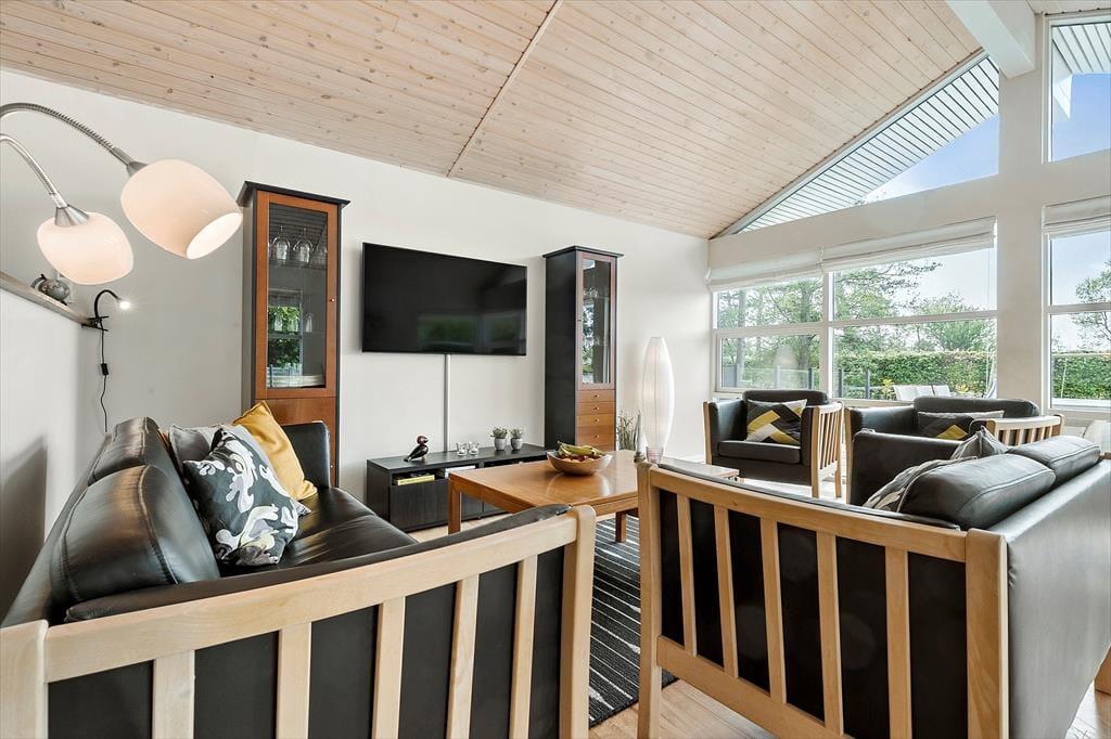 Med en skøn udsigt over Ebeltoft Vig og kun 100 meter fra en dejlig sandstrand, byder dette velholdte feriehus på alt, hvad hjertet begærer for en afslappende ferie. Huset rummer et flot, åbent køkken med moderne faciliteter som opvaskemaskine og en hyggelig spiseafdeling ved brændeovnen, der sørger for ekstra hygge på de kølige aftener. Der er to badeværelser - ét med spa og sauna til den ultimative afslapning, og det andet med en praktisk bruseniche. Med tre komfortable værelser, alle indrettet med dobbeltsenge, er der plads til hele familien. TV’et har både skandinaviske og tyske kanaler, så alle kan nyde deres favoritprogrammer.