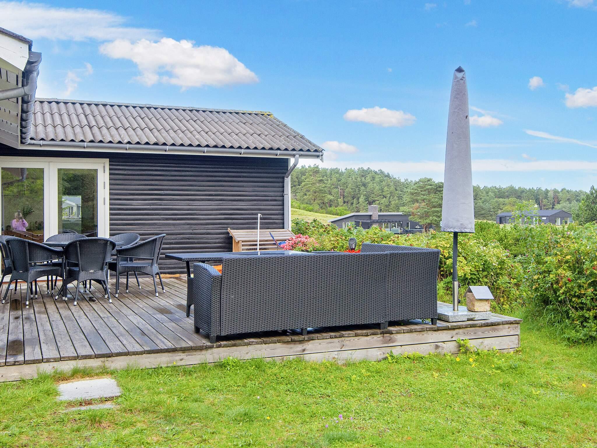 Højtbeliggende og ugenert sommerhus med en rigtig dejlig beliggenhed ved Handrup Bakker. Der er køkken i forbindelse med stuen, så her kan alle hygge sig, lige meget om der skal laves mad eller spilles spil. Sommerhuset har tre soveværelser, så der er god plads til familier med børn. Der er en overdækket og delvist aflukket terrasse, hvor alle kan sidde og nyde haven og udsigten, også på dage hvor solen ikke skinner. Terrassen er lavet, så den kan lukkes med glas låger, så hele aftenen kan nydes også i forår- og efteråret. Når det er varmt, kan lågerne skydes til side, så der kommer luft ind.