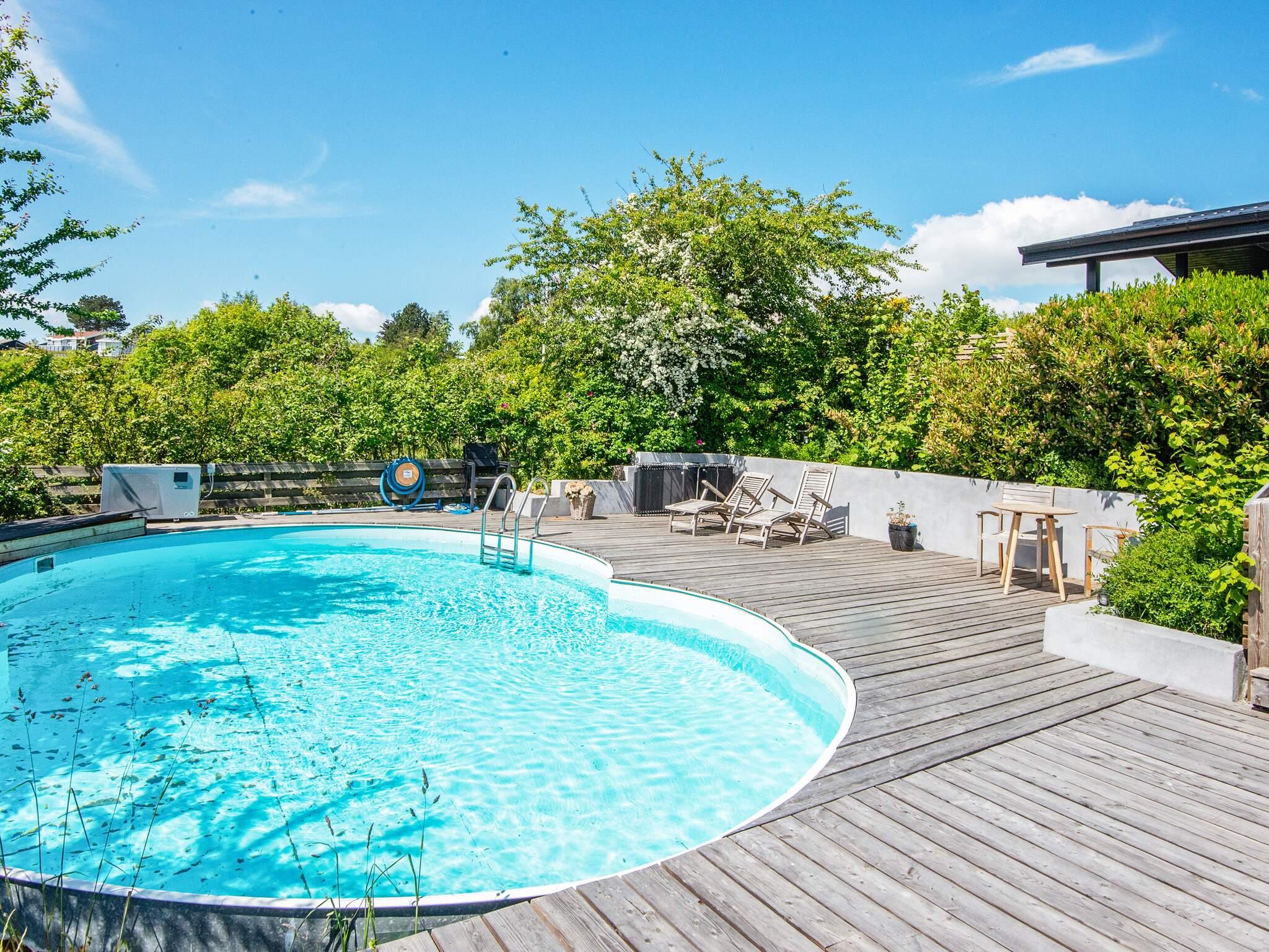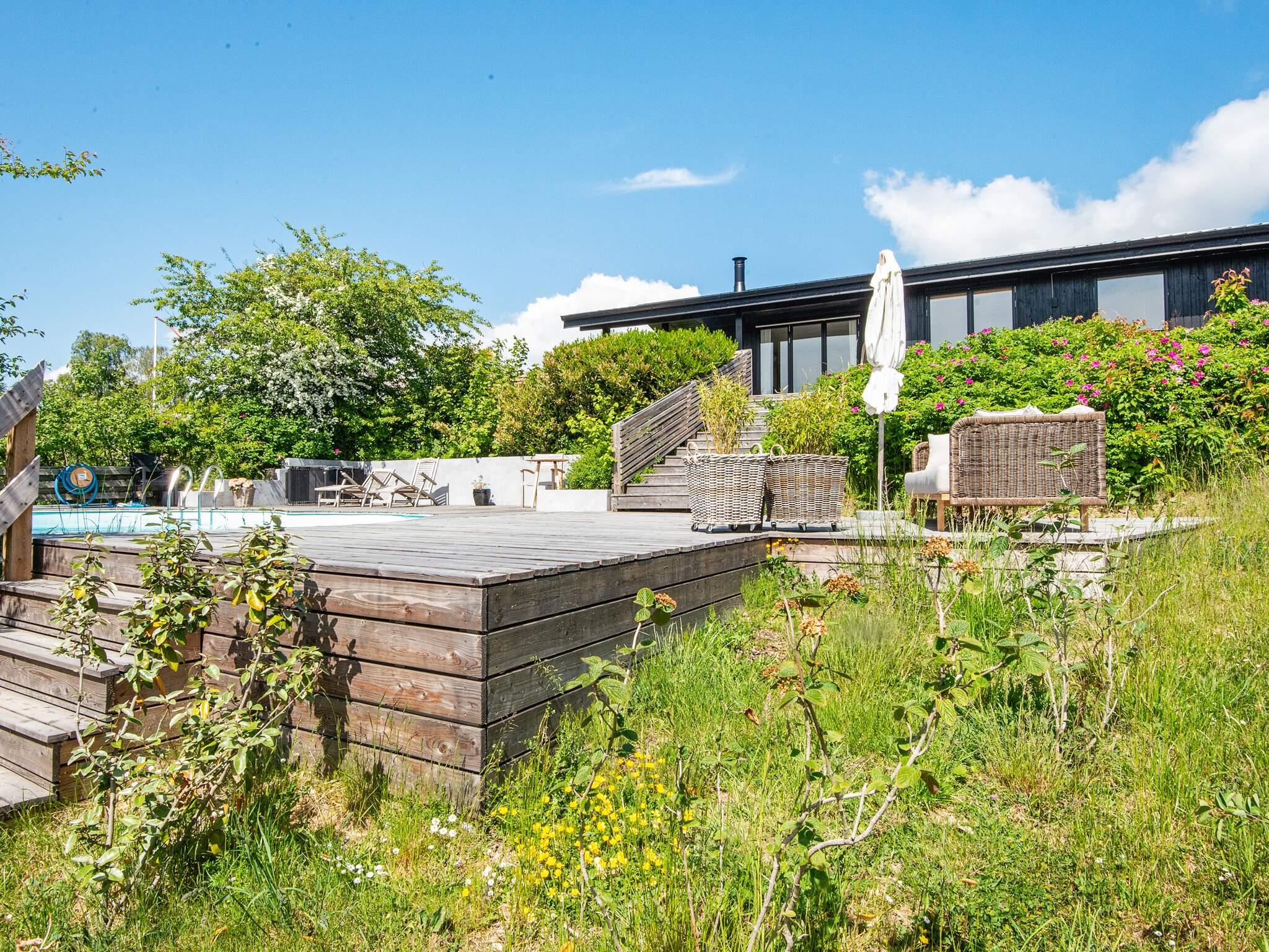 Sommerhus med god beliggenhed samt fuld udsigt over Ebeltoft Vig, som I kan nyde fra terrassen. Her er plads til hygge på forskellig vis. Udenfor finder I en dejlig stor opvarmet pool med god dybde (poolen kan benyttes fra d. 01.06 – 01.09.). Stuen og køkkenet ligger i åben forbindelse med hinanden, og derfor kan alle deltage, når der skal laves mad eller spilles spil. I stuen kan de store vinduespartier skydes til side, så naturen og udsigten rigtig kan nydes. TV via streaming. Udenfor finder I en stor boldbane med mulighed for at dyste i diverse sportsgrene, blandt andet basketbold og petanque, samt en stor trampolin (benyttes på eget ansvar/forsikring). Huset ligger i et område med mange muligheder for gode naturoplevelser. Stranden ligger i gåafstand fra huset. Udlejes ikke til ungdomsgrupper.