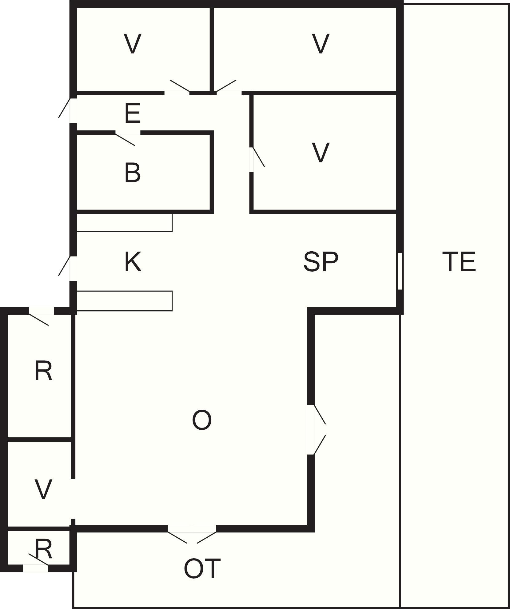 4 Soveværelser: (1DS)+(1DS)+(2S)+(1DO)