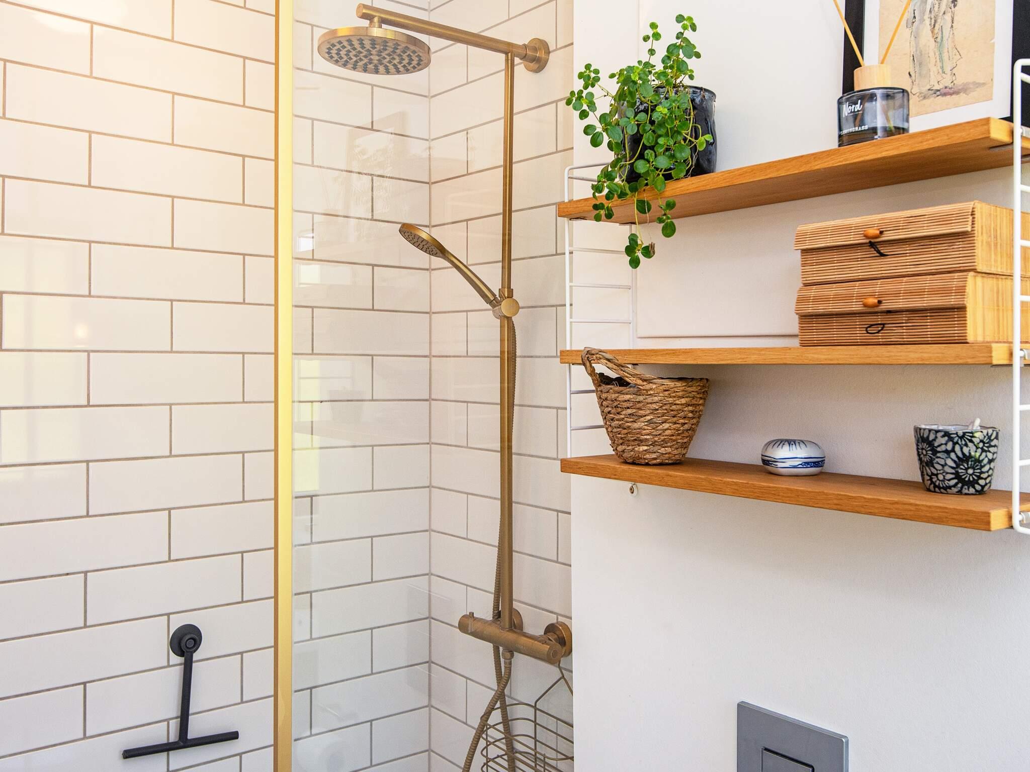 Bad/wc: Vaskemaskine, wc, håndvask, bruseniche