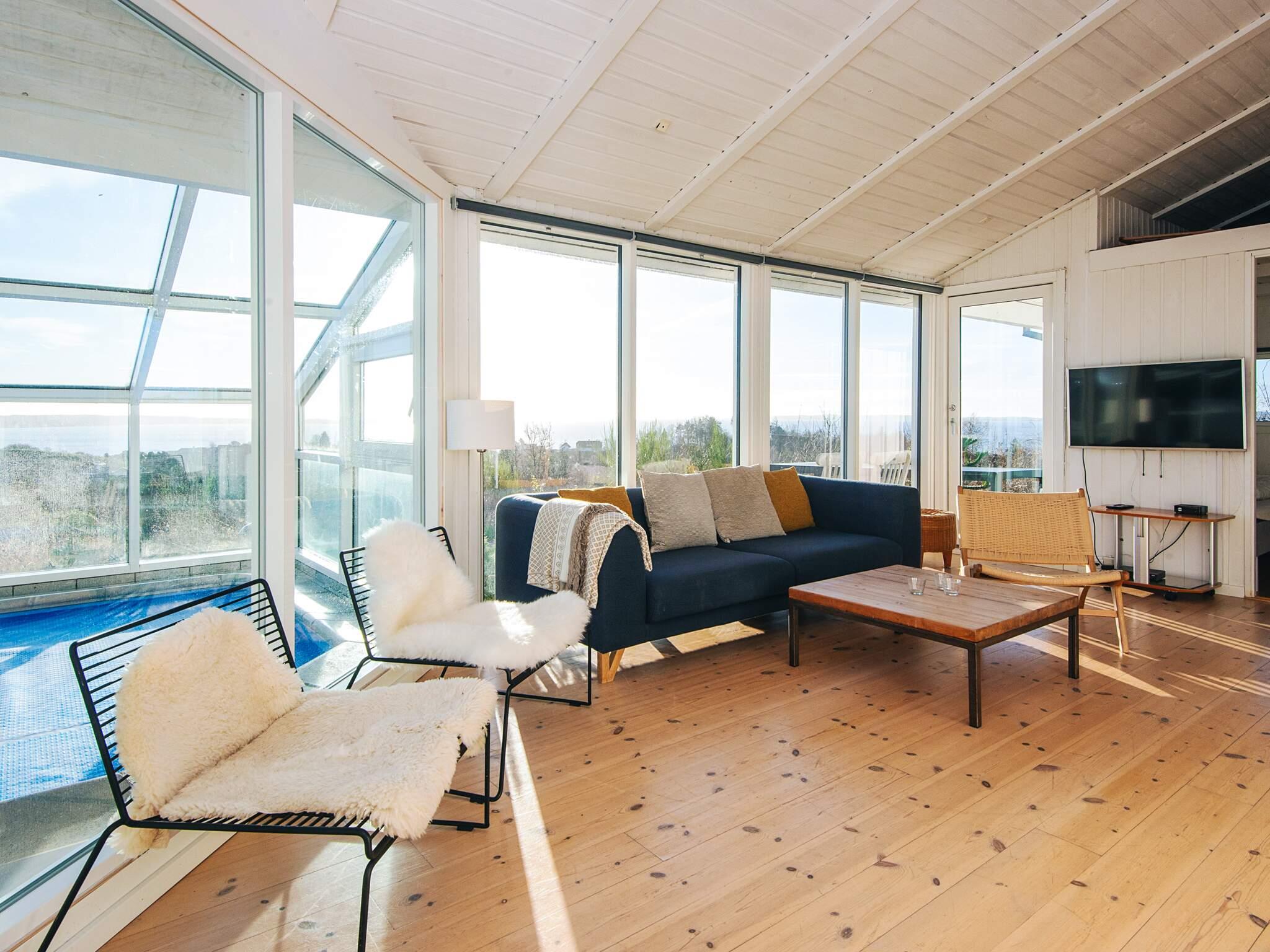 Den 18 m² store, opvarmede swimmingpool opvarmes via varmepumpe og ligger i forlængelse af et badeværelse med sauna. Poolrummet byder på samme smukke udsigt, så både leg og afslapning kan nydes året rundt – også når vejret viser sig fra sin mere kølige side.