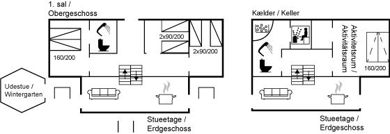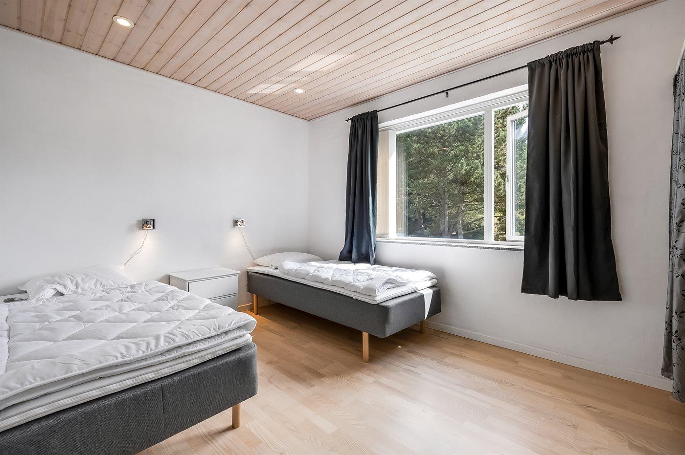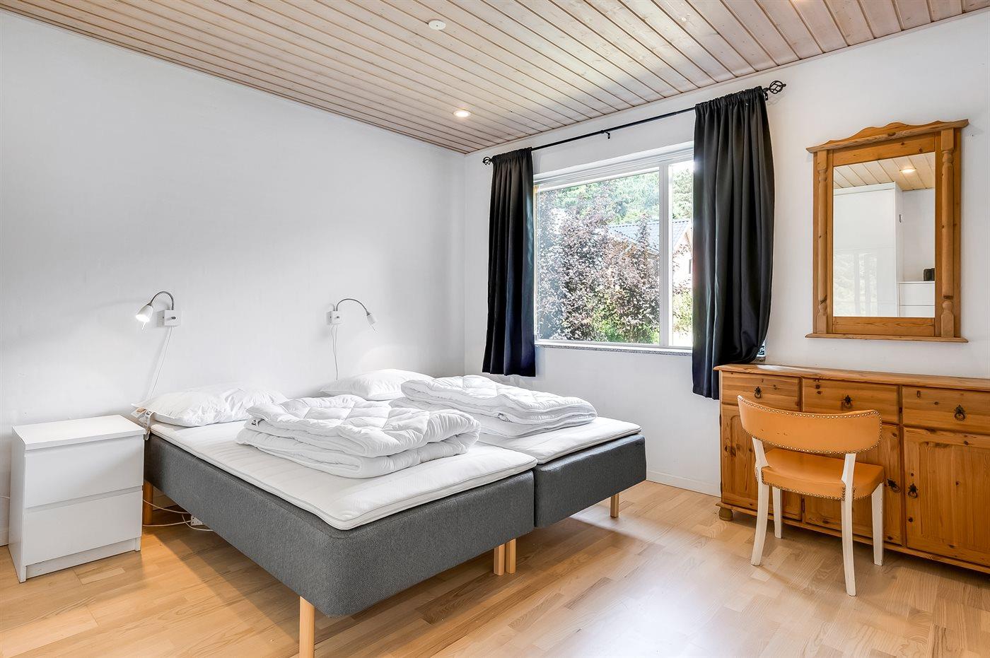 Der er i alt 4 soveværelser. Sovepladserne fordeler sig på: 2 sovepladser i dobbeltseng. 4 sovepladser i enkeltsenge. 2 sovepladser i sovesofa (dobbelt).